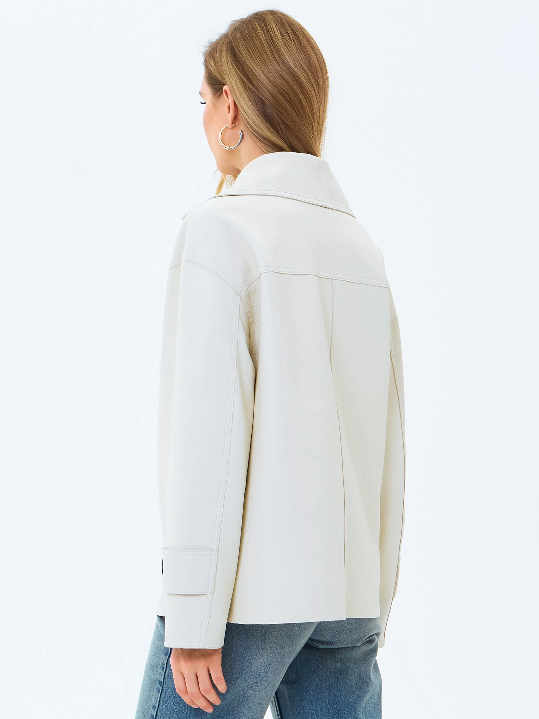 Товар белый кожаный женский пиджак премиум класса 3097, размер 44, артикул 24720 выполнен из натуральной кожи с застежкой пуговицы. Рассчитан на сезон: весна-осень. Длина изделия 66 см, силуэт прямой.