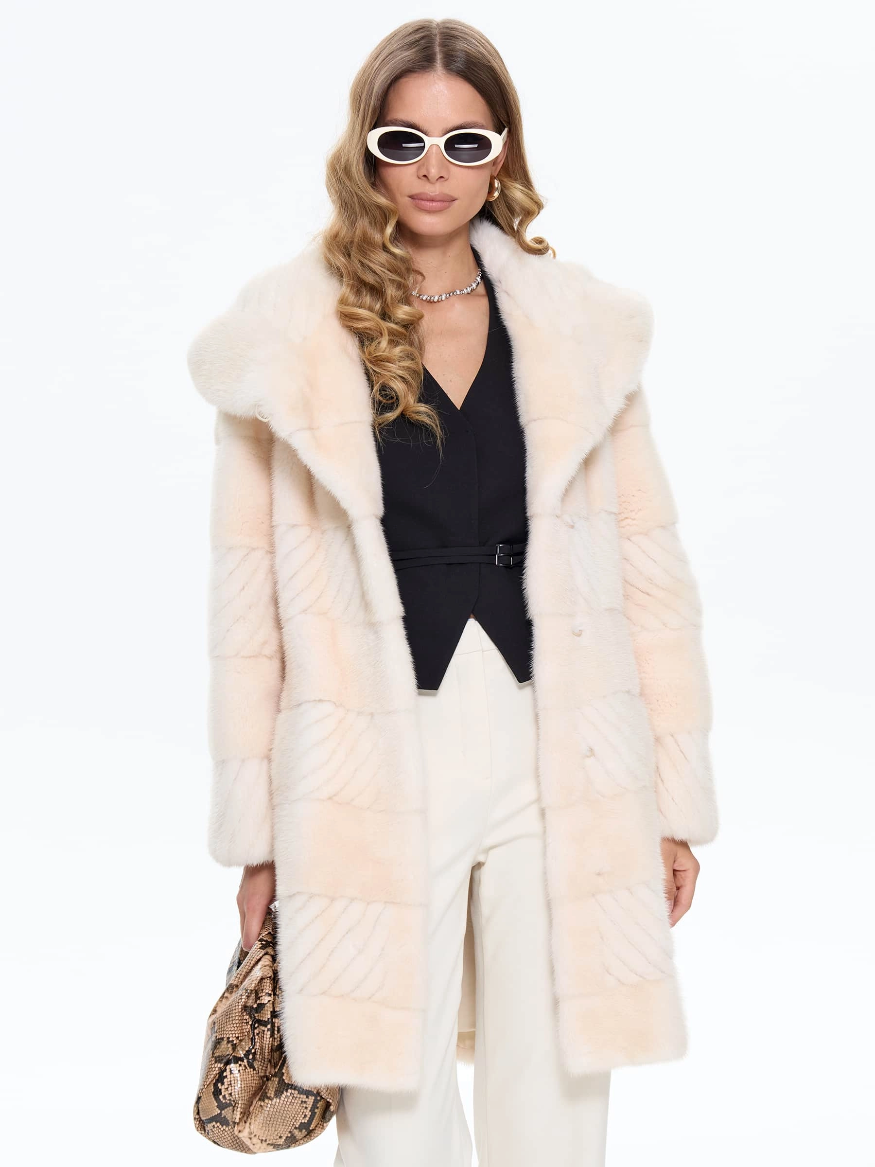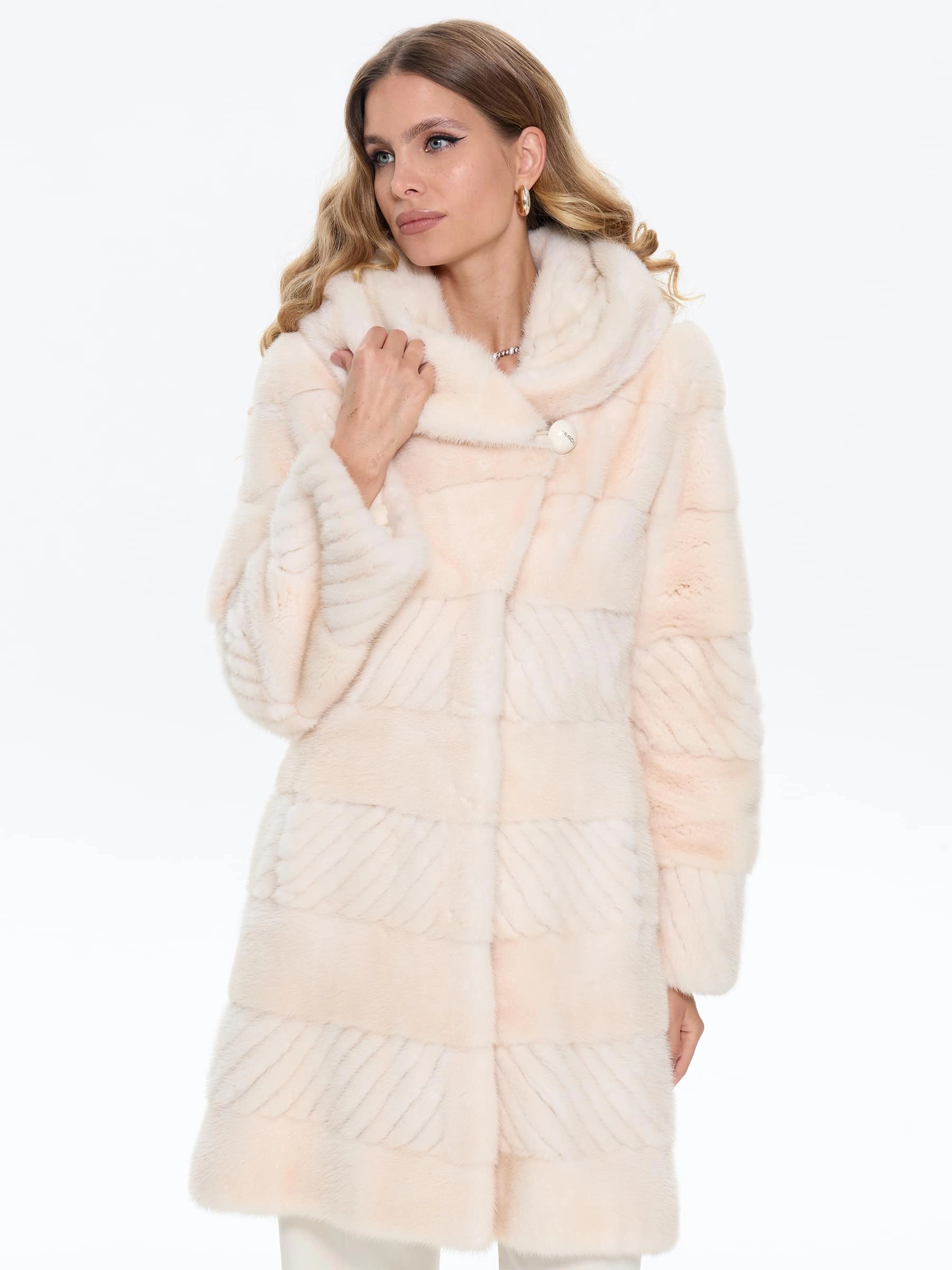 Бежевая женская норковая шуба BRASCHI EGM 012, размер 42, артикул 34400