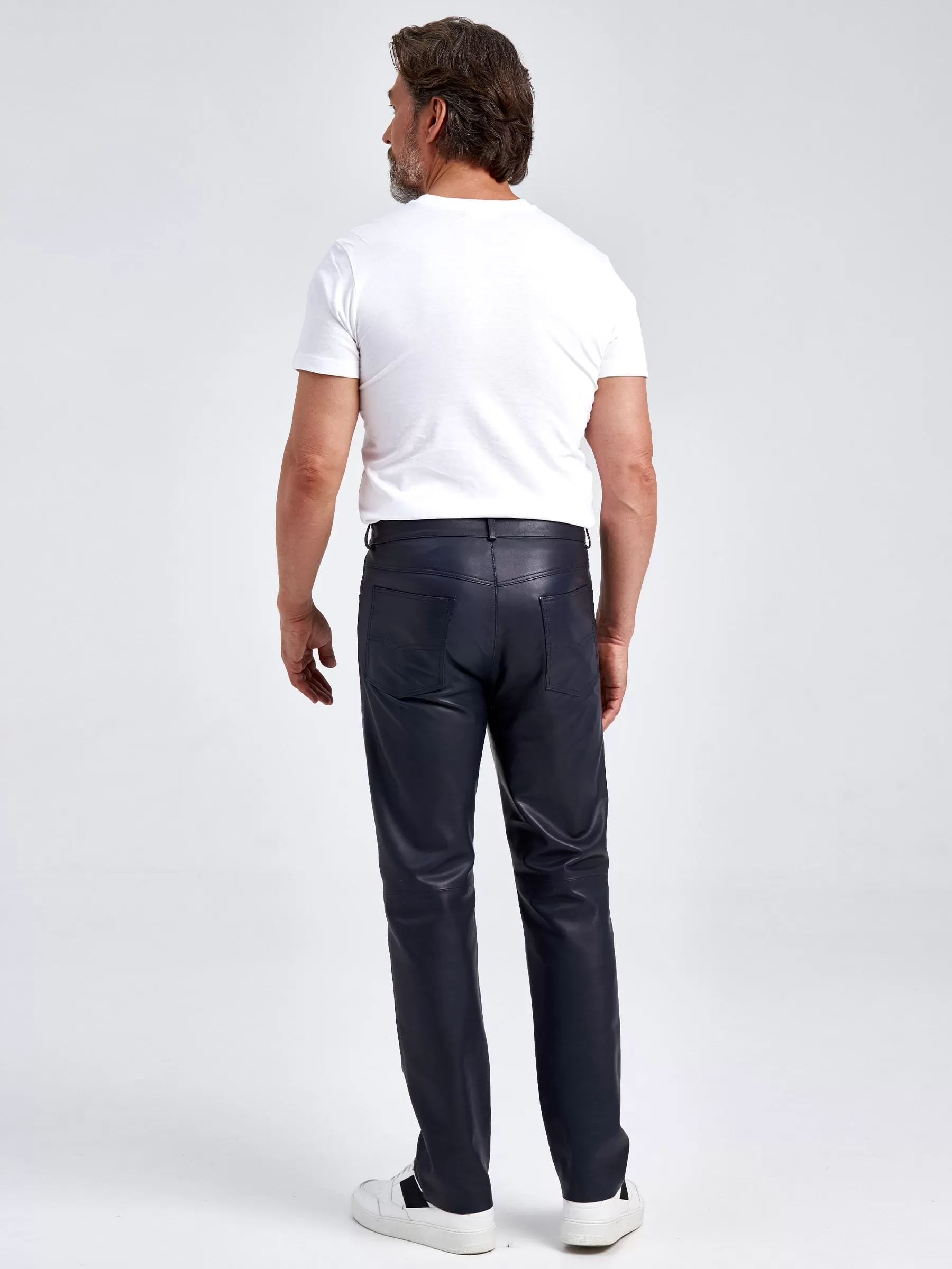 Прямые кожаные джинсы с классическим кроем. Модель поможет сформировать самые разные образы, одинаково удачно сочетаясь как с футболкой и кедами, так и с пальто и челси. Кожа особенно мягкая и слегка эластичная, поэтому вещь комфортно садится по фигуре и не сковывает движения.