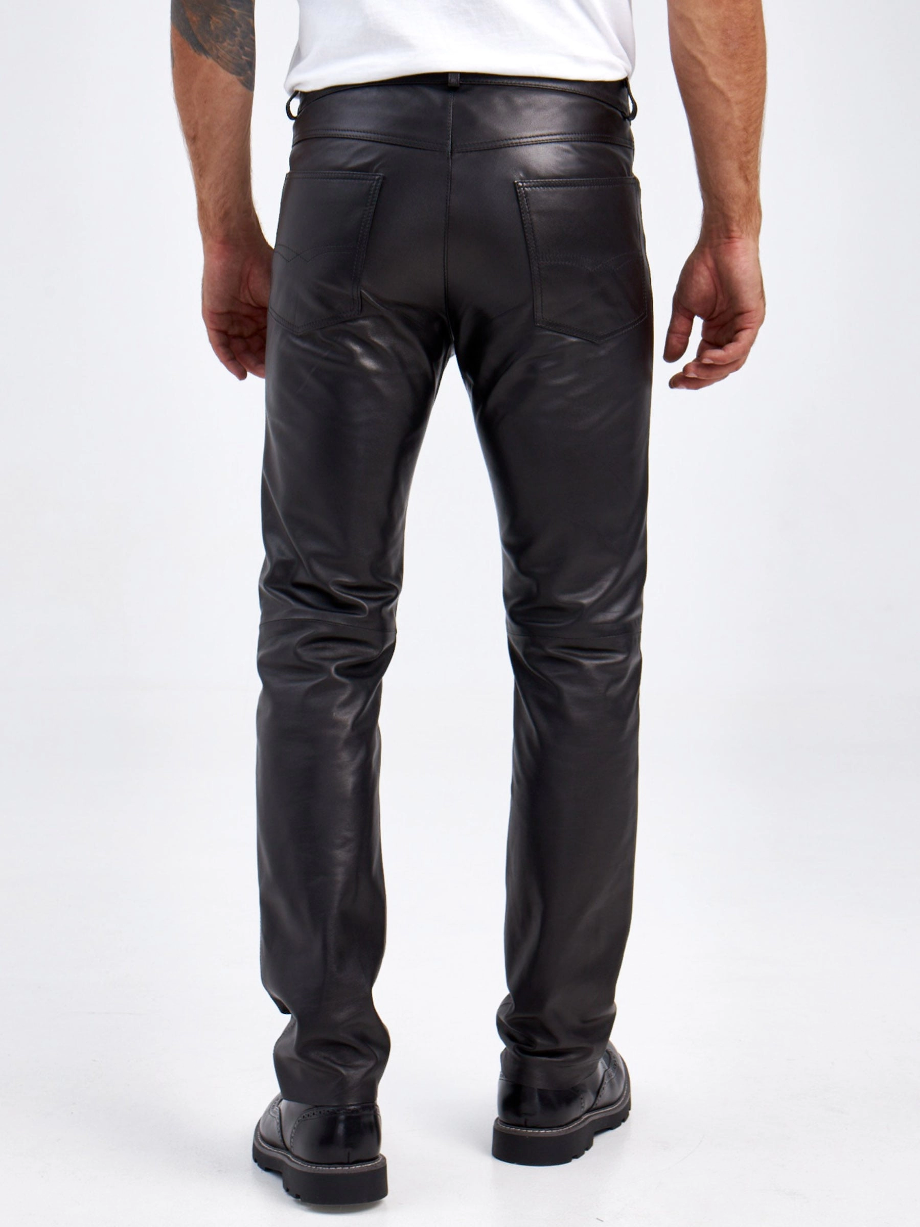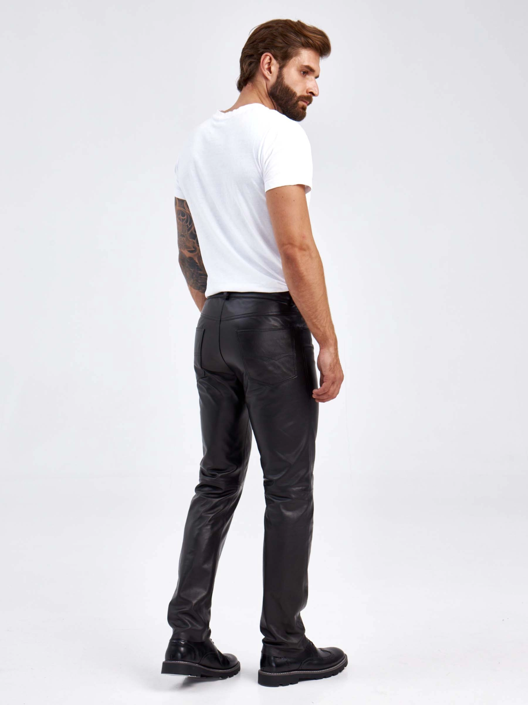 Мужские брюки из натуральной кожи премиум класса 01, черные, размер 48, артикул 120012