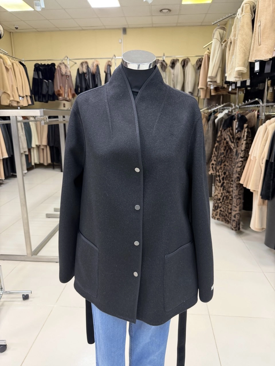 Товар черное полупальто кашемировое женское 1131-70, размер 46, артикул 92590.