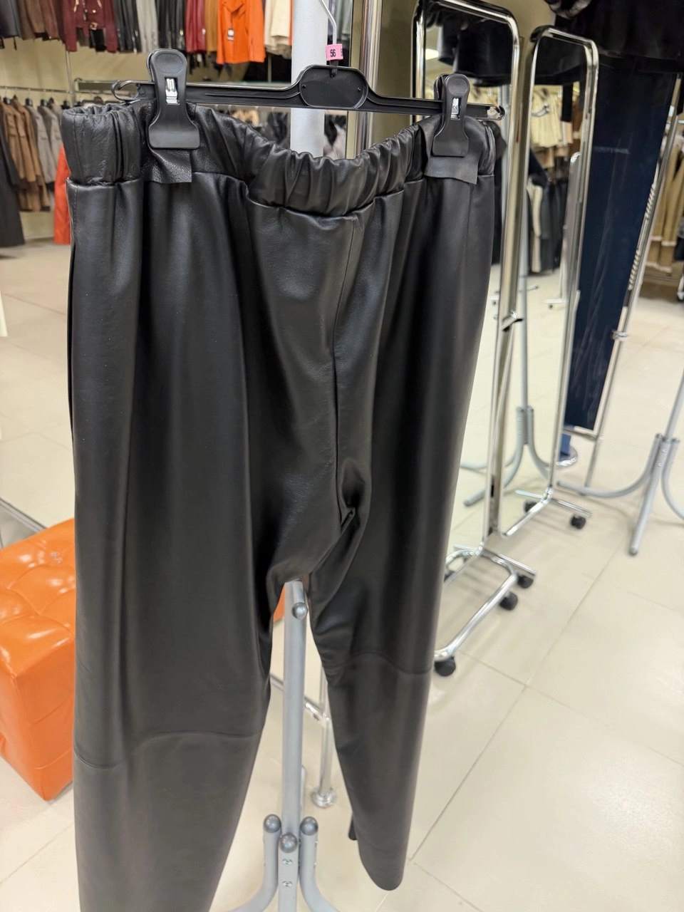 Широкие черные брюки из натуральной кожи на эластичной кулиске. Свободный силуэт длиной 103 см обеспечивает непринужденную роскошь и максимальный комфорт. Сочетайте с объемным худи и кроссовками для уличного образа или с каблуками и шелковым топом — для дерзкого контраста.