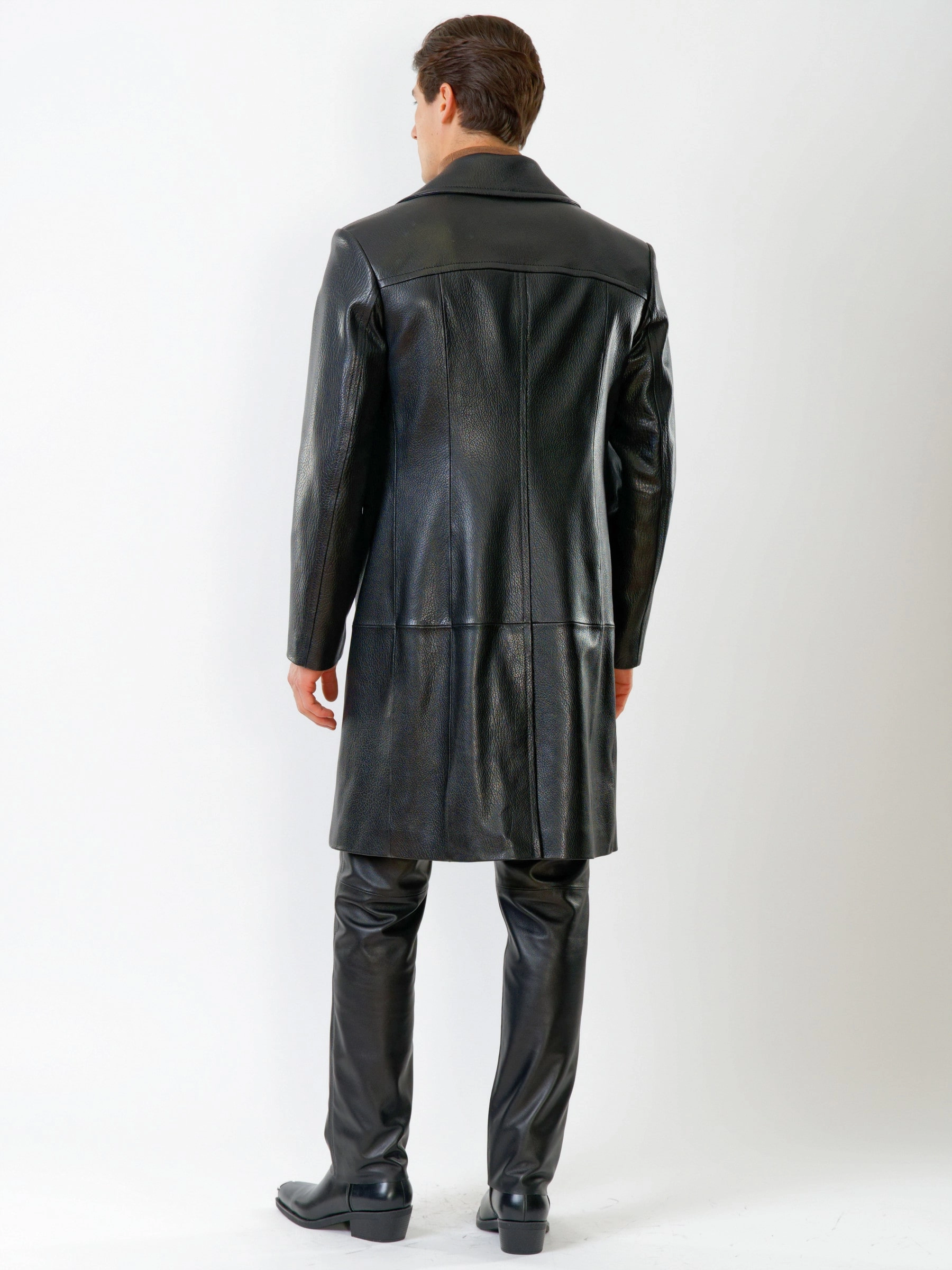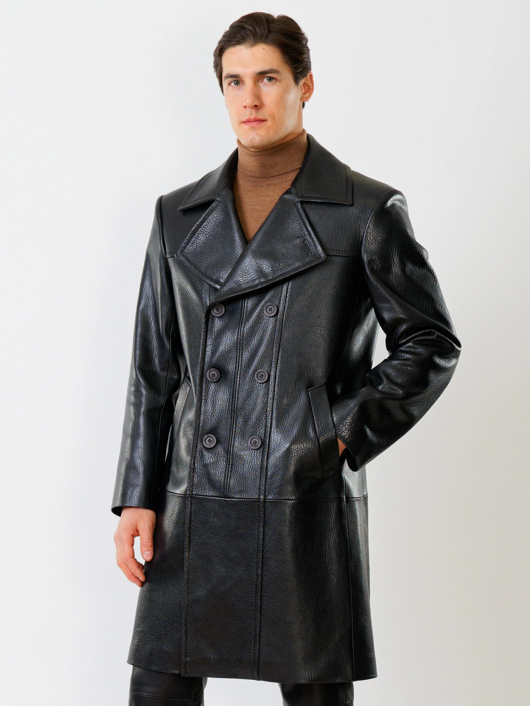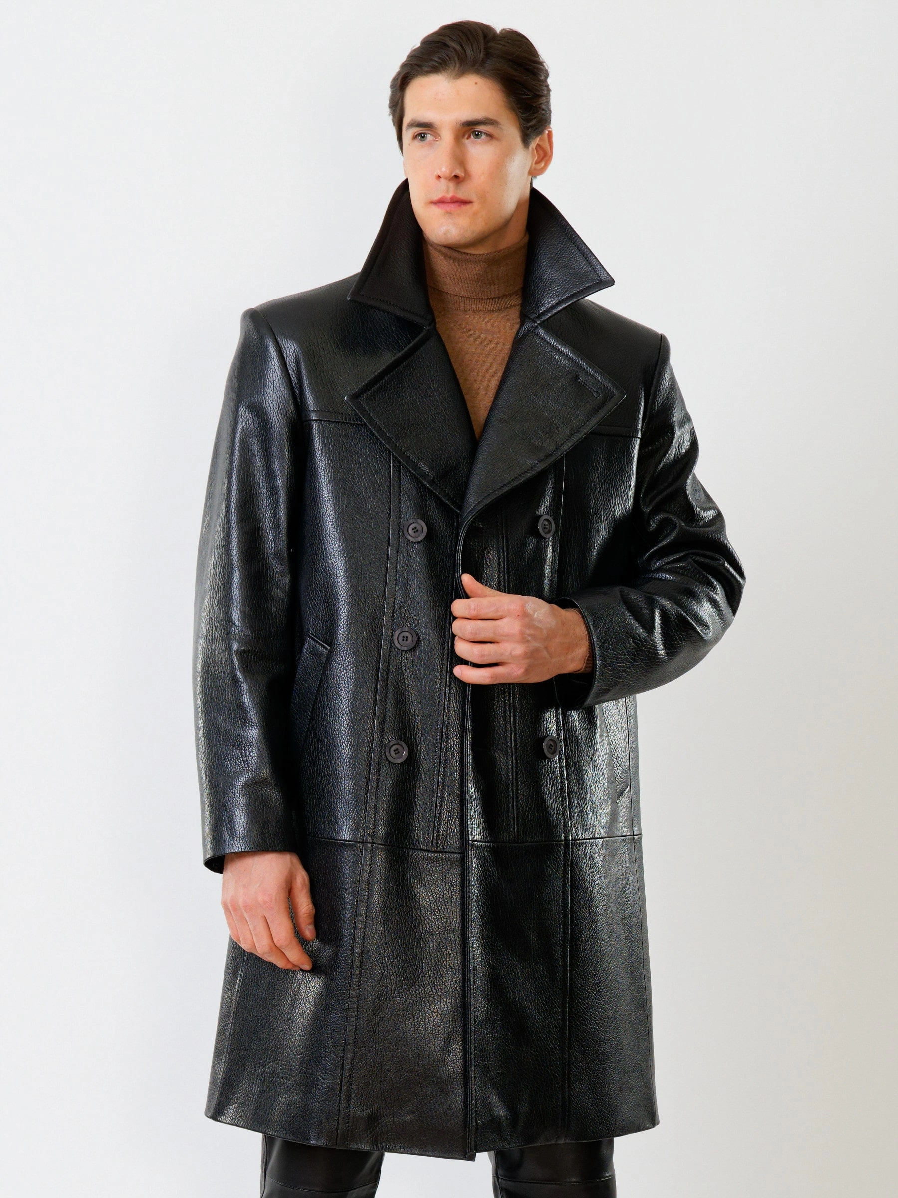 Двубортное кожаное пальто и кожаные брюки. Брутальный образ. Кожа премиального качества. Безупречная работа портных. Комфортная посадка по фигуре.