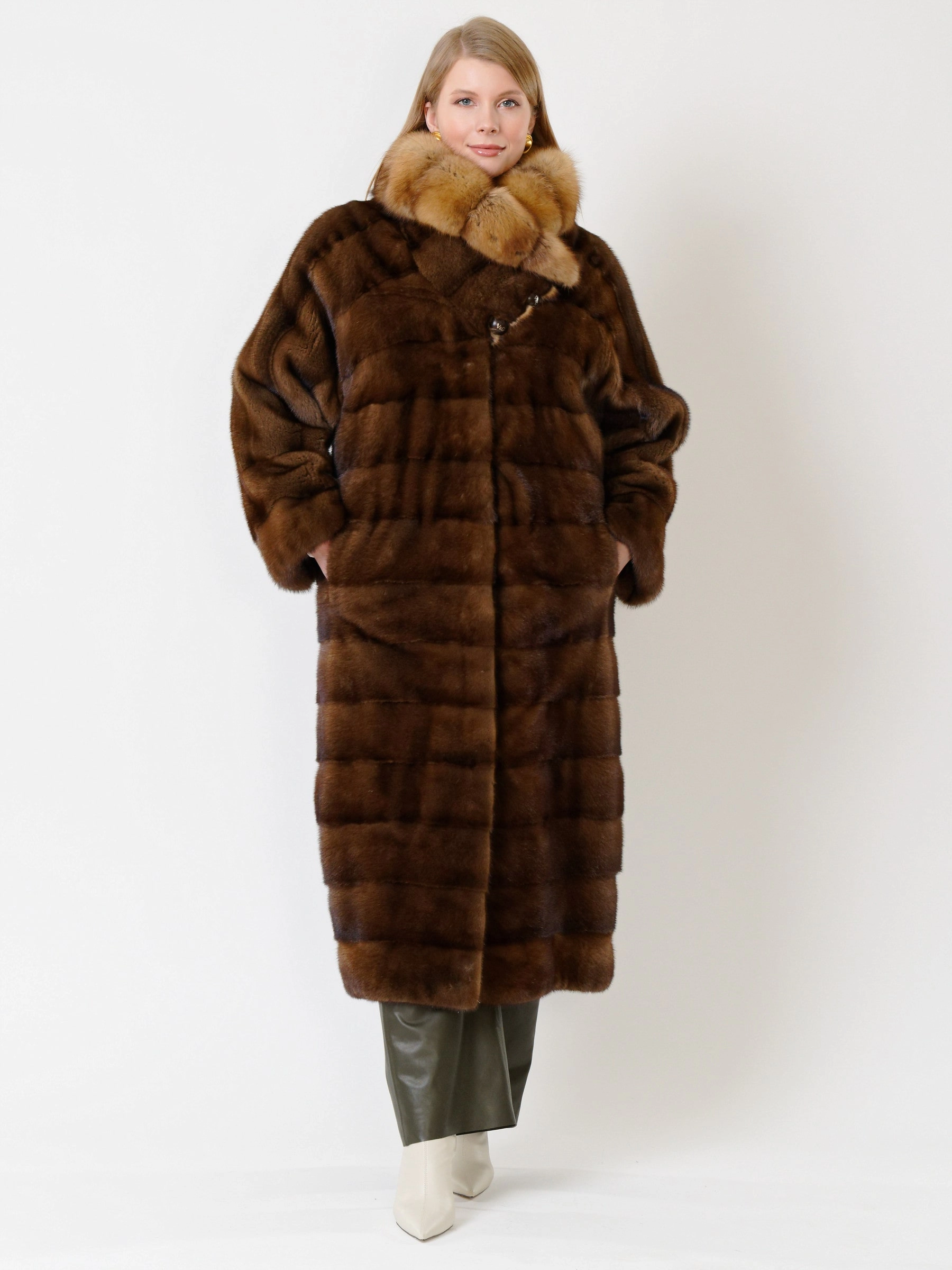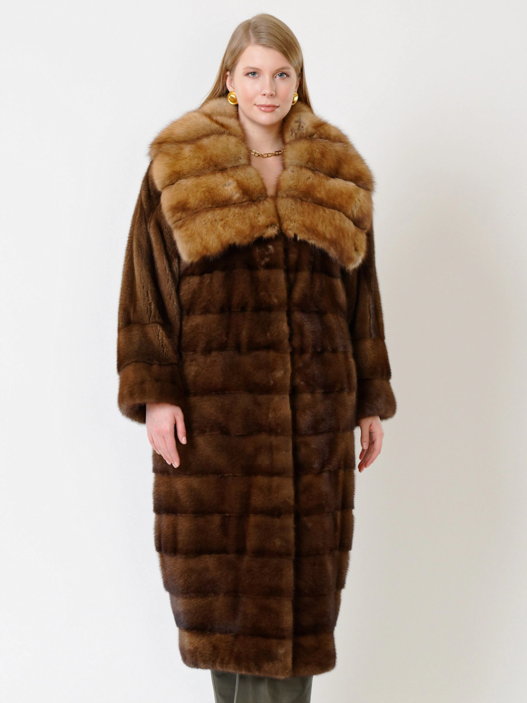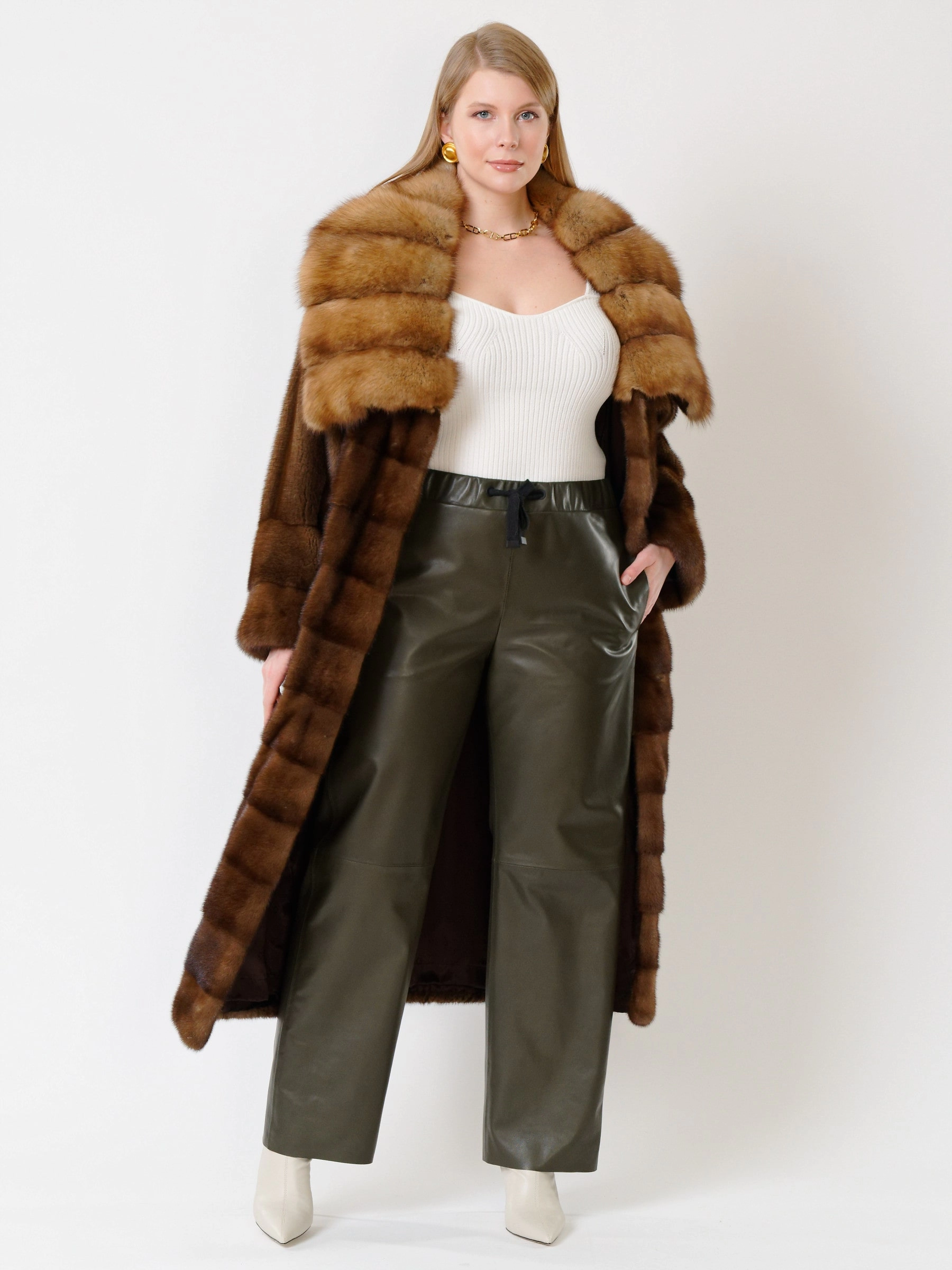 Товар демисезонный комплект женский: пальто из меха норки с соболем 1150(вс) + брюки 06, коричневый/оливковый, р. 52, арт. 111225.