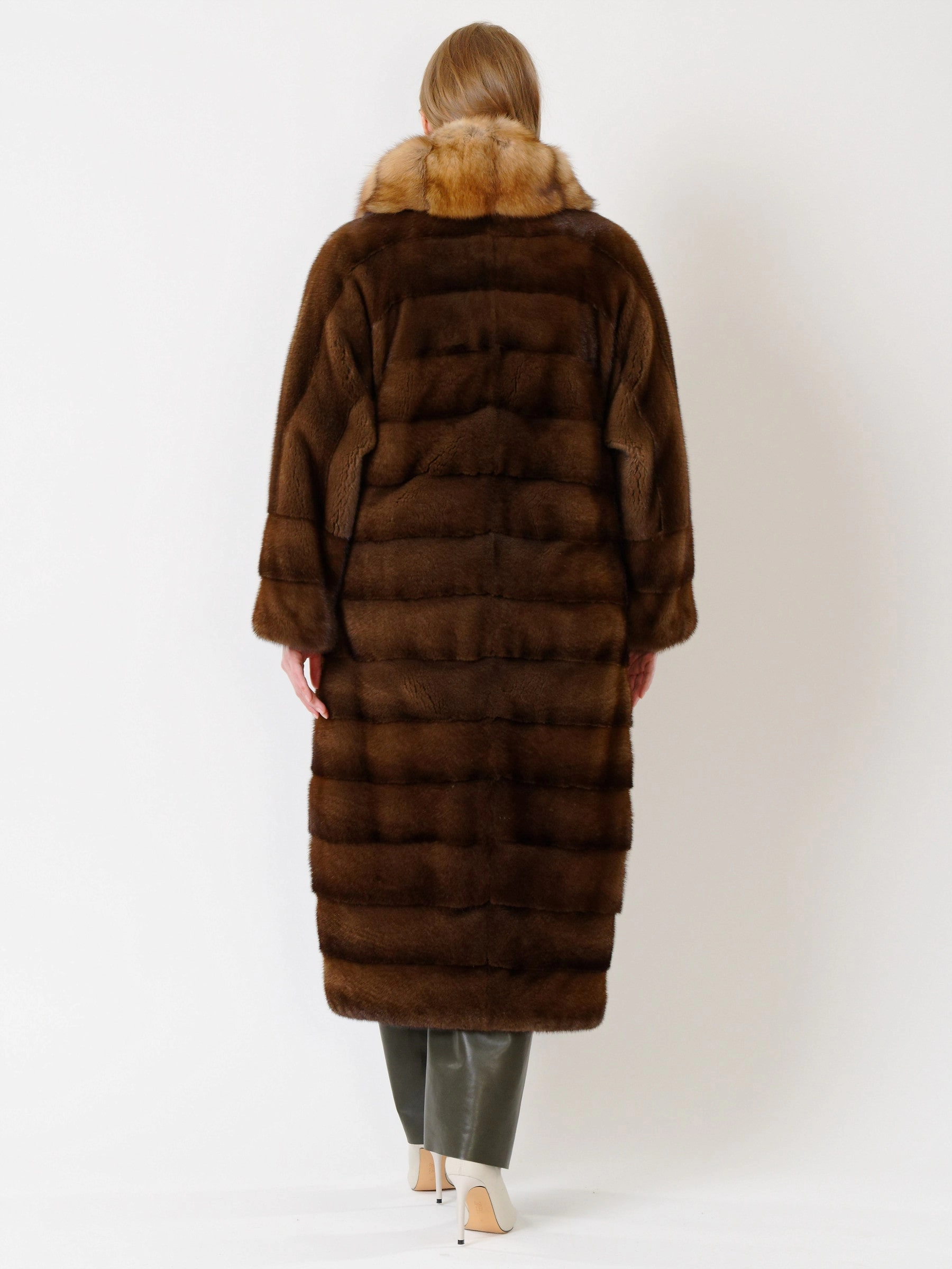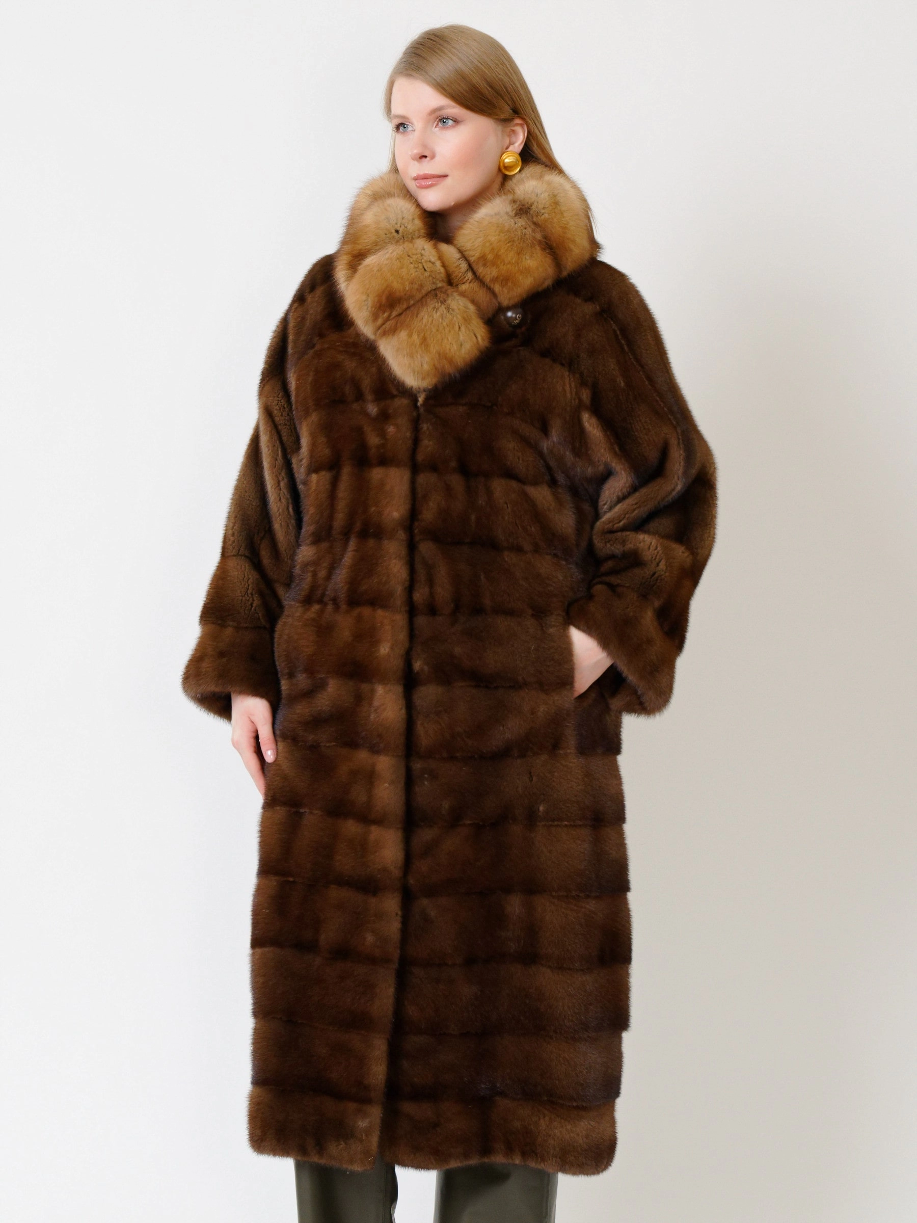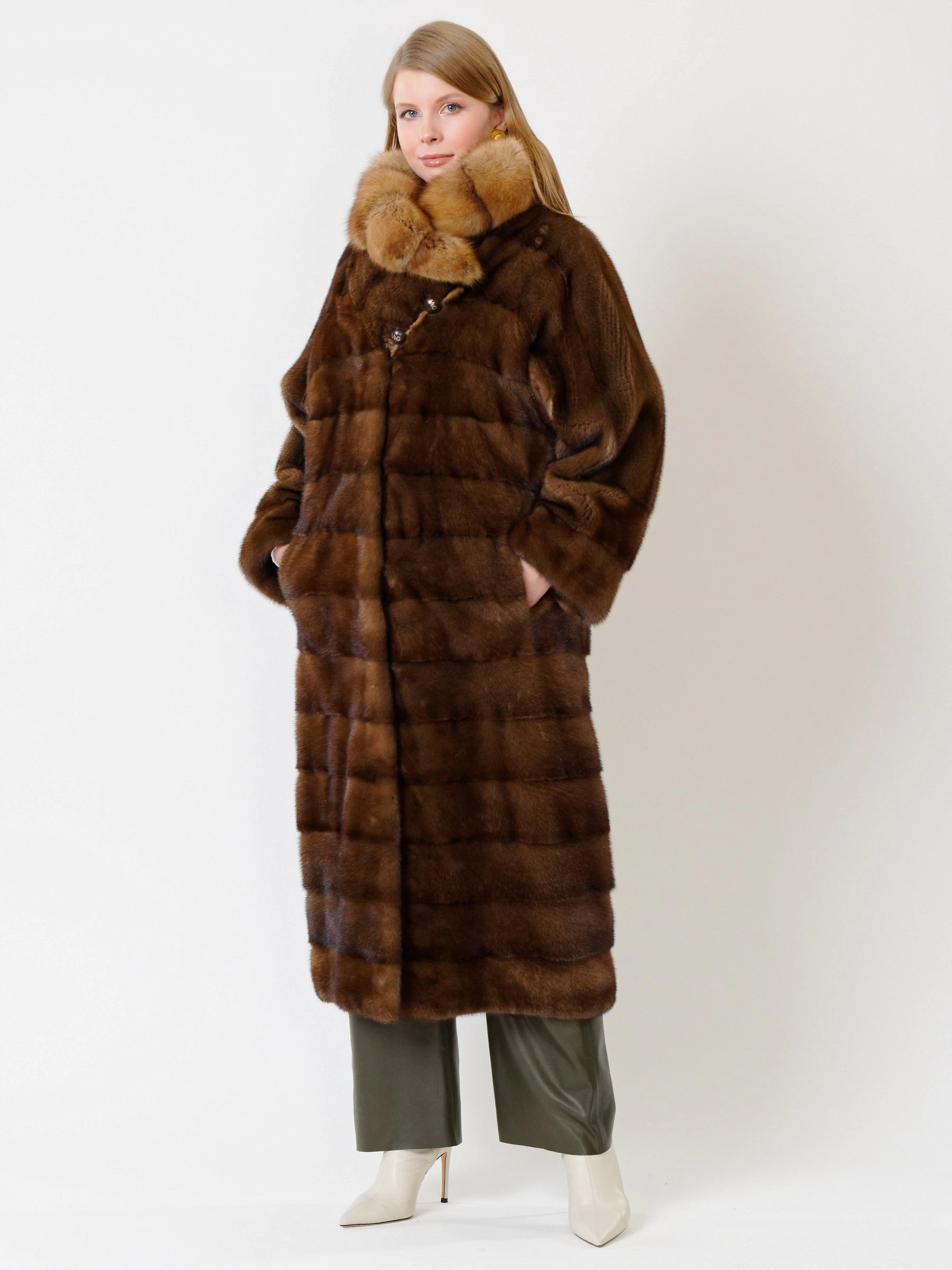 Товар демисезонный комплект женский: пальто из меха норки с соболем 1150(вс) + брюки 06, коричневый/оливковый, р. 52, арт. 111225.