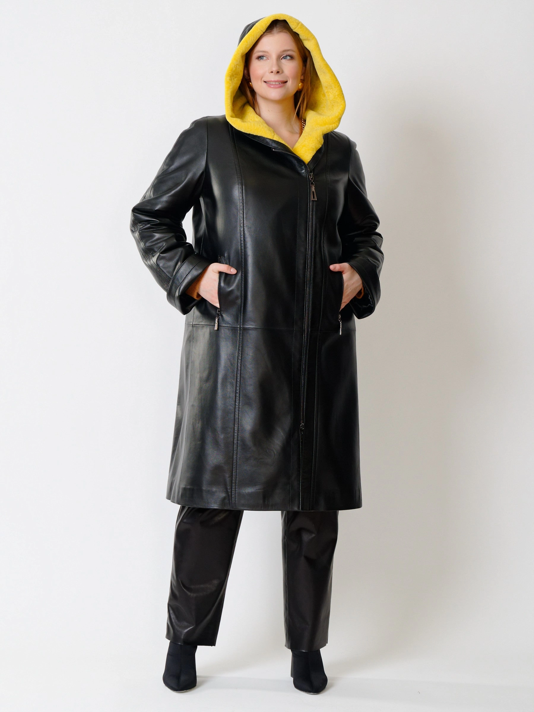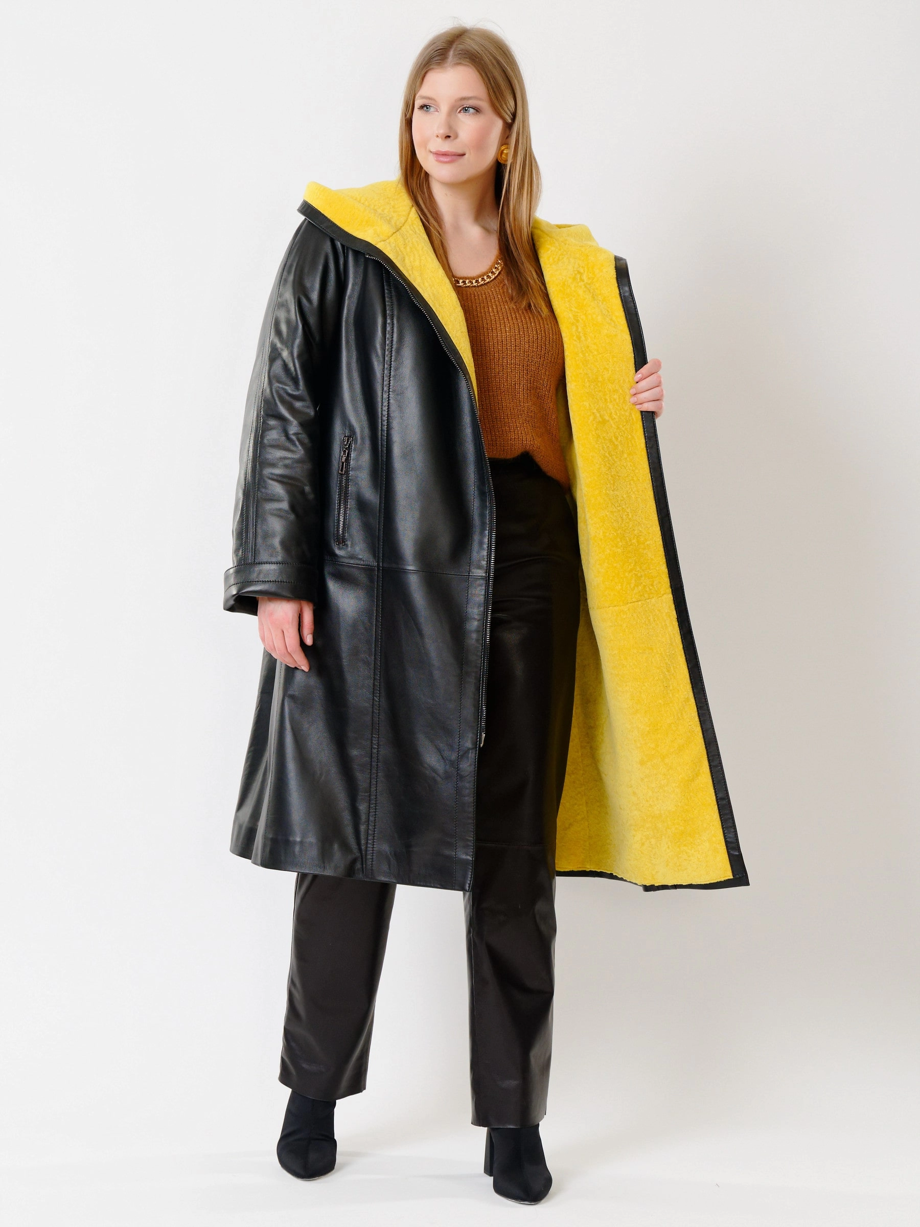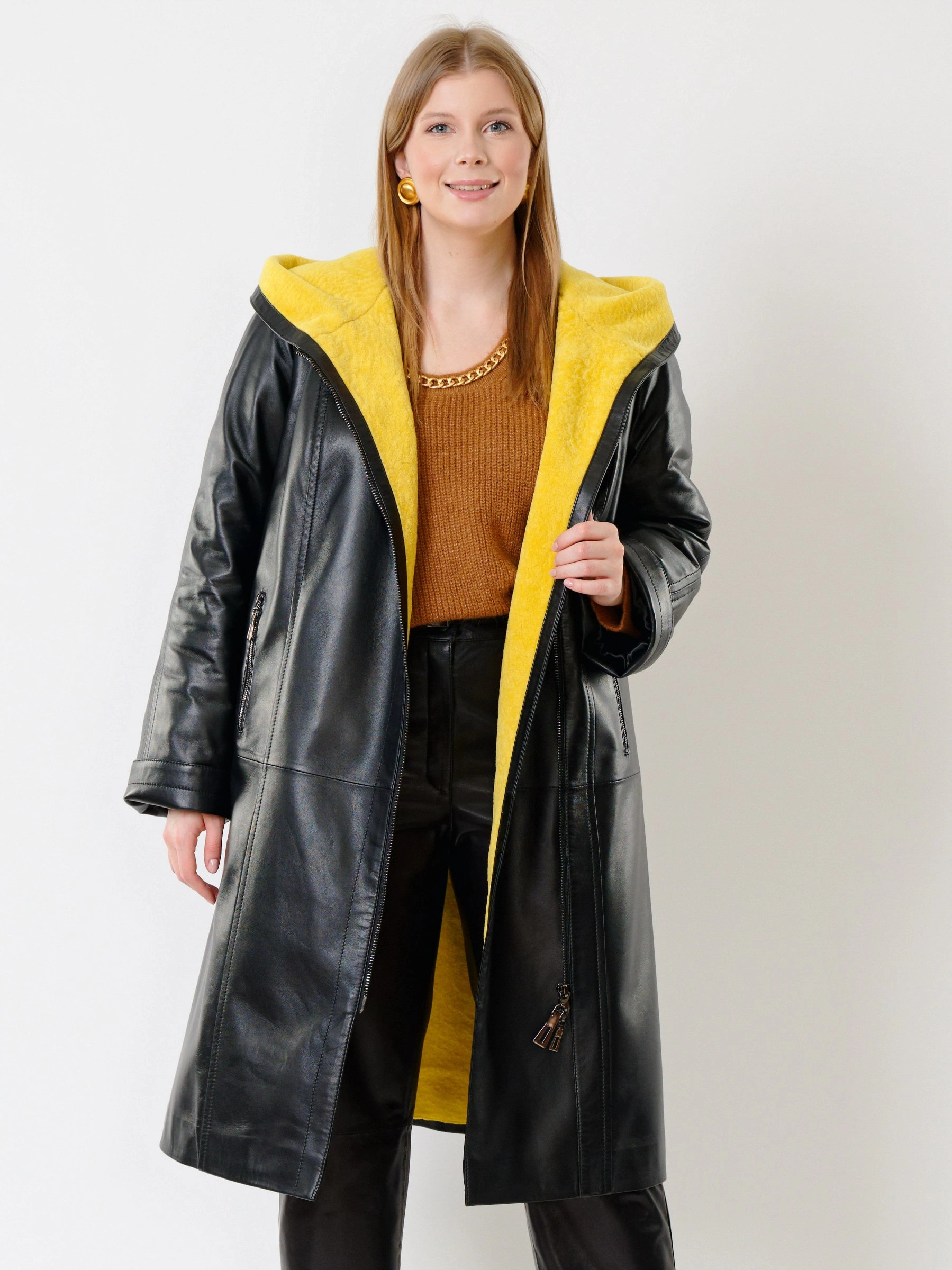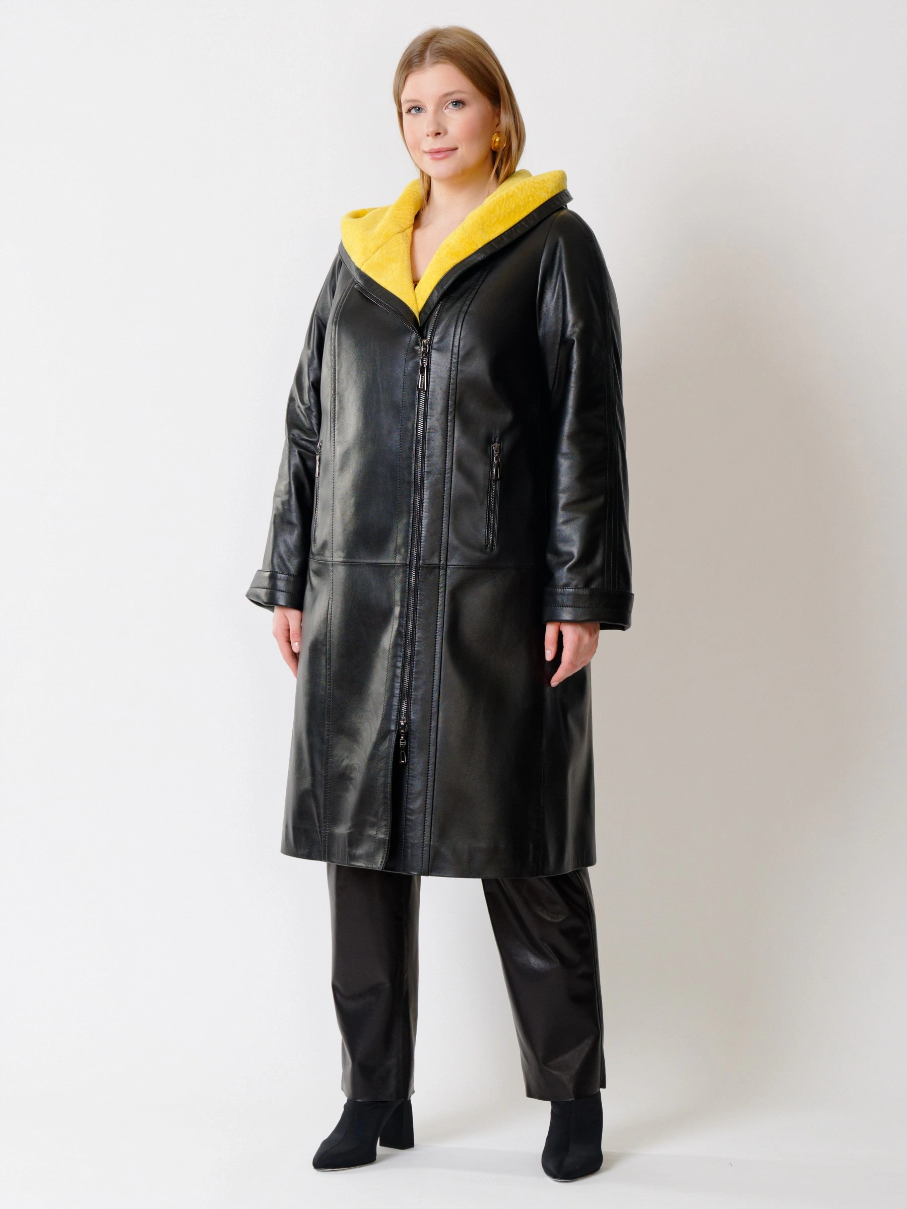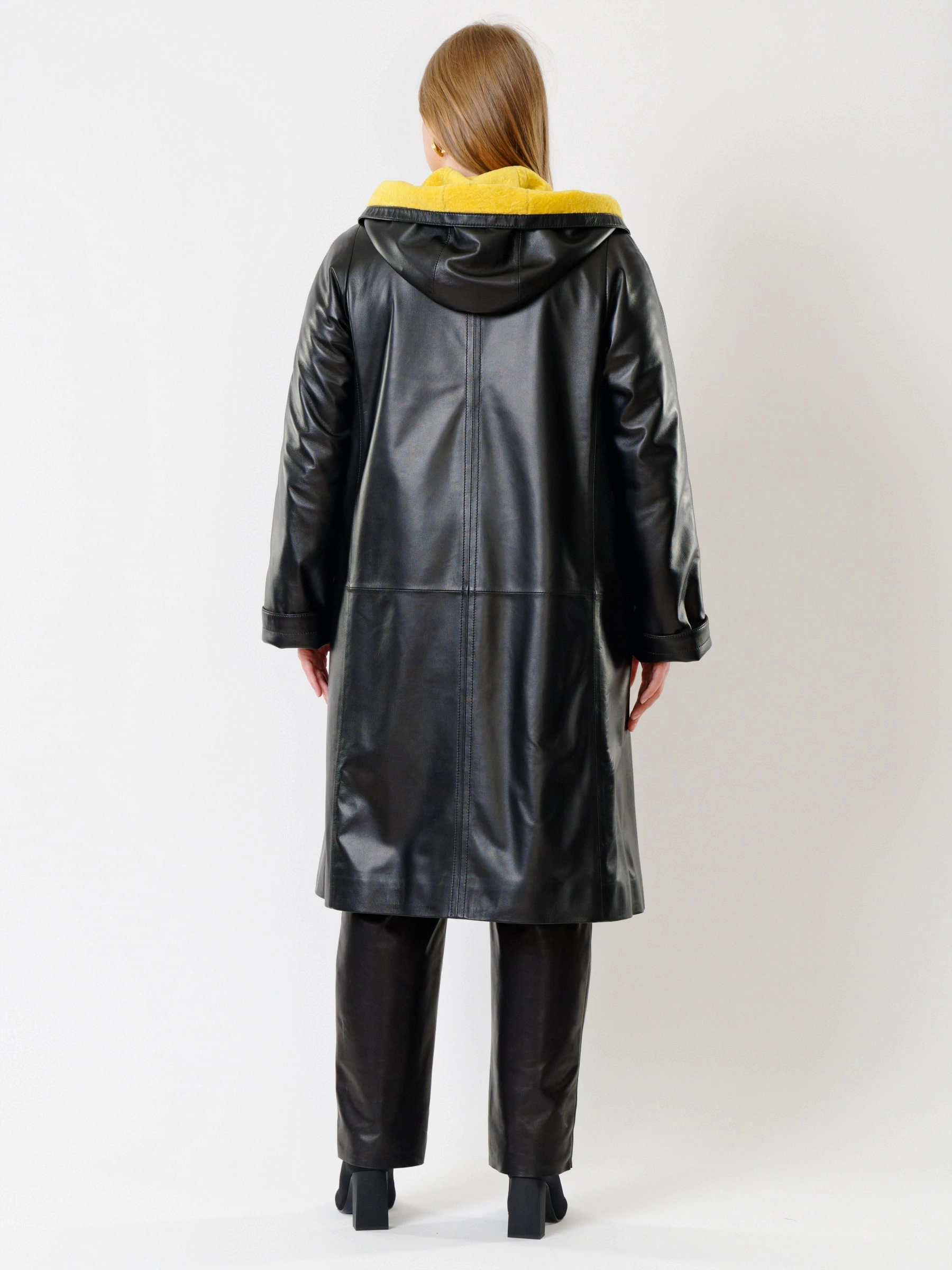 Кожаное пальто и удобные кожаные брюки. Великолепно отполированная кожа сохранила уникальную мелкозернистую структуру и поражает своим благородным сдержанным матовым блеском. Премиальное качество. Ювелирная работа наших портных. Безупречная посадка по фигуре.