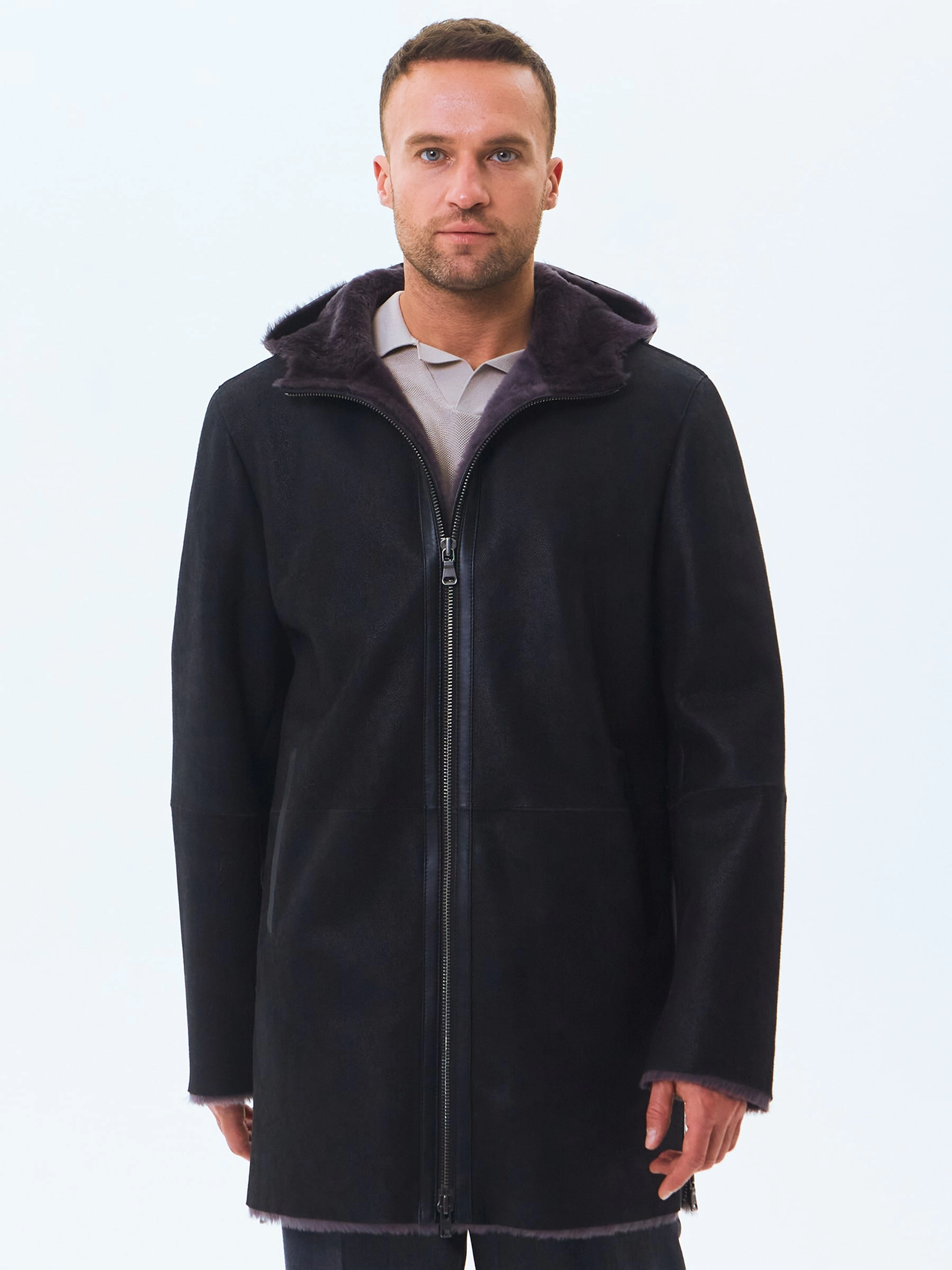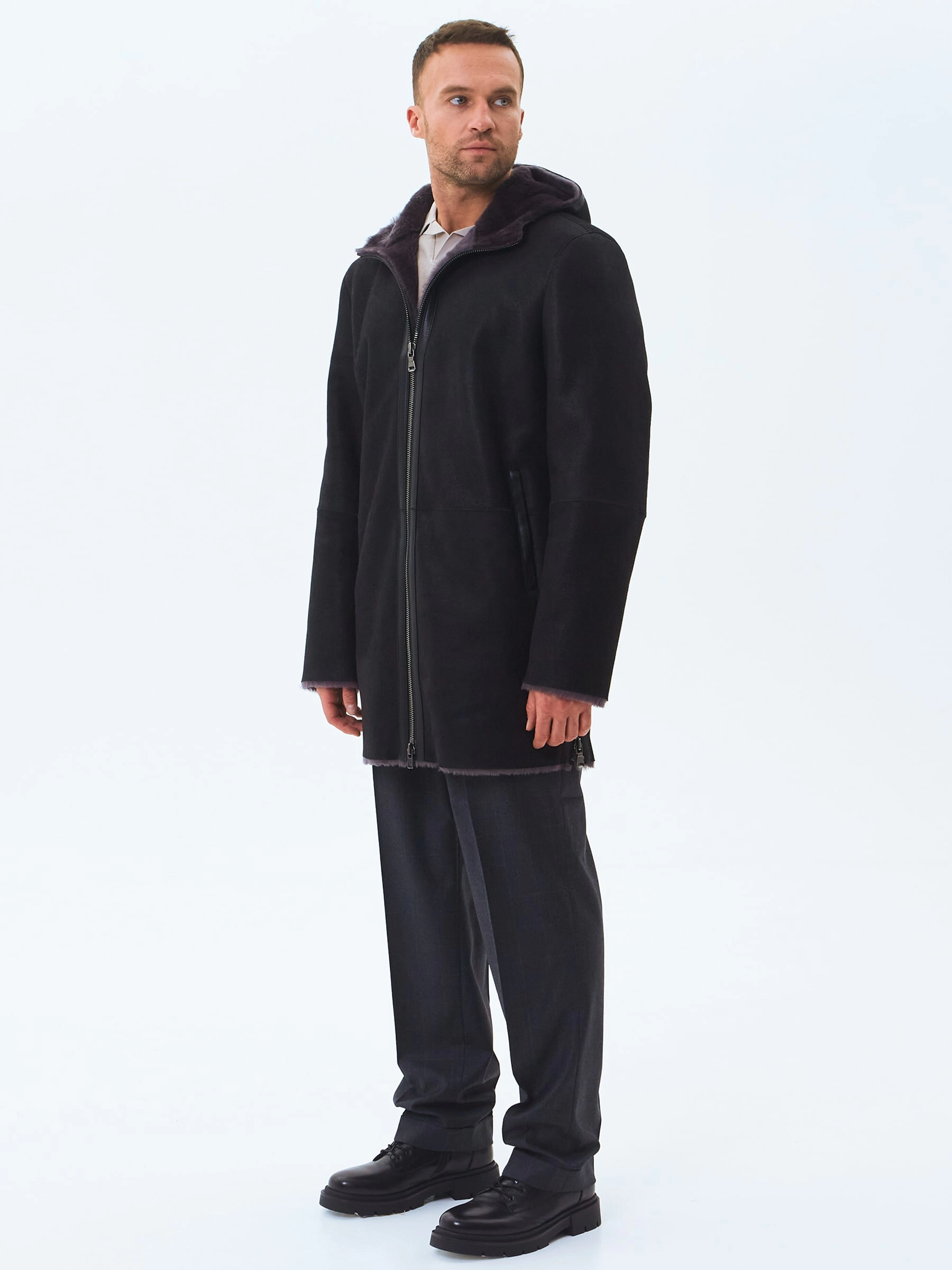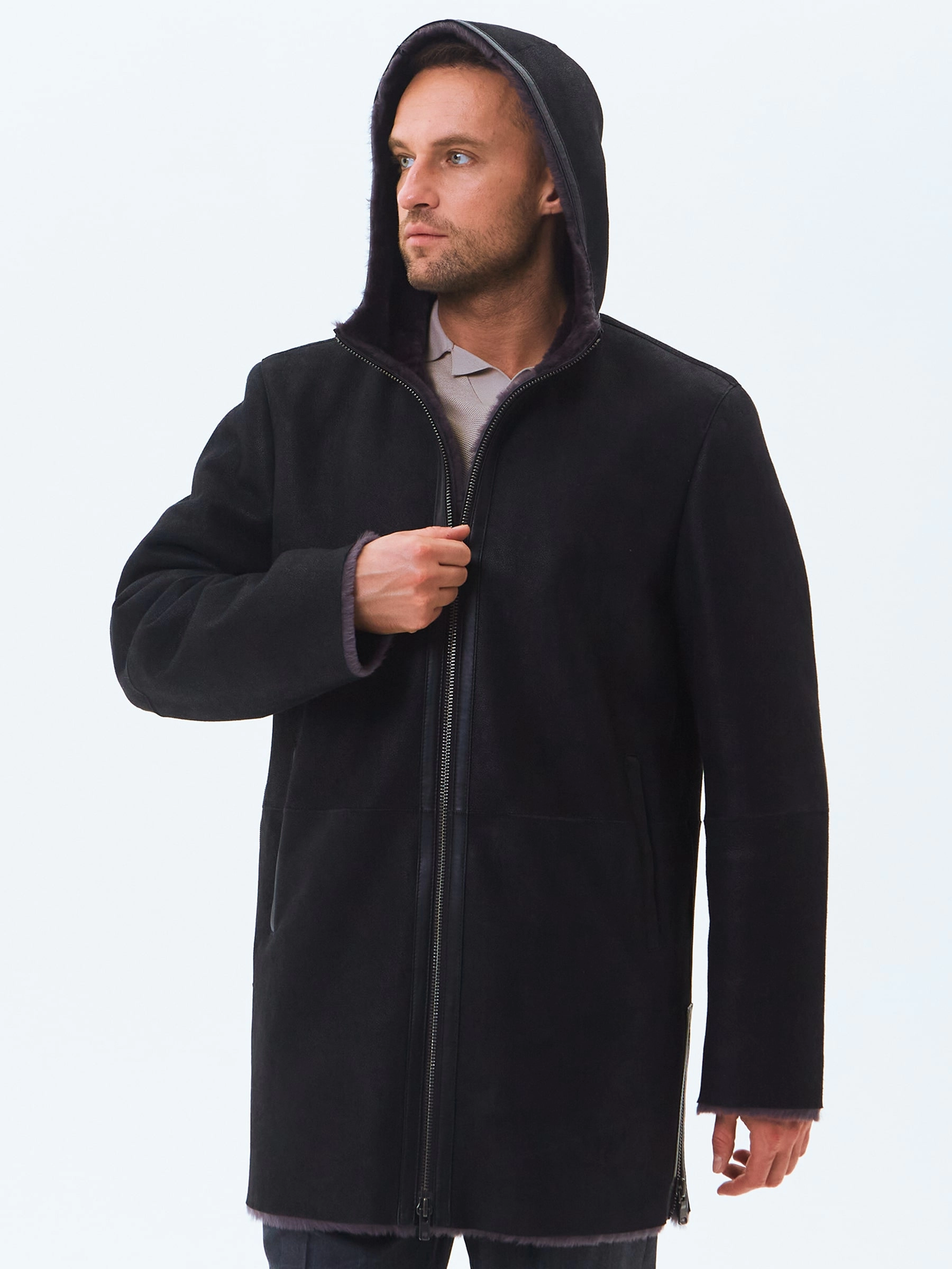 Товар длинная мужская дубленка из натуральной овчины премиум класса 438, черная, размер 52, артикул 41190 выполнен из овчина "мерино" с застежкой молния. Рассчитан на сезон: зима. Длина изделия 87 см, силуэт прямой.