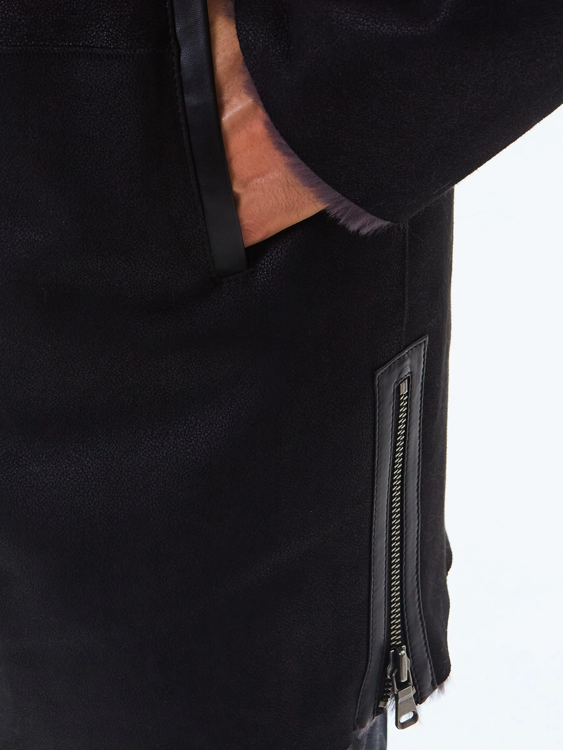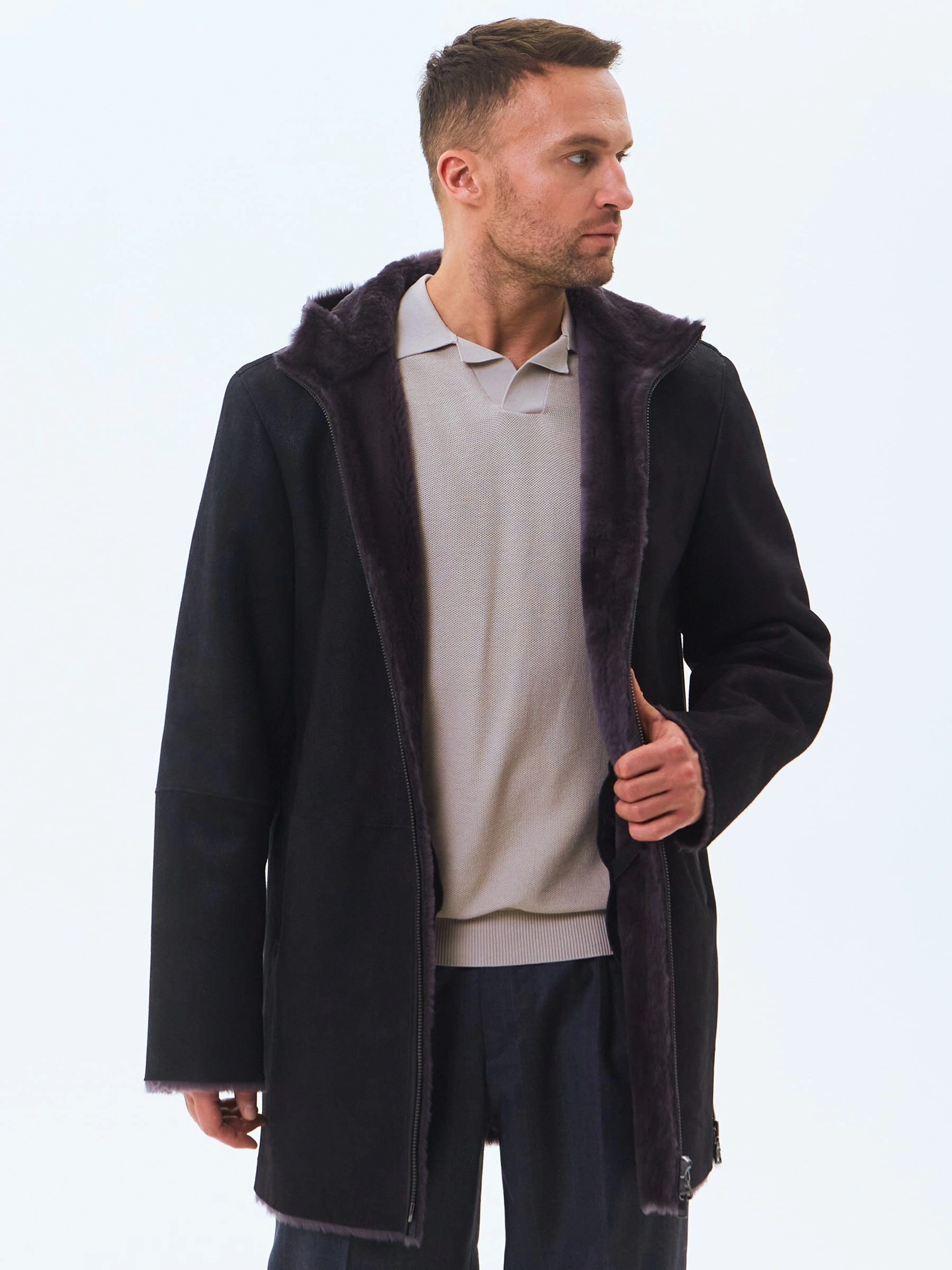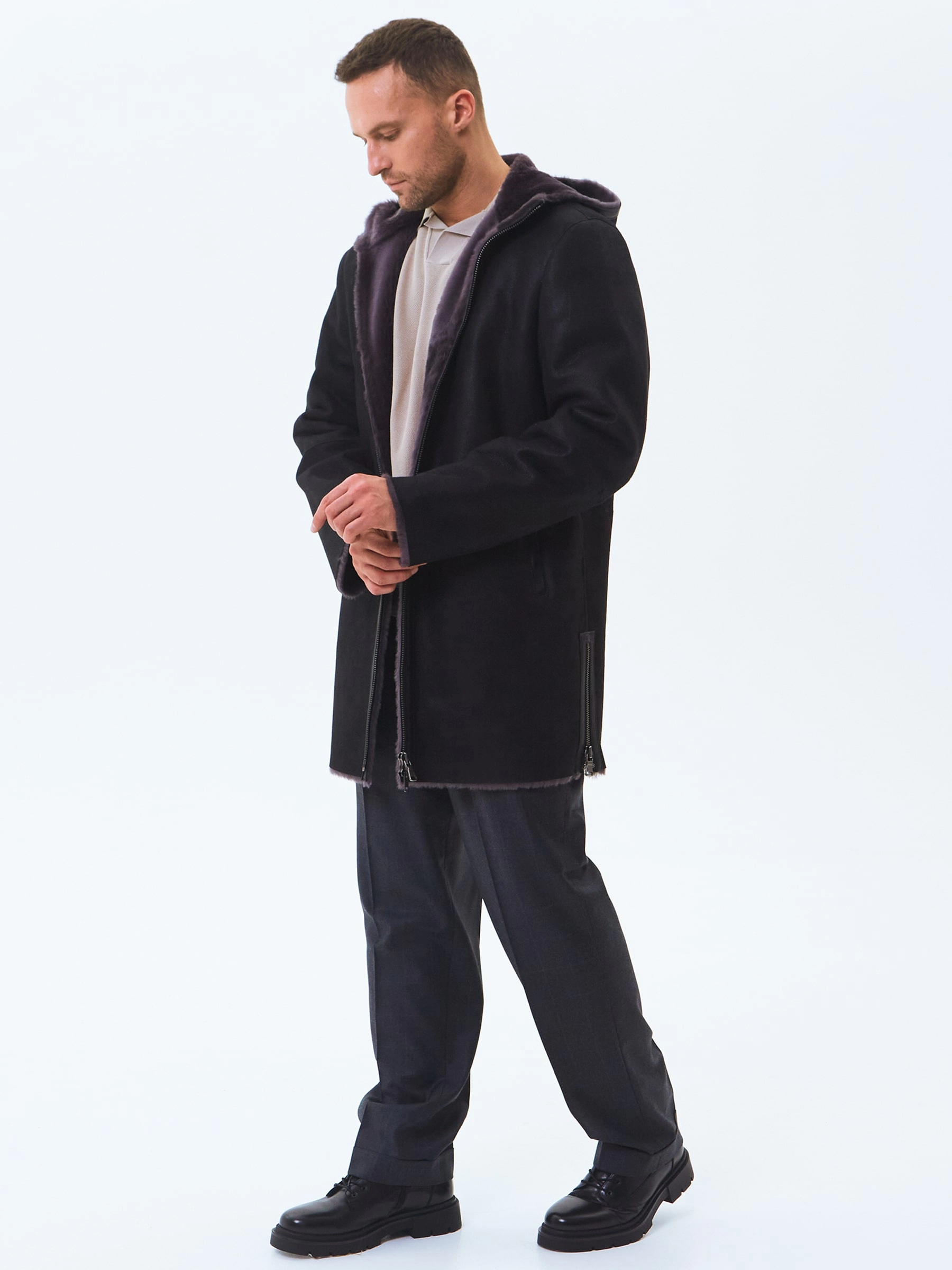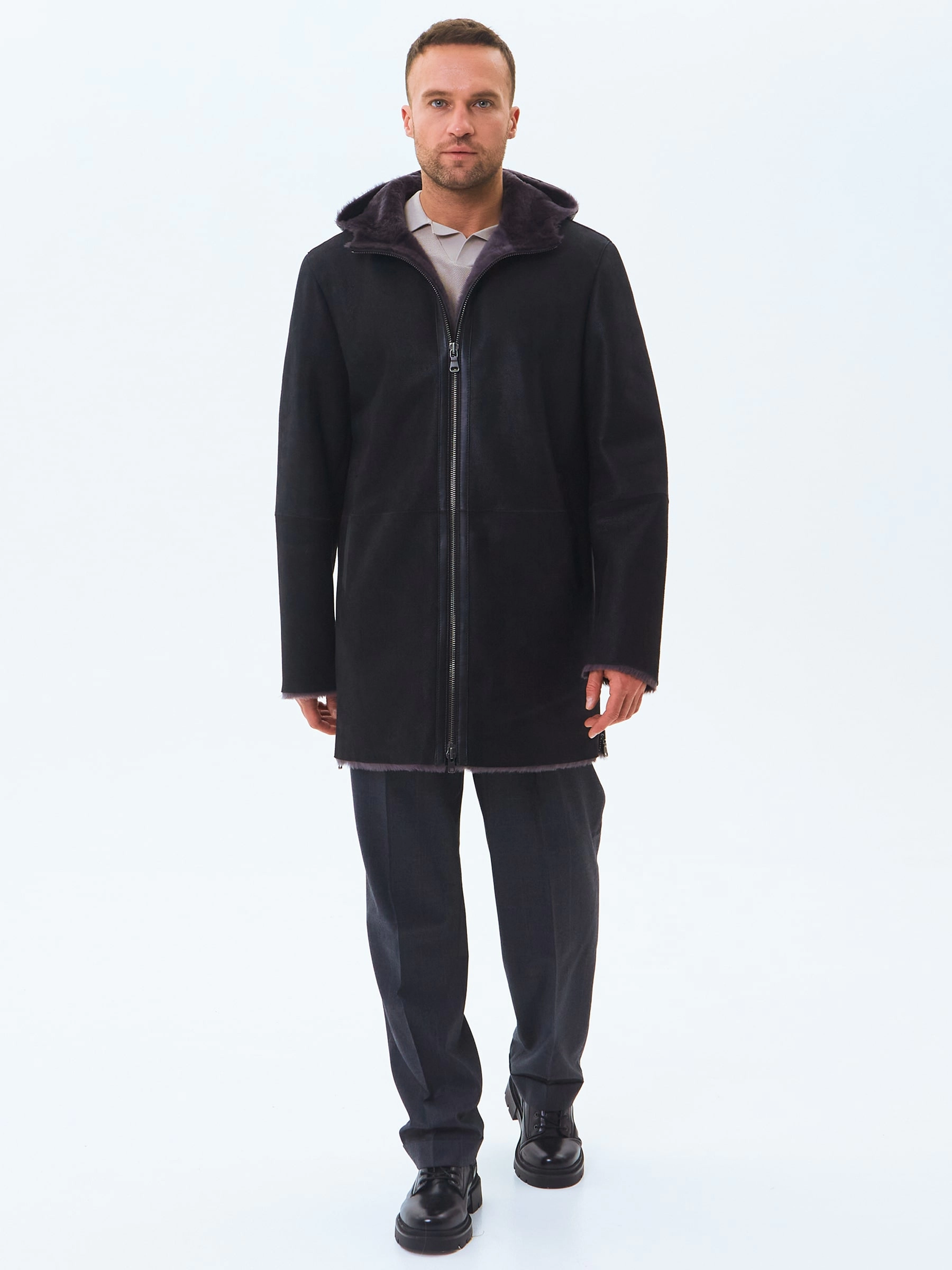 Товар длинная мужская дубленка из натуральной овчины премиум класса 438, черная, размер 52, артикул 41190 выполнен из овчина "мерино" с застежкой молния. Рассчитан на сезон: зима. Длина изделия 87 см, силуэт прямой.