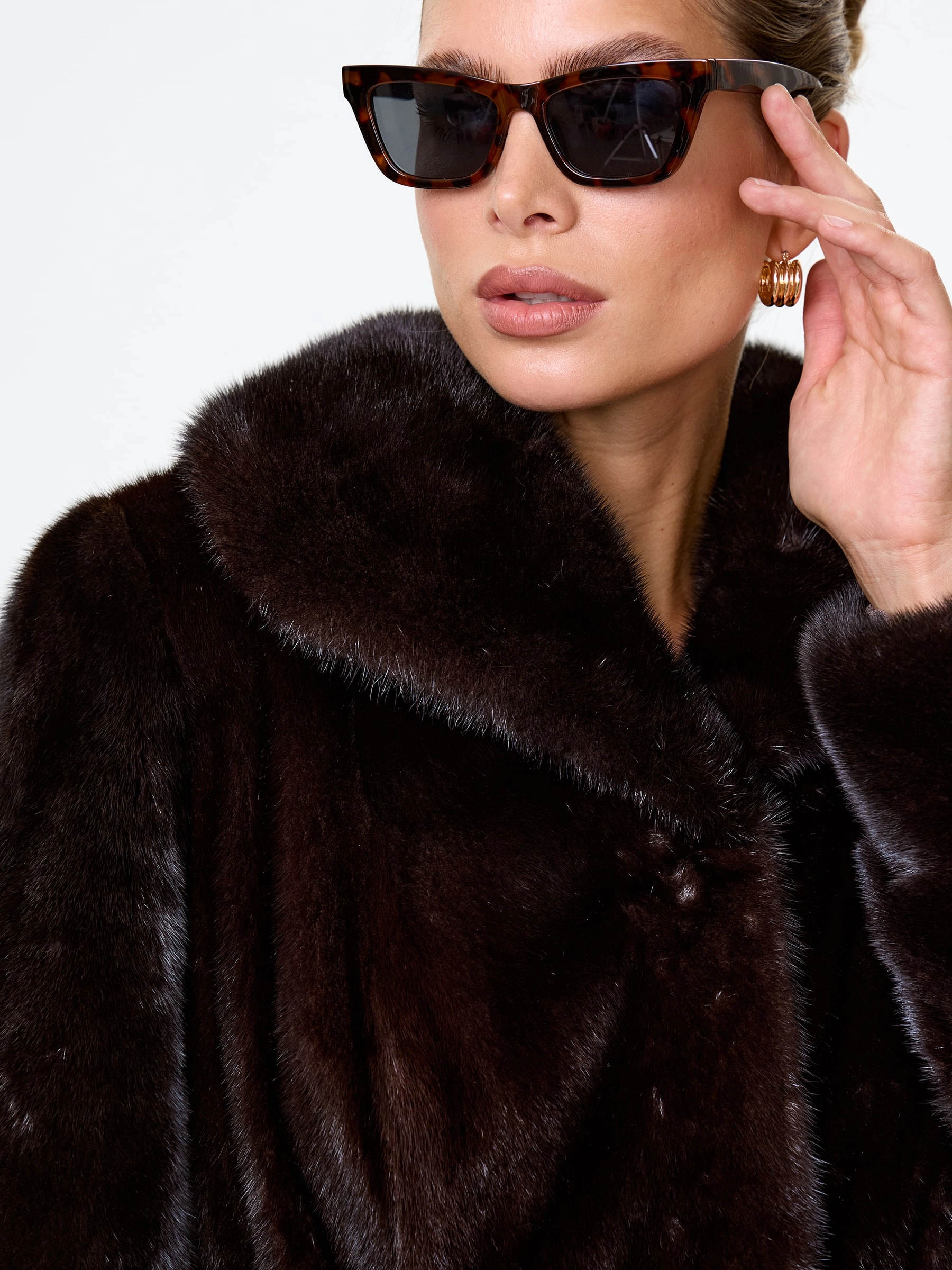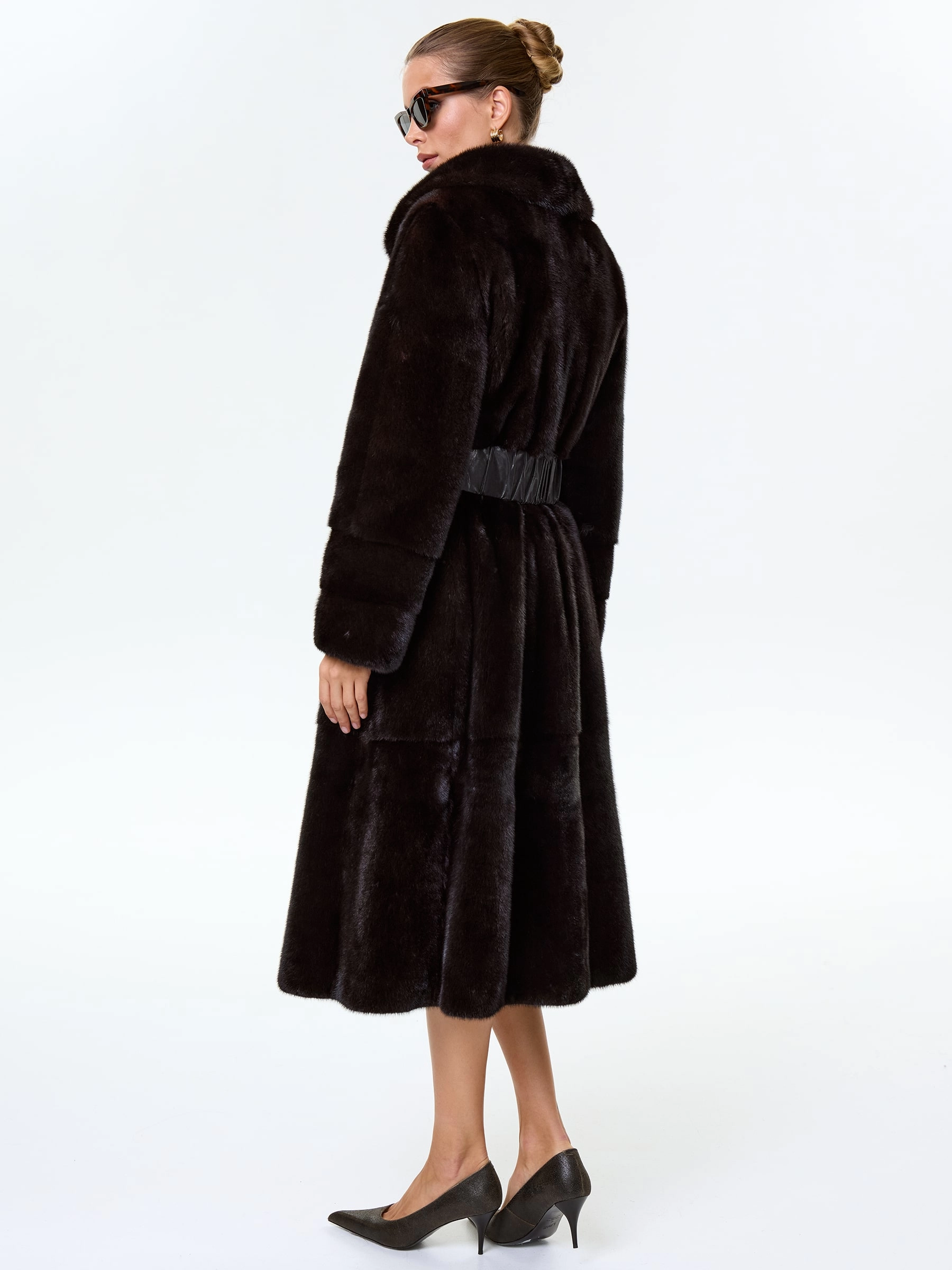Длинное женское пальто из меха норки Белла(в), черное, размер 52, артикул 64520