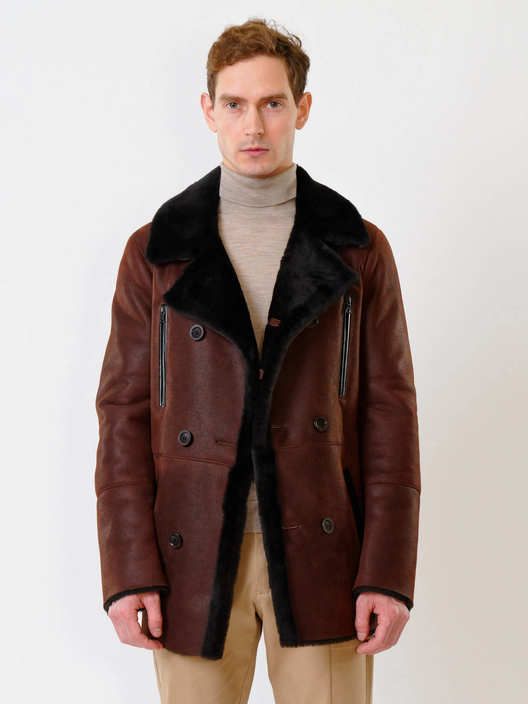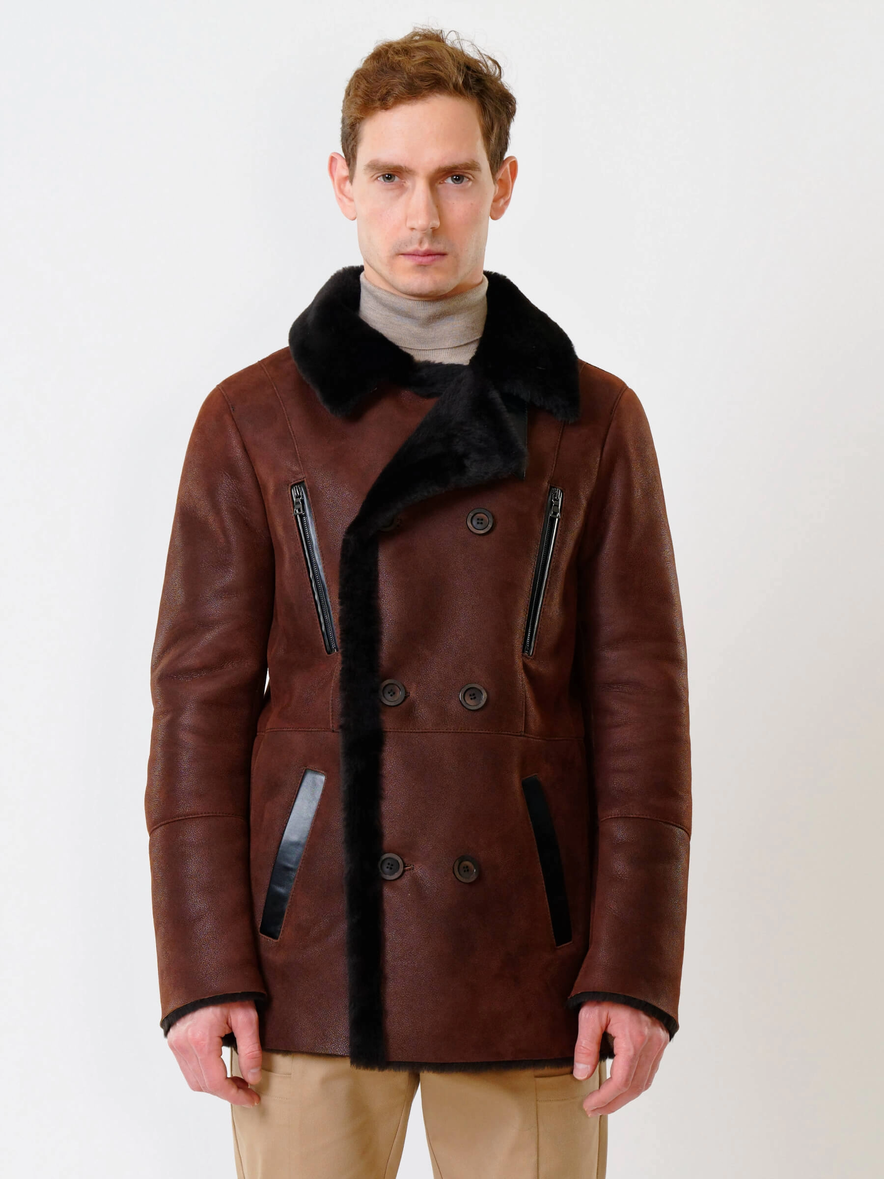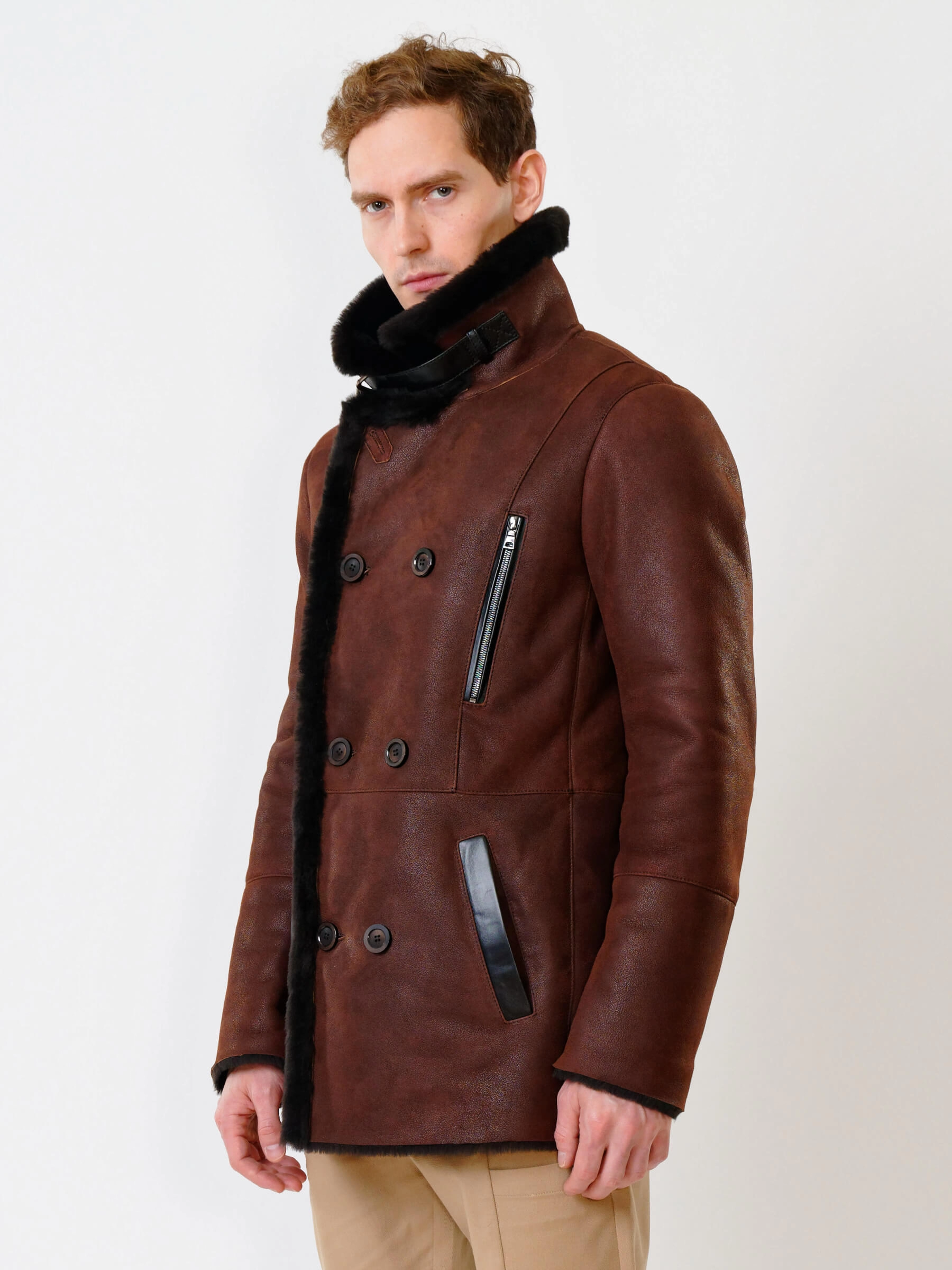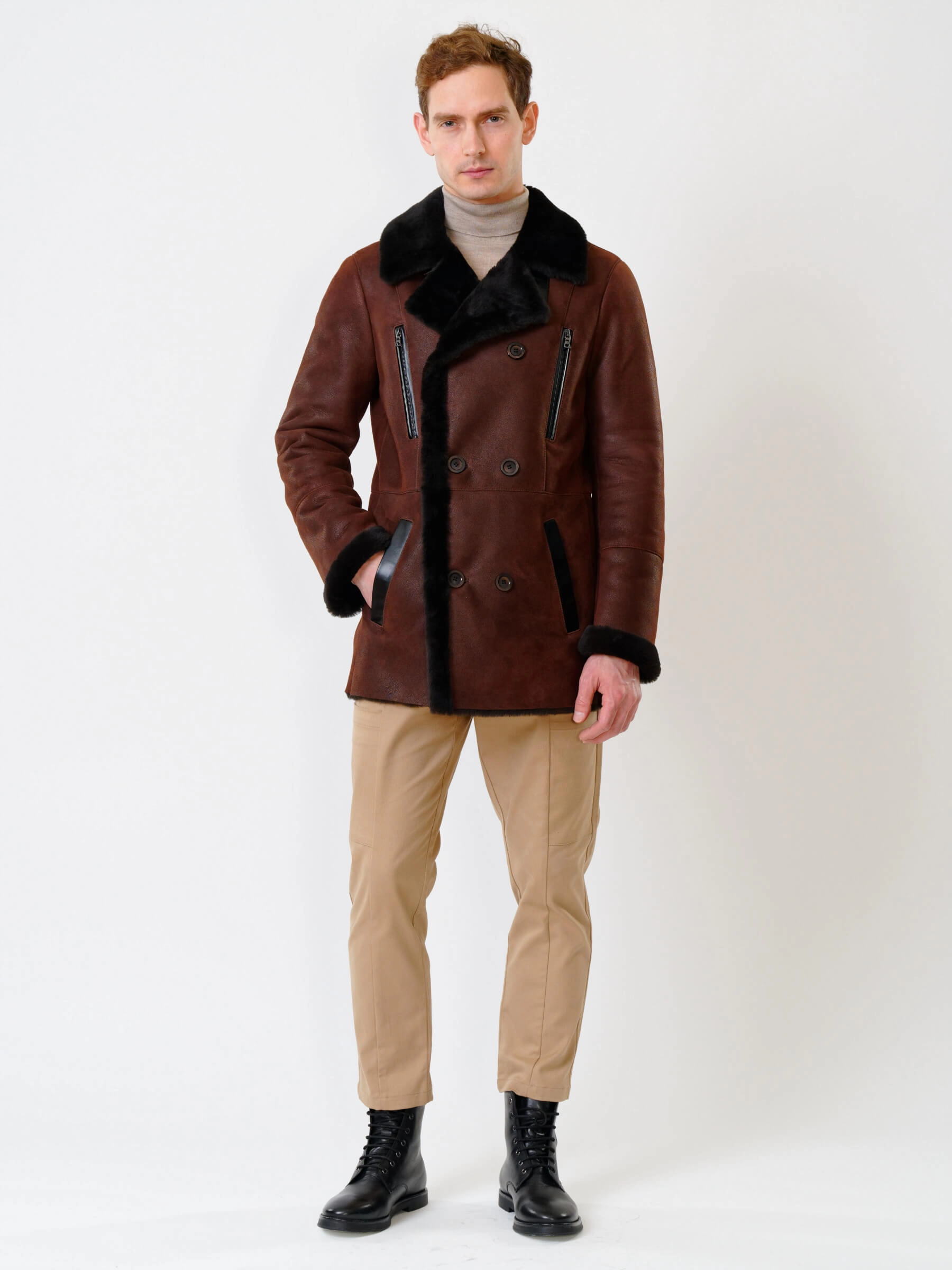 Стильная двубортная мужская дублёнка. Максимально густой мех прекрасно защитит от любого мороза. Новейшее устойчивое защитное покрытие. Длина рукавов регулируется манжетами-отворотами. Предусмотрены внутренние карманы для документов. Чёткая, выверенная посадка по фигуре. Минимальный вес. Безупречная работа наших портных. Премиальный уровень.