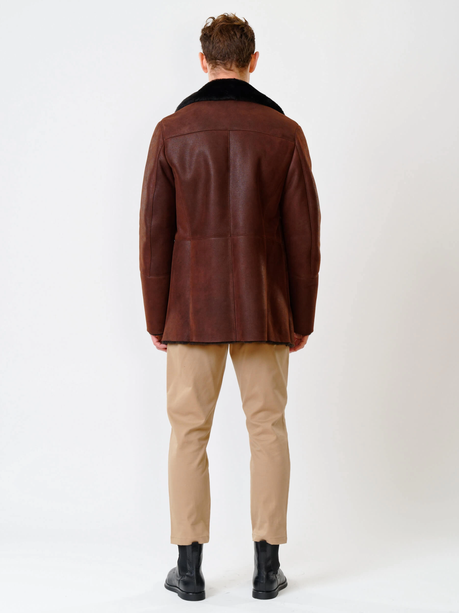 Дубленка двубортная мужская 431, коричневая, размер 48, артикул 70260
