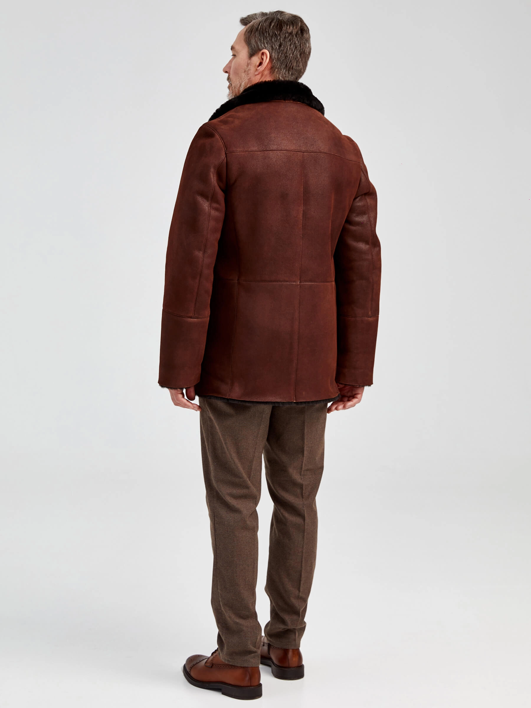 Дубленка двубортная мужская 431, коричневая, размер 48, артикул 70782