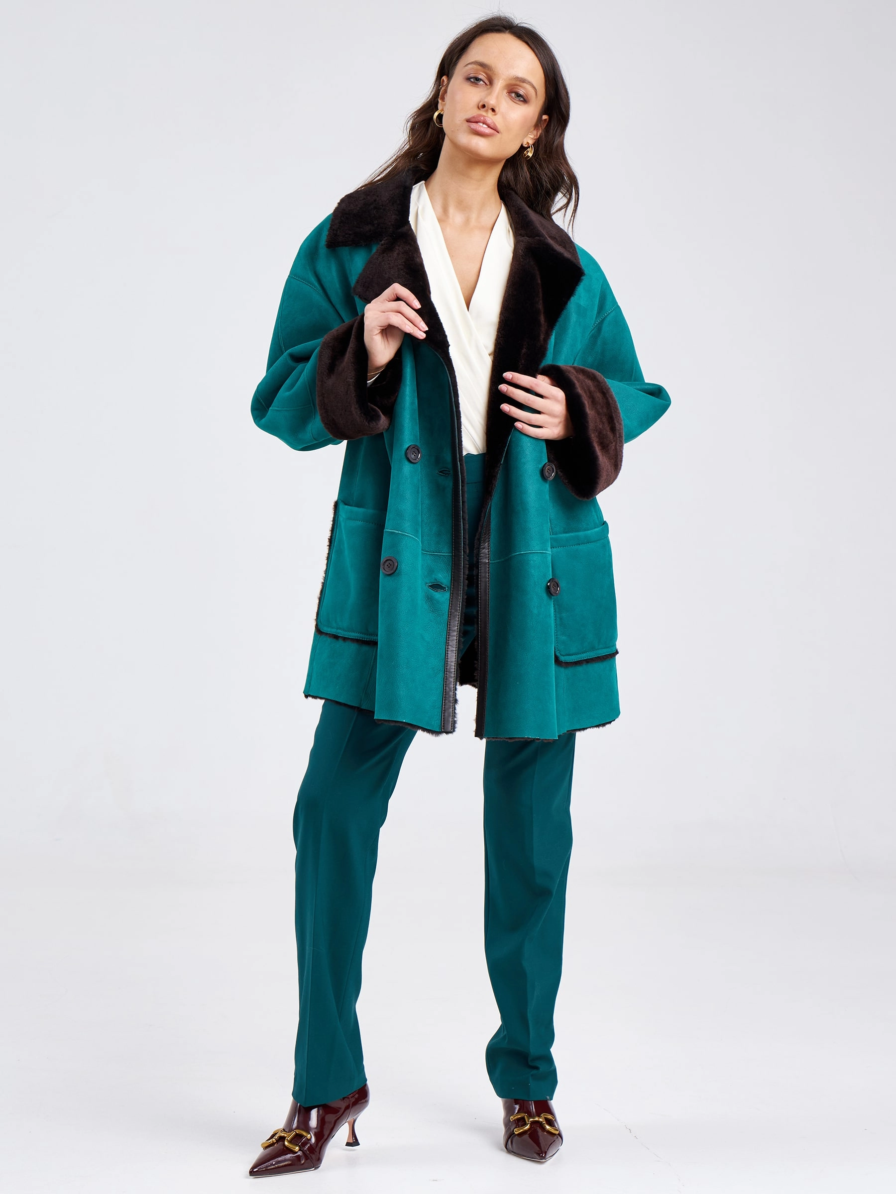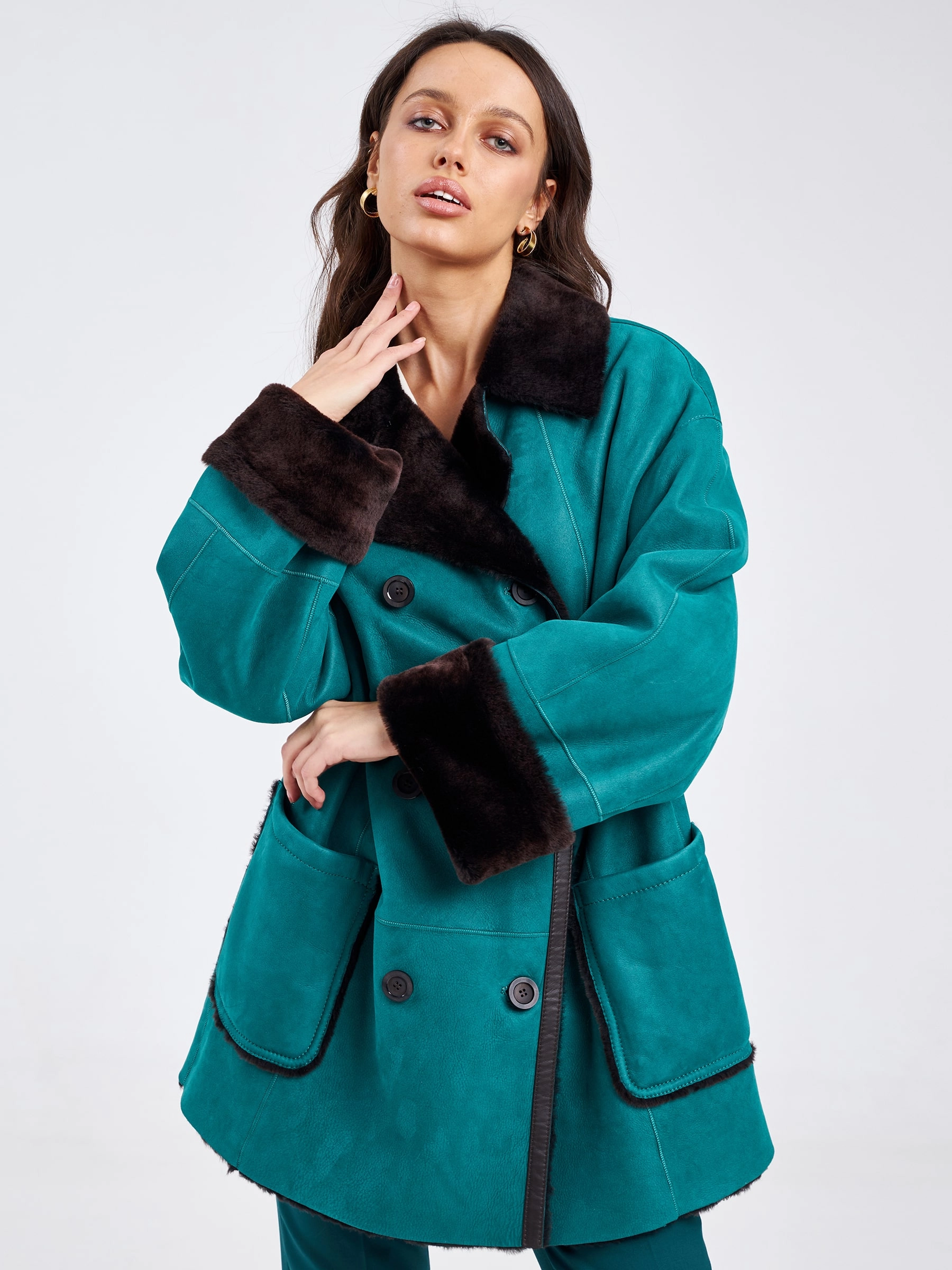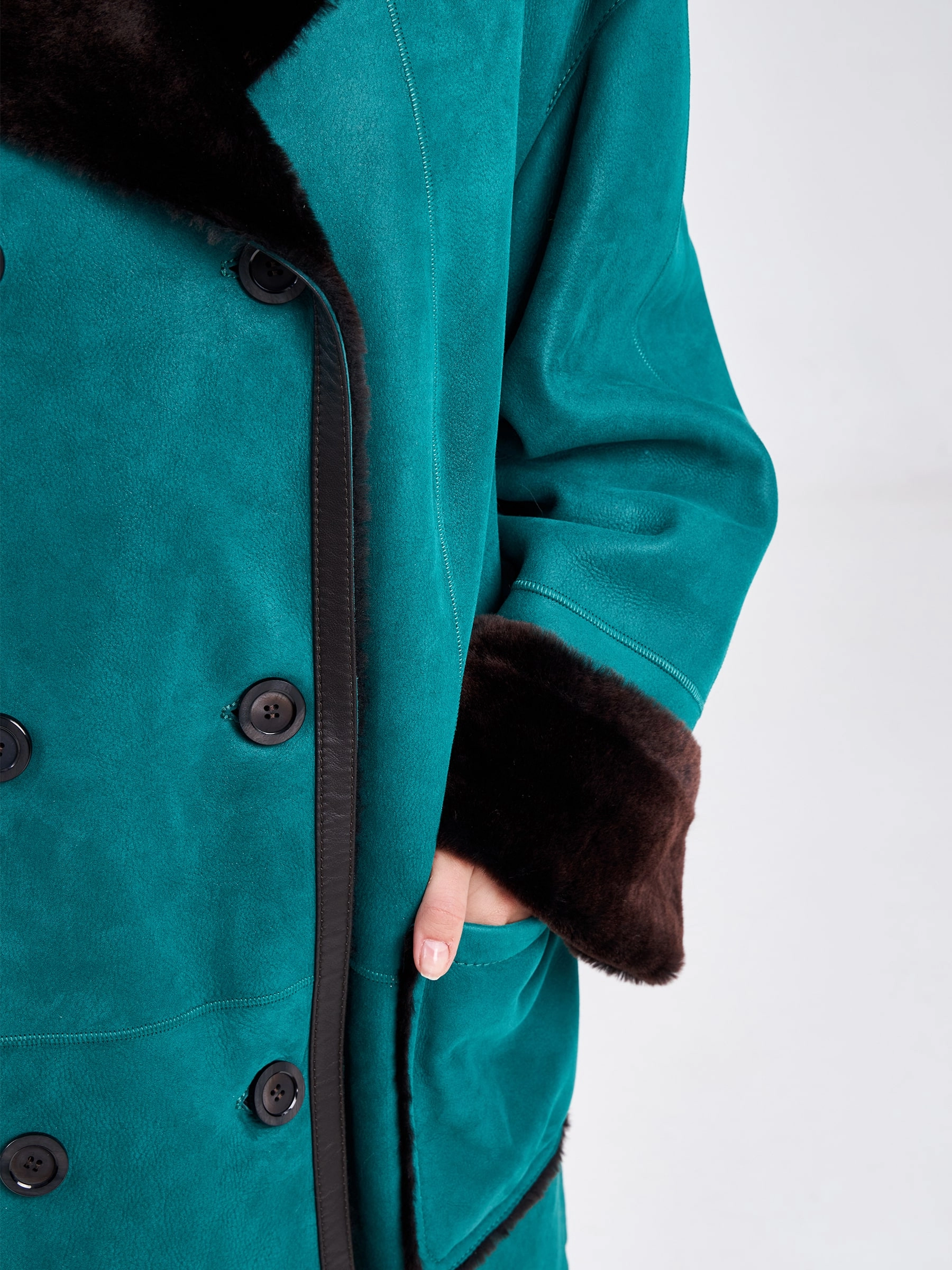 Товар короткая двубортная женская дубленка премиум класса 298, зеленая, размер 68, артикул 62890 выполнен из овчина "мерино" с застежкой пуговицы. Рассчитан на сезон: зима. Длина изделия 85 см, силуэт свободный.