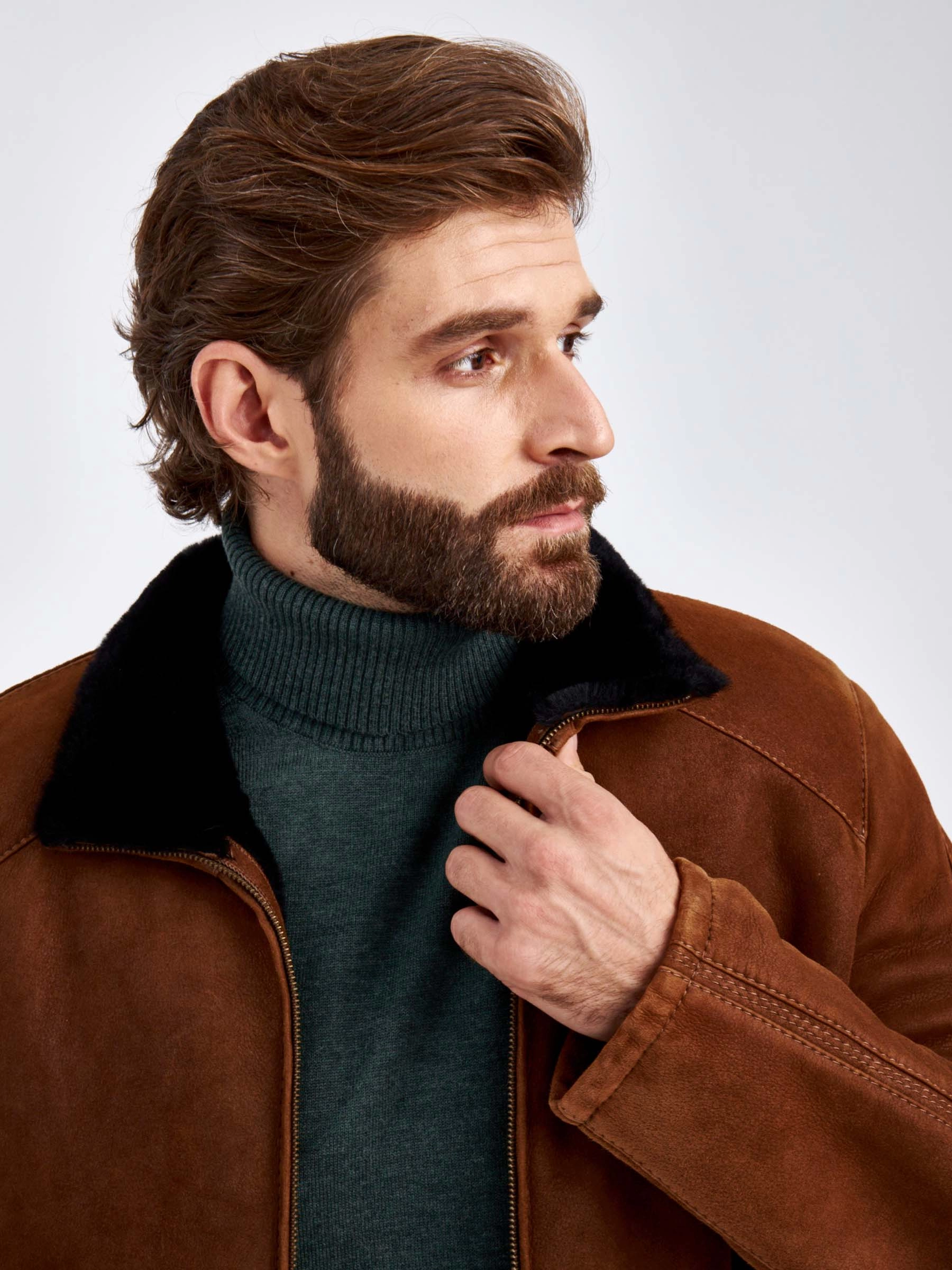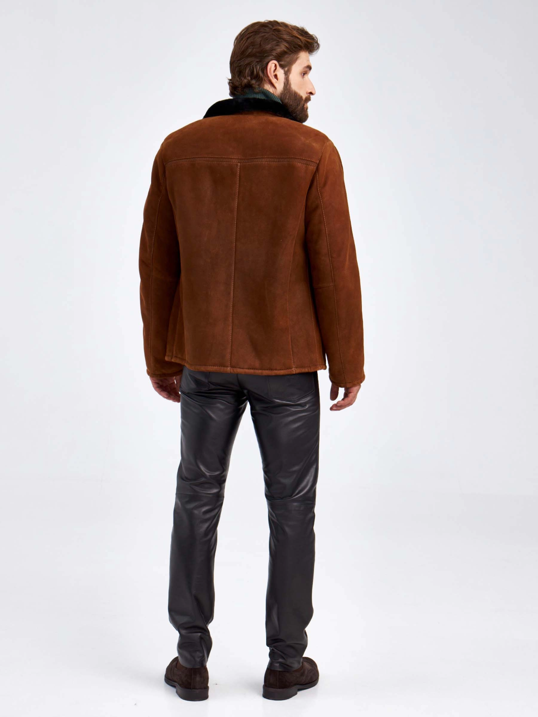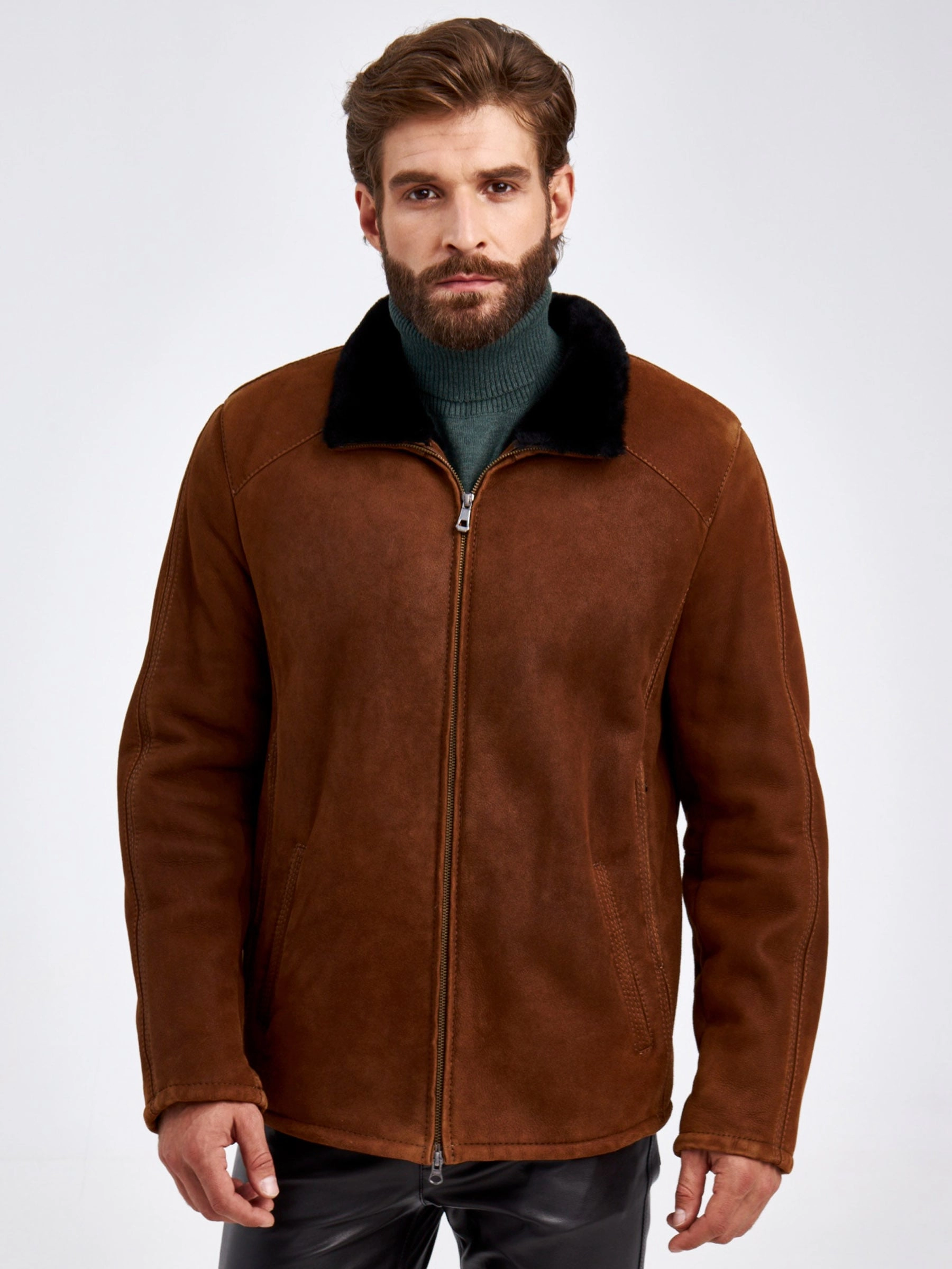 Короткая замшевая дубленка для мужчин 2240, коричневая, размер 48, артикул 29380
