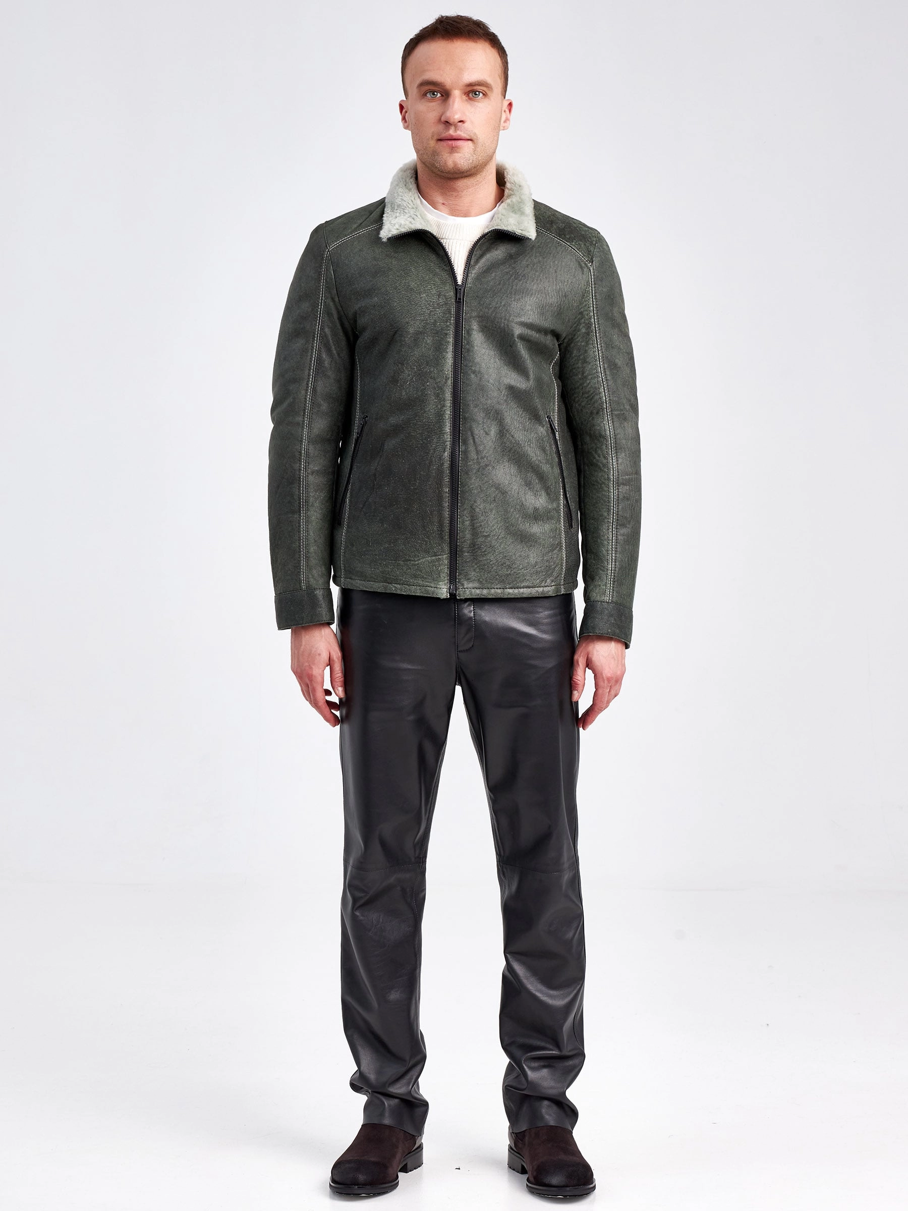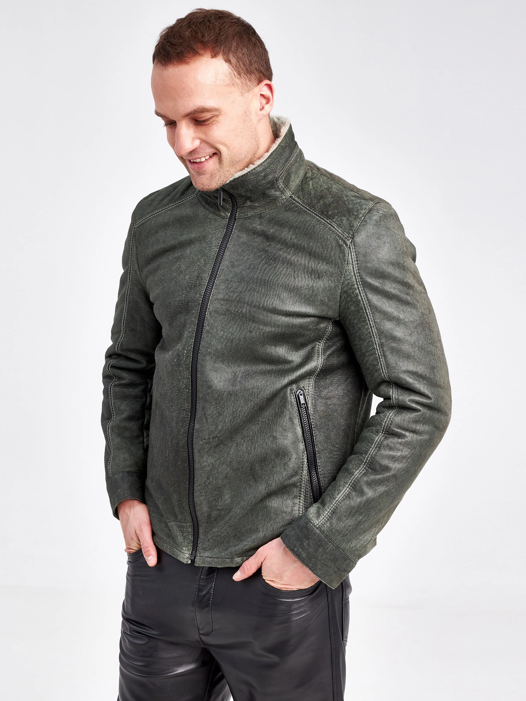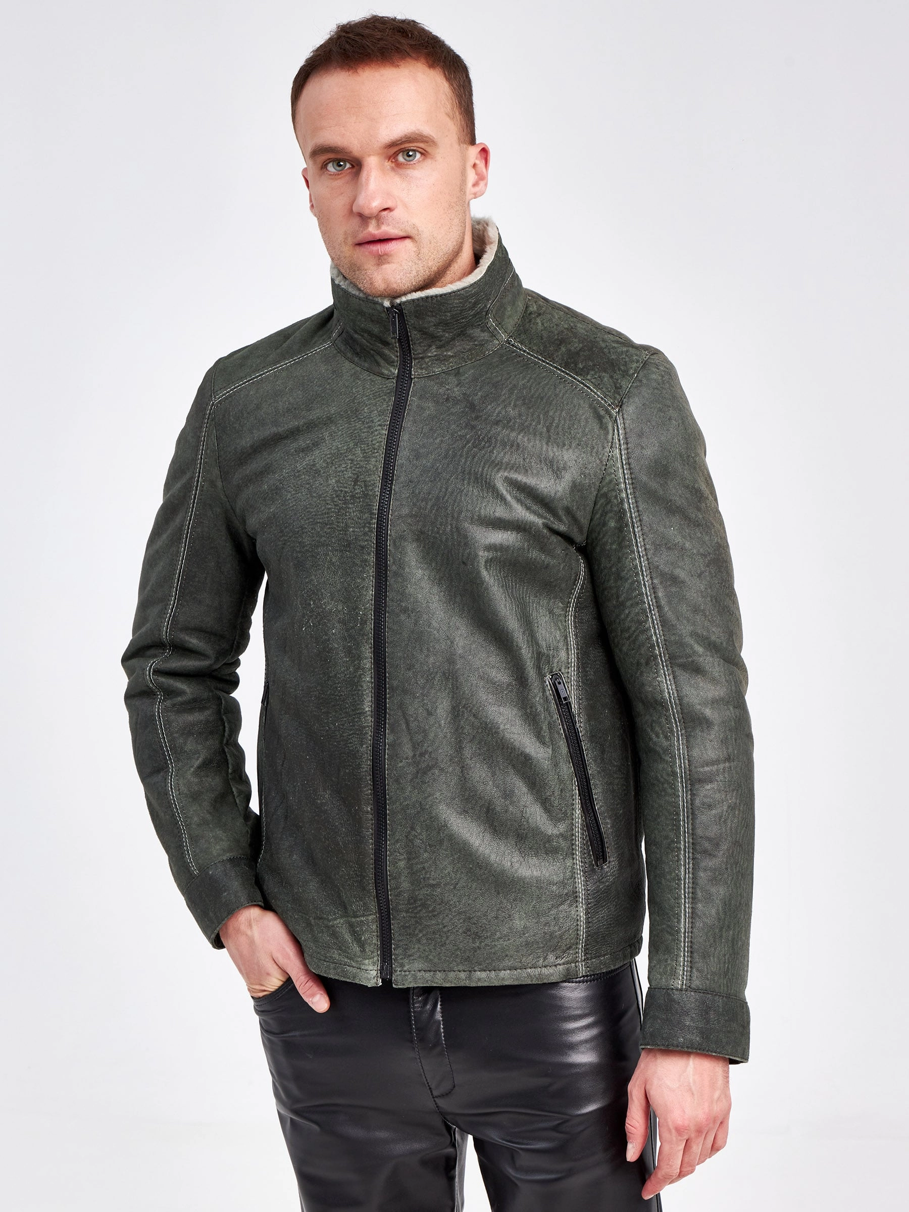 Облегченная мужская дубленка из меха ягненка на молнии с эффектом "Джангл"