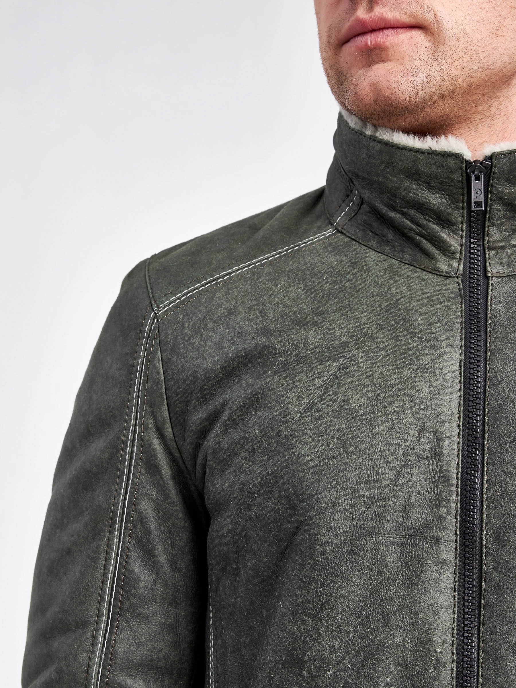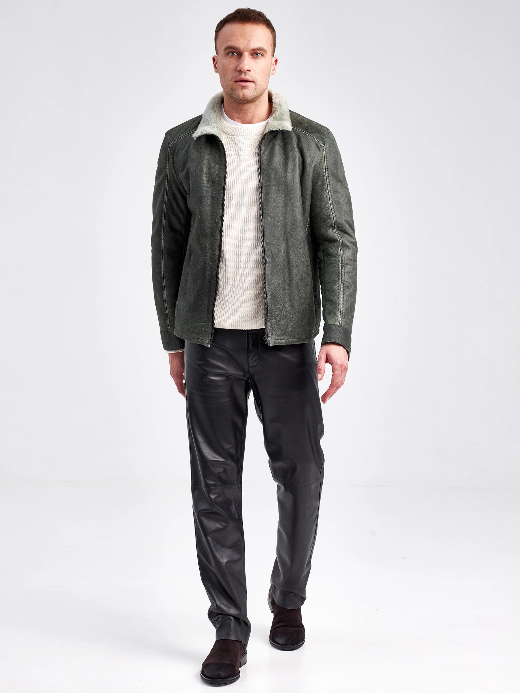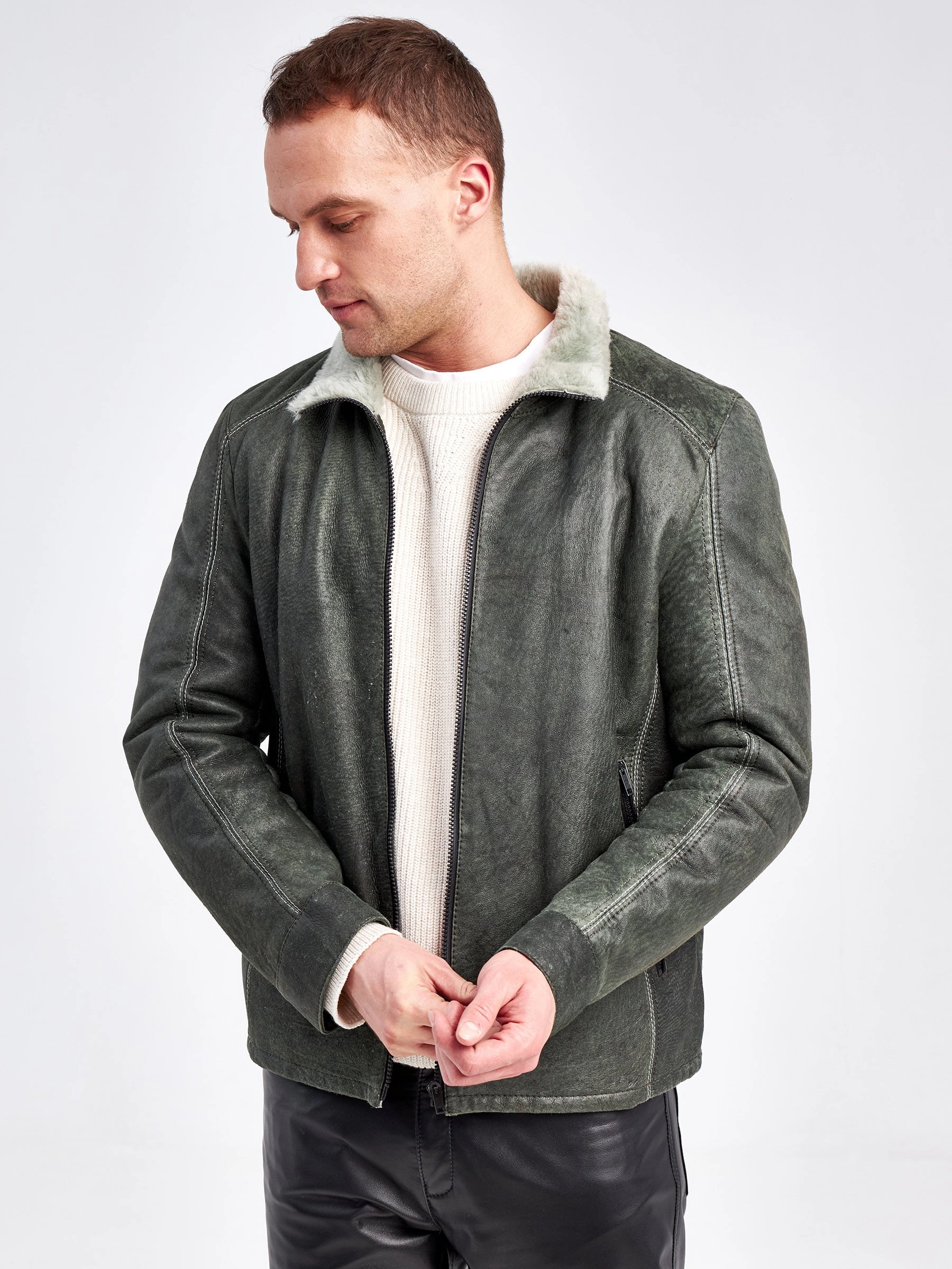 Облегченная мужская дубленка из меха ягненка на молнии с эффектом "Джангл"