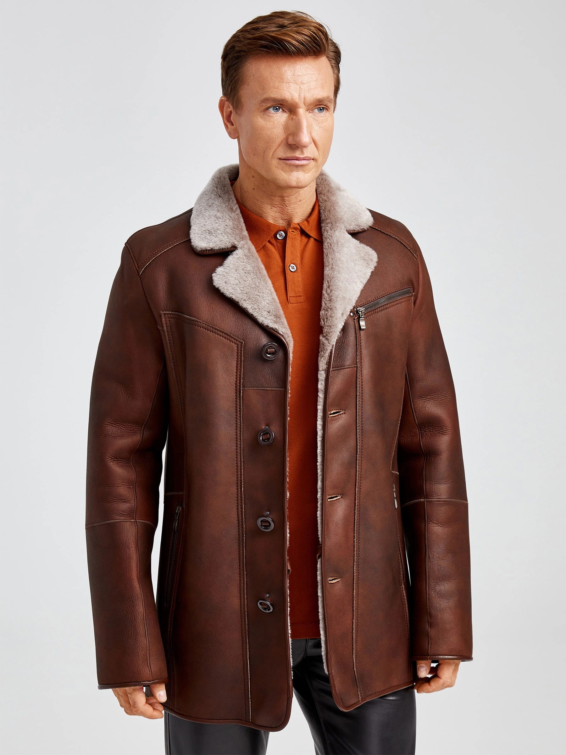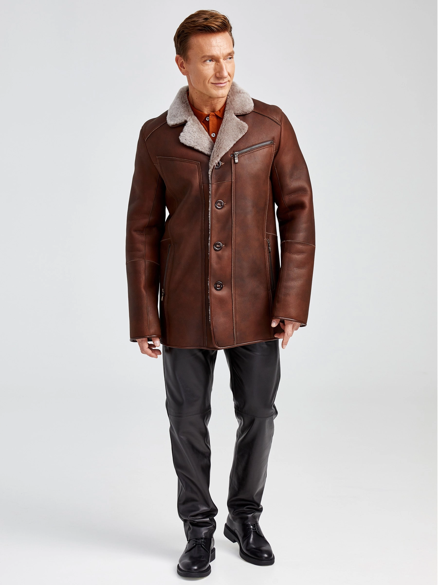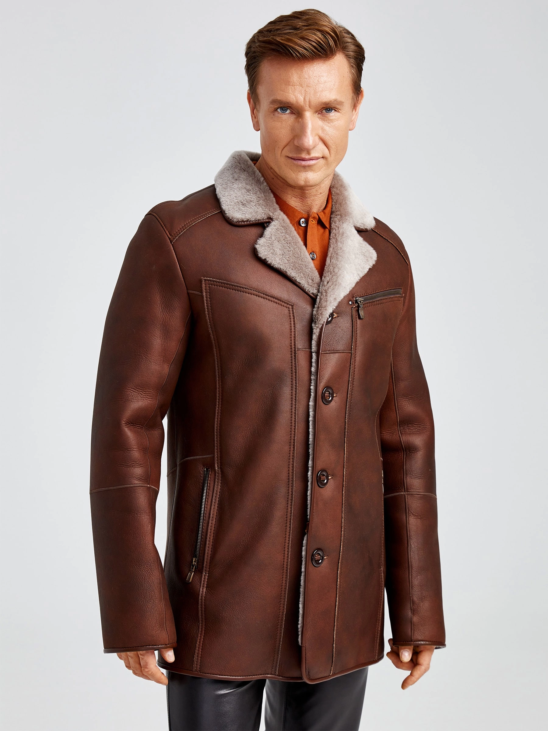 Классическая мужская дубленка 402, виски, размер 50, артикул 70731