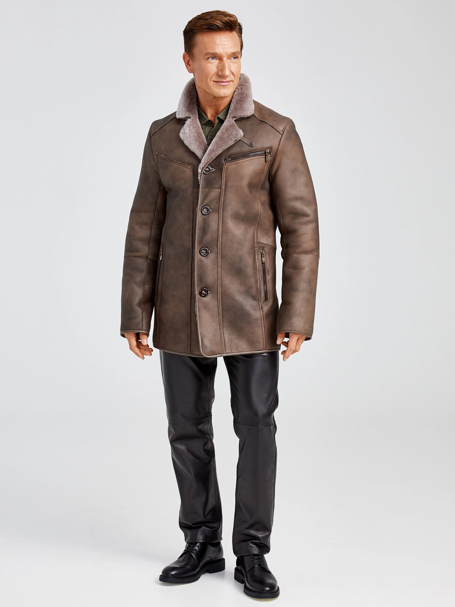 Классическая мужская дубленка 402, серо-коричневая, размер 50, артикул 70751