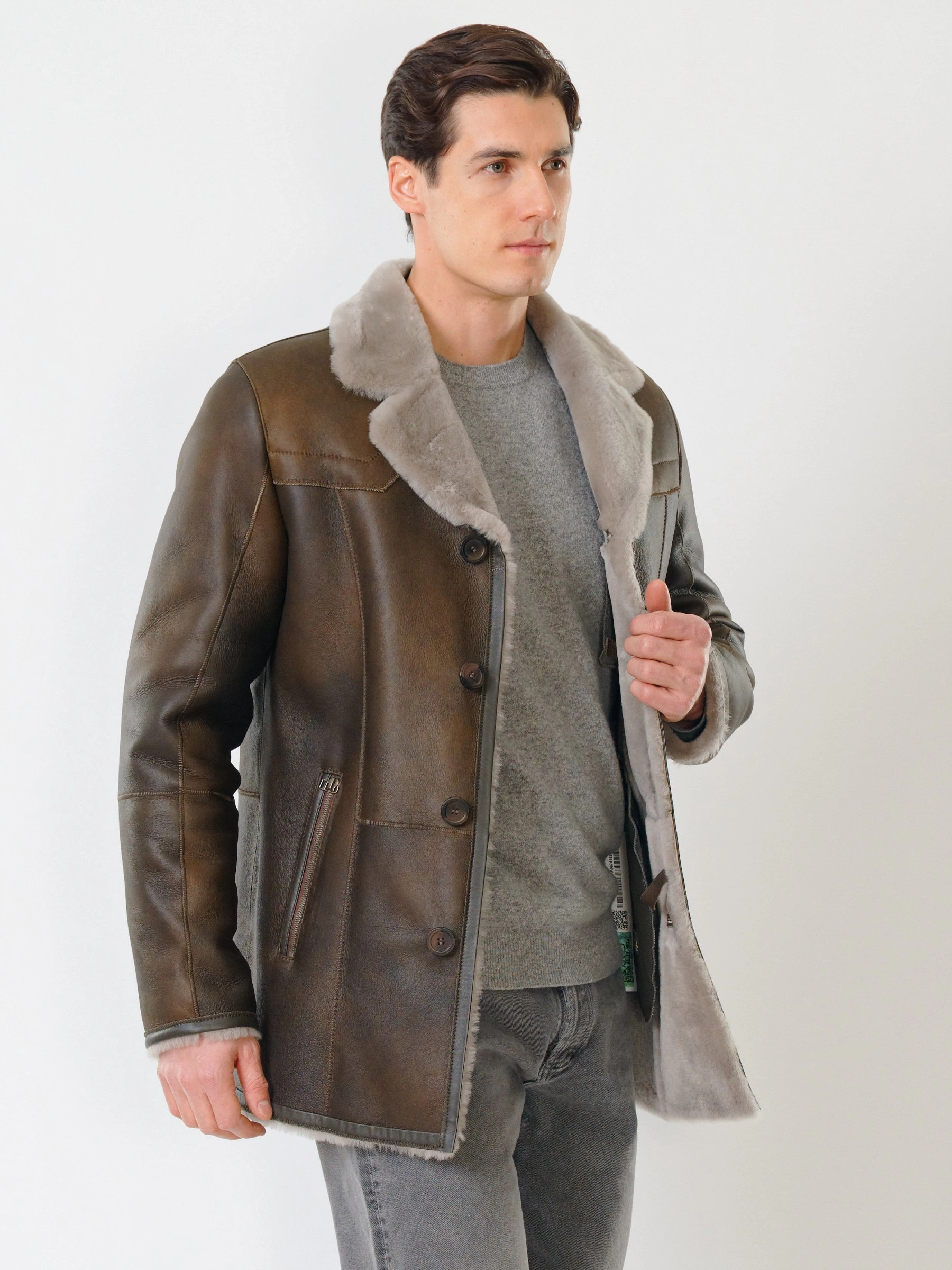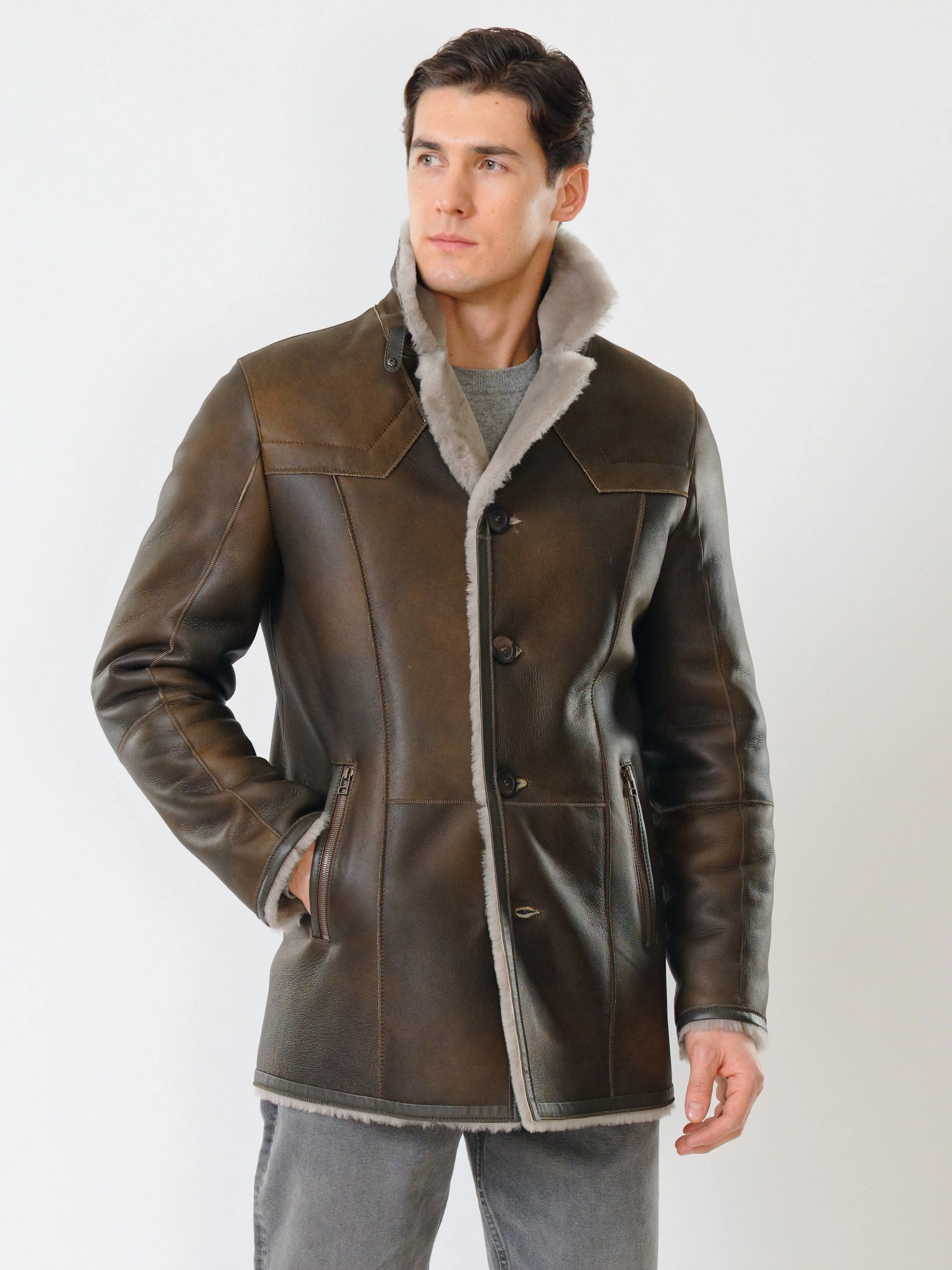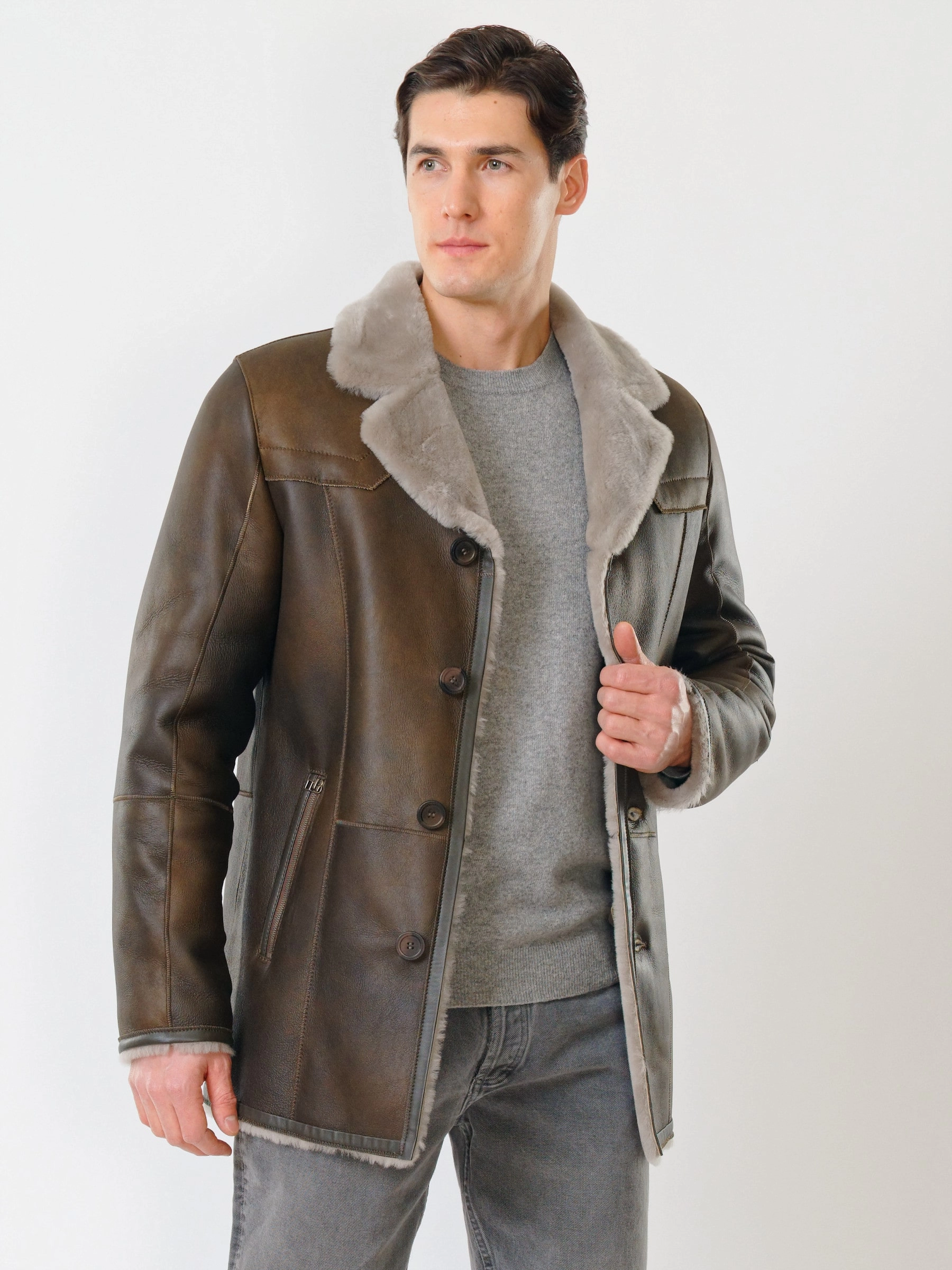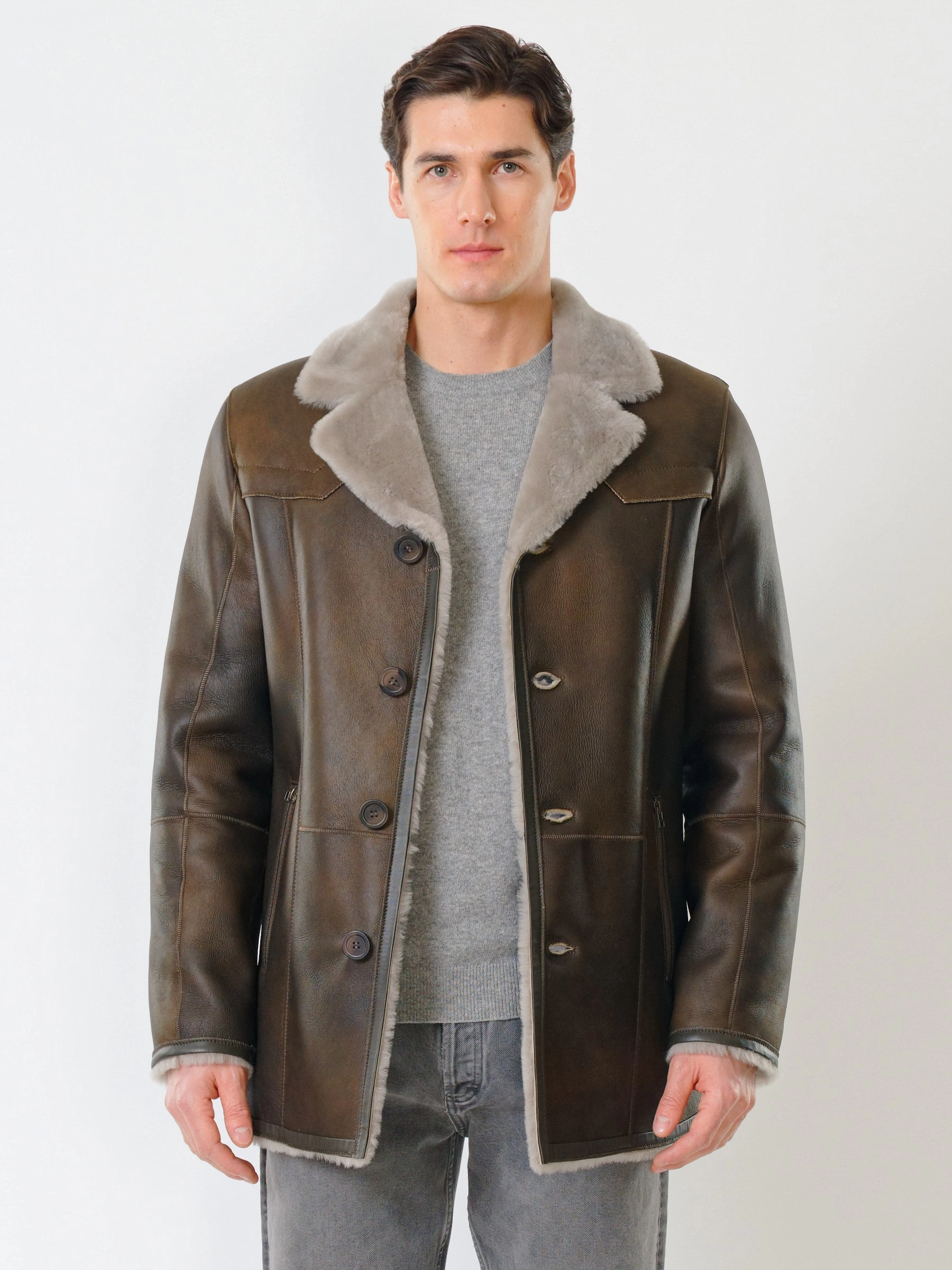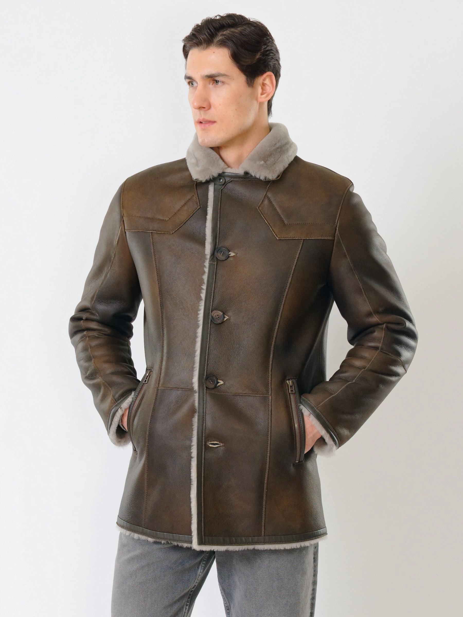 Мужская классическая дубленка 405, оливковая, размер 48, артикул 70431
