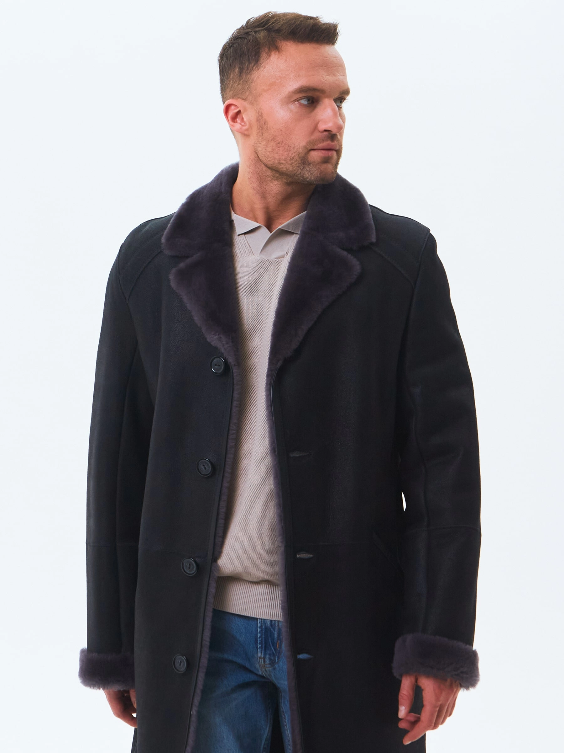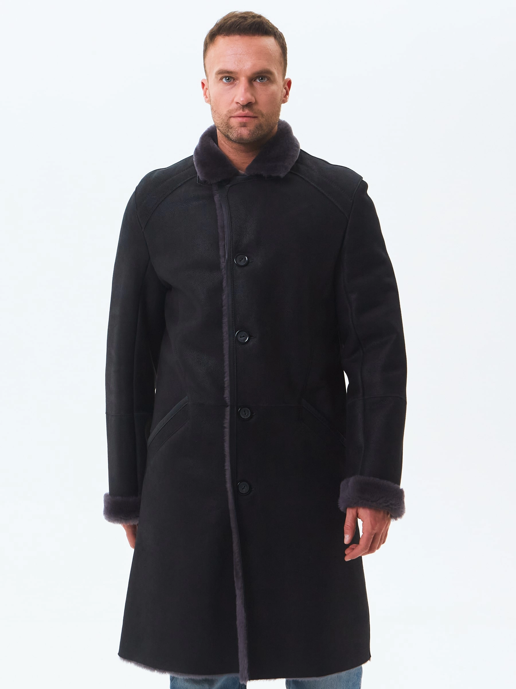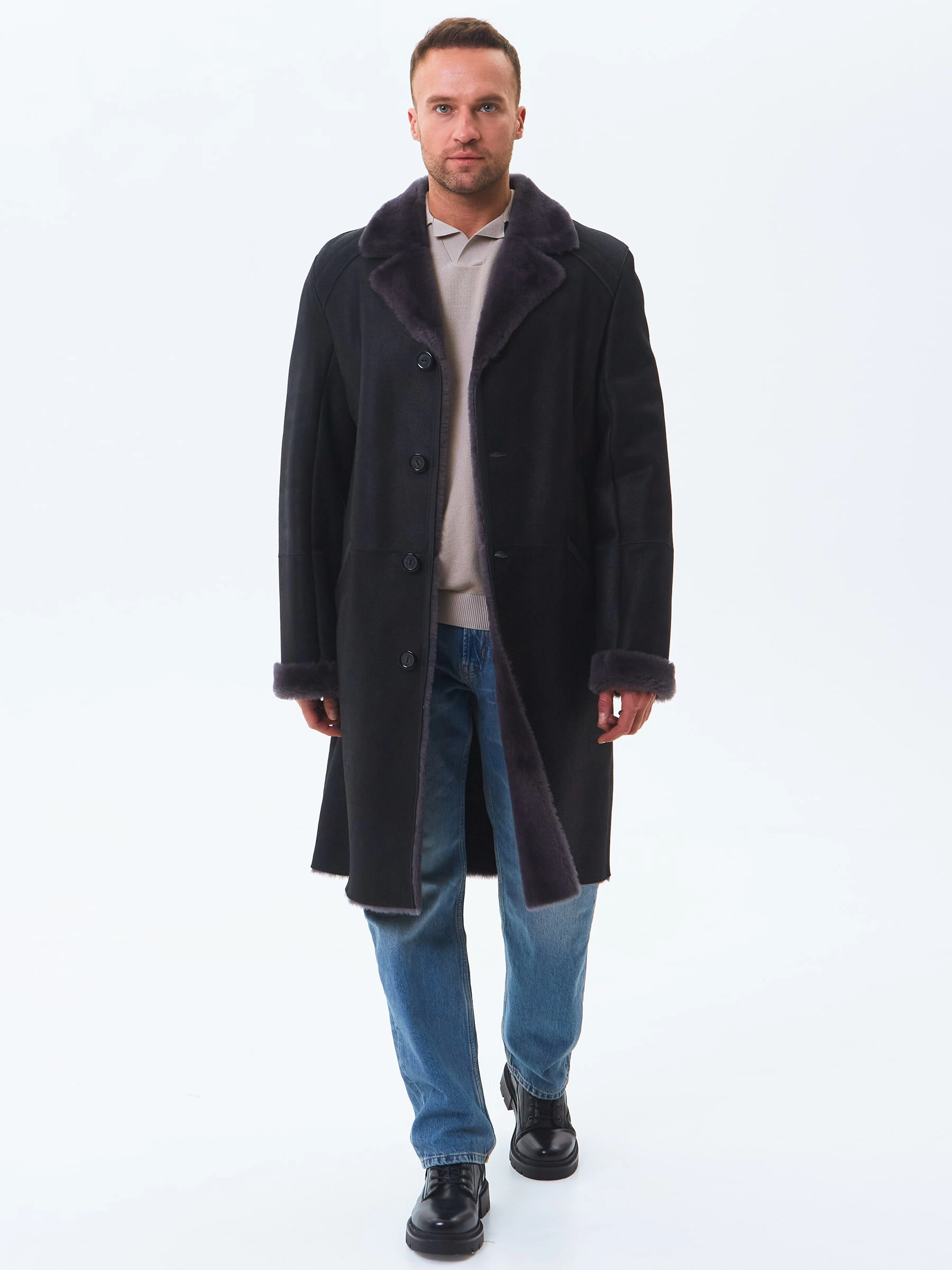 Элегантное мужское меховое пальто. Идеальное стилистическое сочетание с классическим деловым костюмом. Тонкорунная овчина мериносной породы с максимально густым шелковистым волосом. Новейшее защитное покрытие надёжно предохраняет от царапин. Верхняя застёжка закрывает горловину. Рельефы полочек создают эффект приталенности. Предусмотрен внутренний карман для документов. Эргономичные боковые карманы с листочками. Сзади выполнена шлица. Идеальные швы, продуманные и удобные элементы. Аккуратность во всей работе. Чёткая и очень удобная посадка по фигуре. Великолепная свобода движений. Абсолютный комфорт.