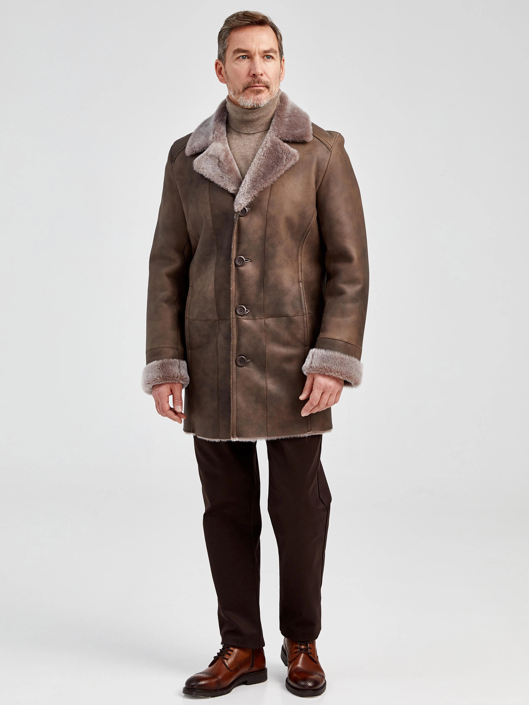 Современная мужская дублёнка классической длины. Удобные карманы для ключей и документов. Новейшее защитное покрытие. Особо прочные нитки. Приятный на ощупь, максимально густой мех мериносной породы овец. Идеальные швы, продуманные и удобные элементы. Аккуратность во всей работе. Чёткая и очень удобная посадка по фигуре. Великолепная свобода движений. Абсолютный комфорт.