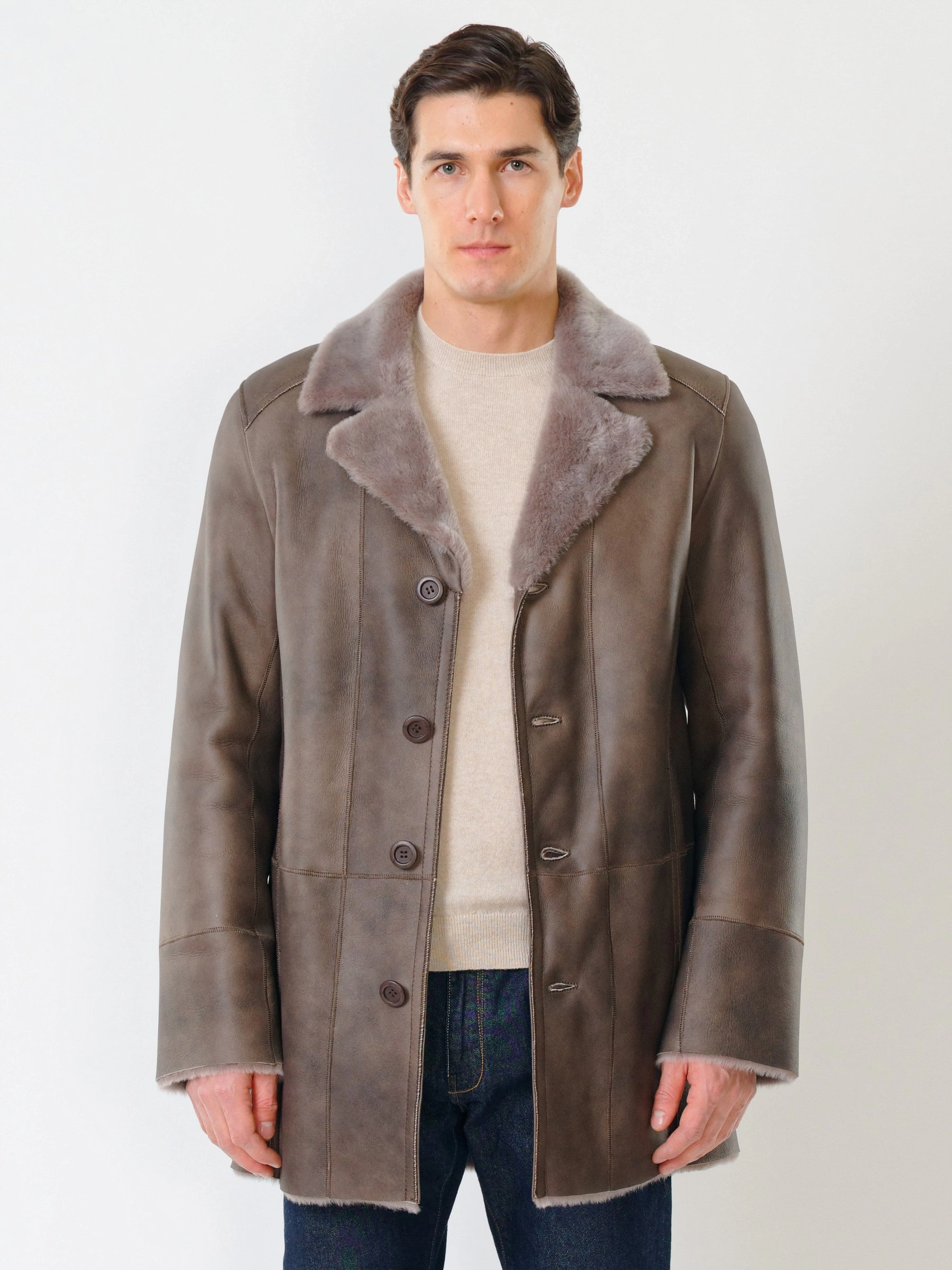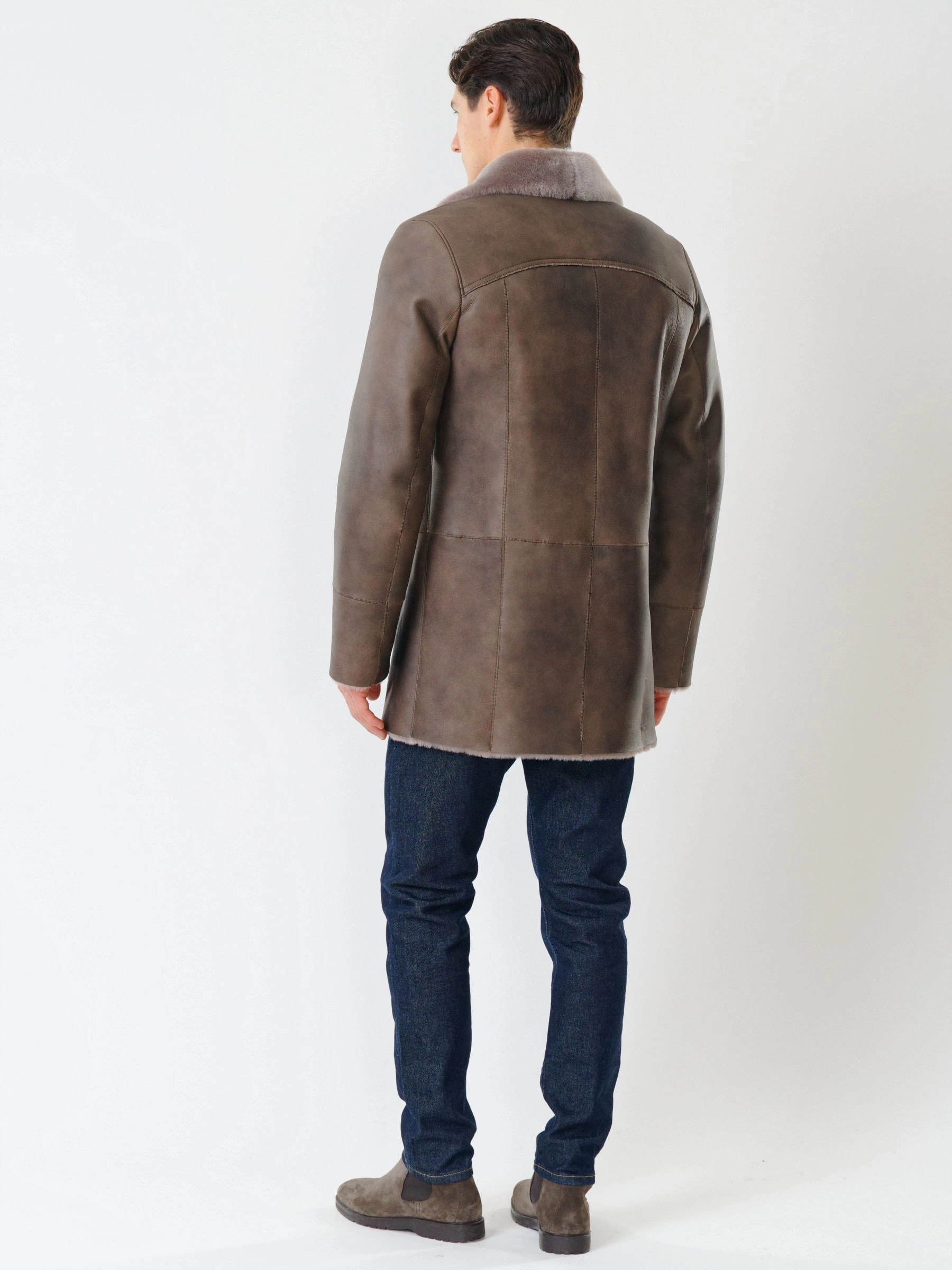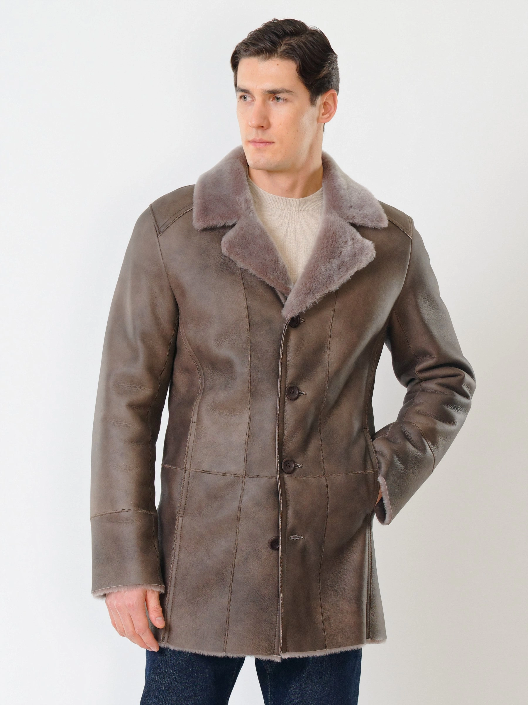 Дубленка классическая мужская 412, серо-коричневая, размер 50, артикул 70451
