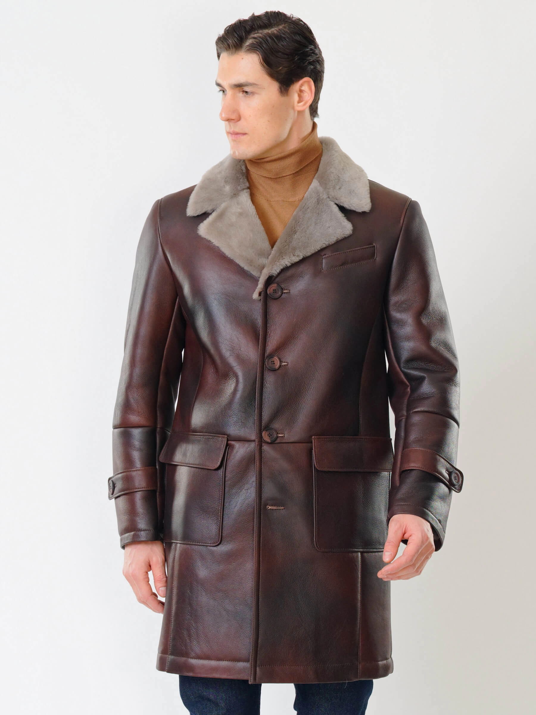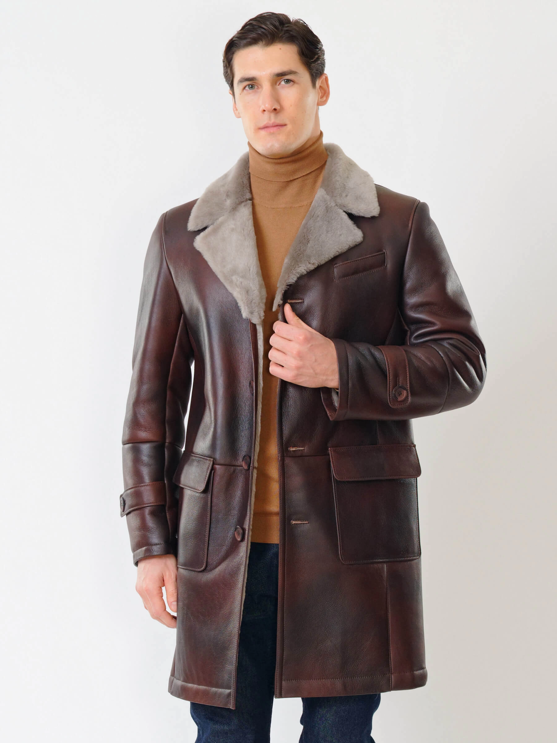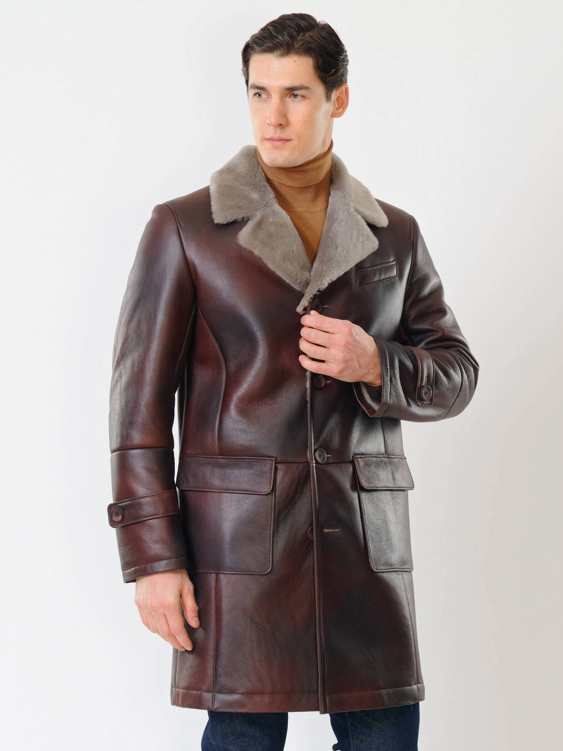 Длинная классическая мужская дубленка 419, виски, размер 48, артикул 70480
