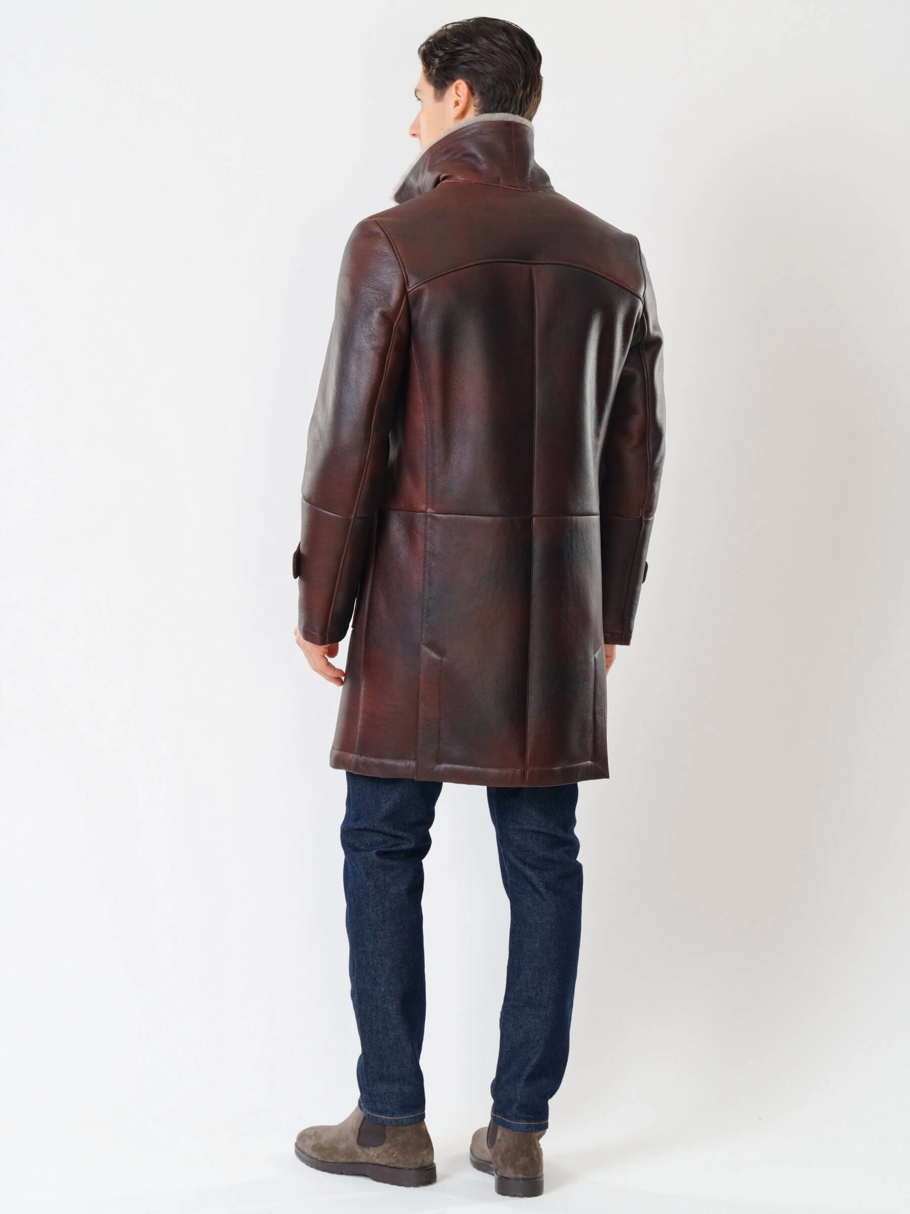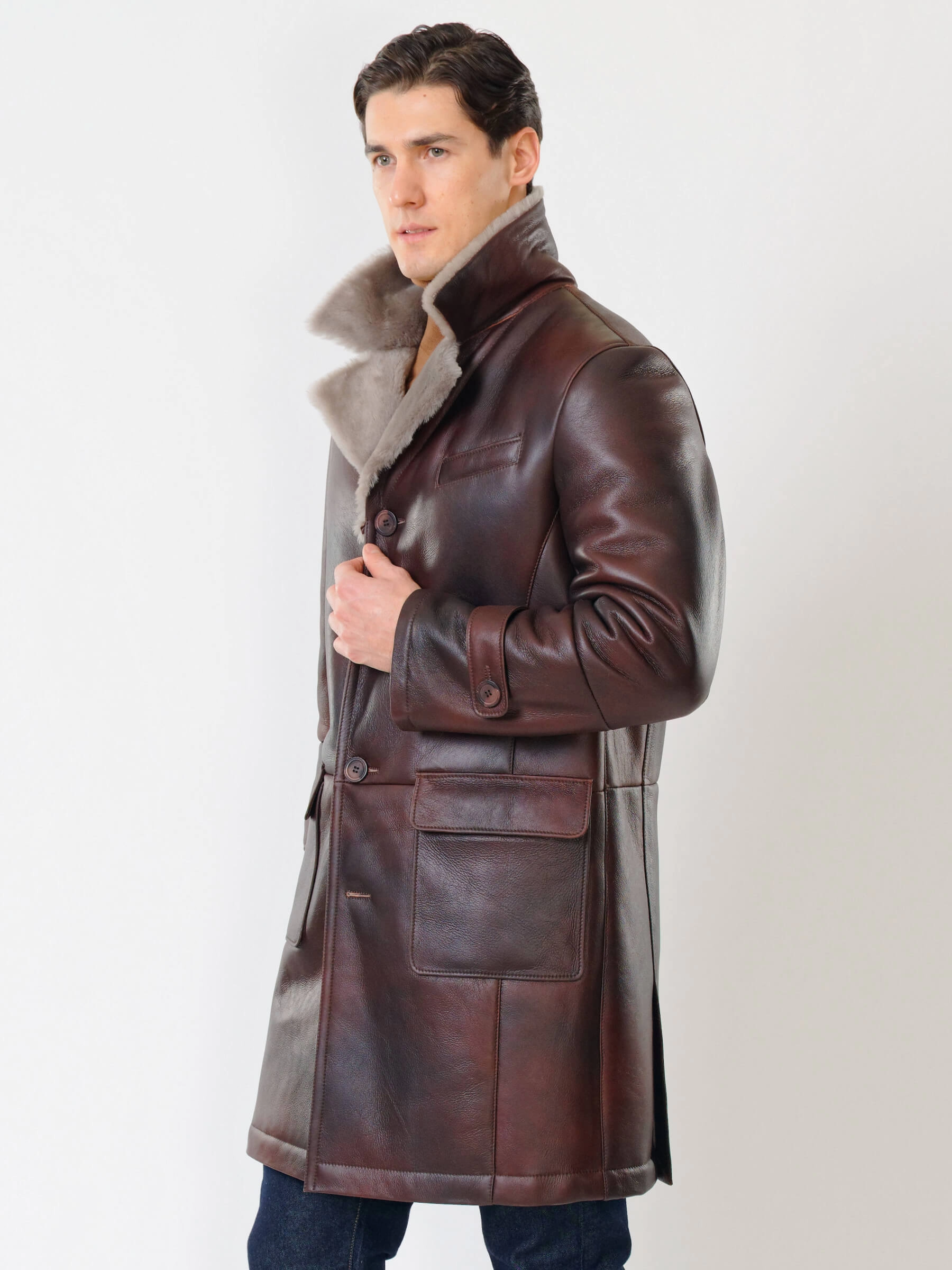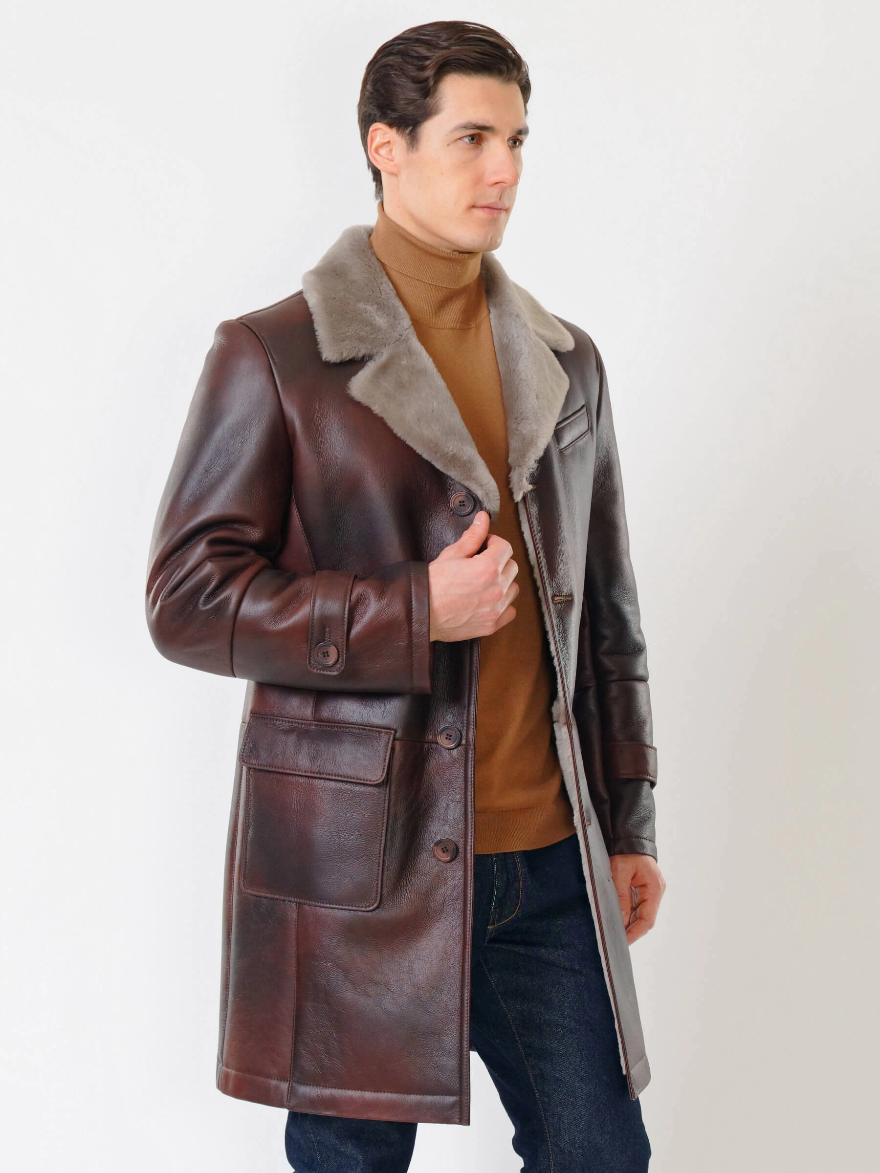 Длинная классическая мужская дубленка 419, виски, размер 48, артикул 70480
