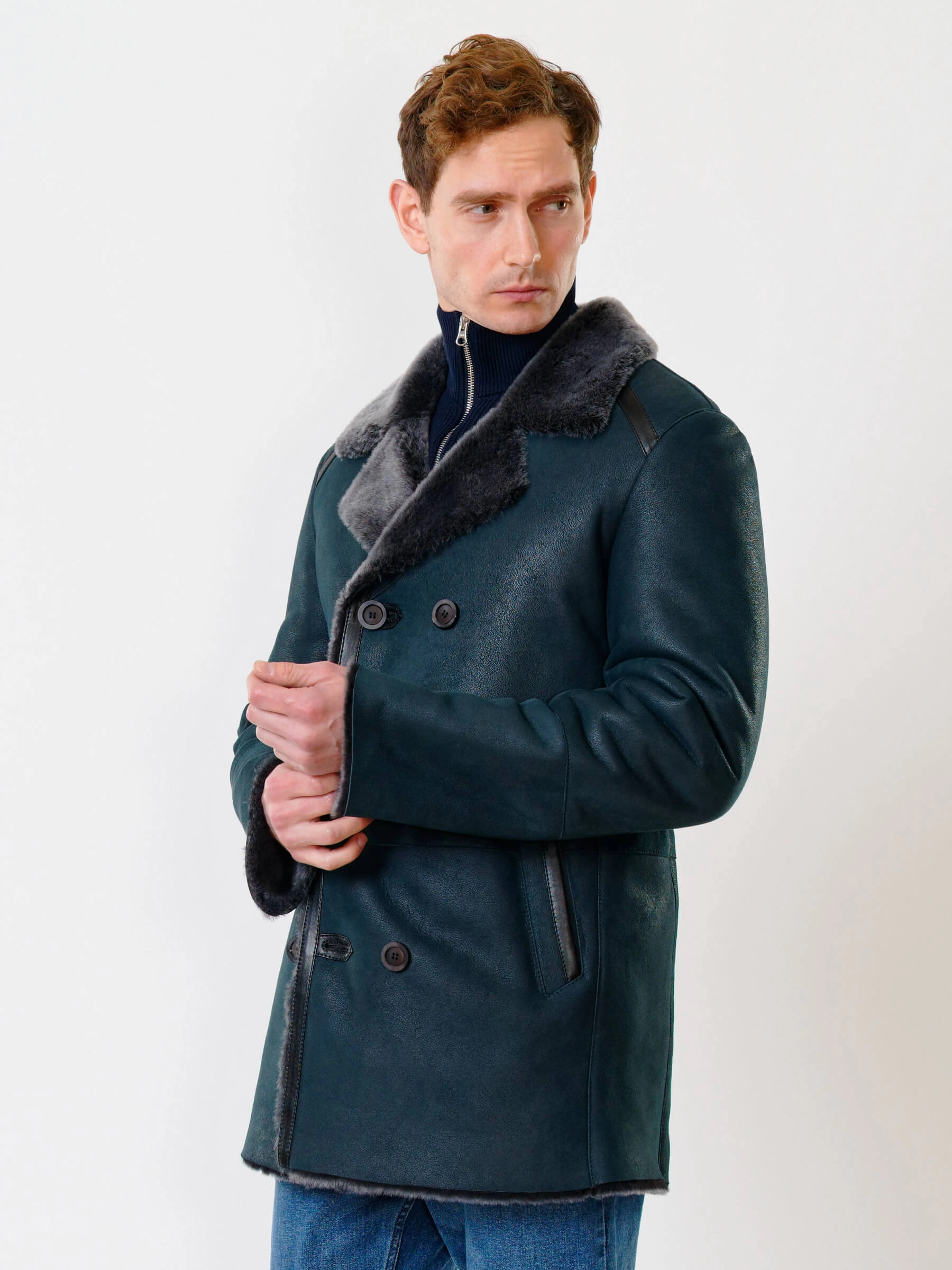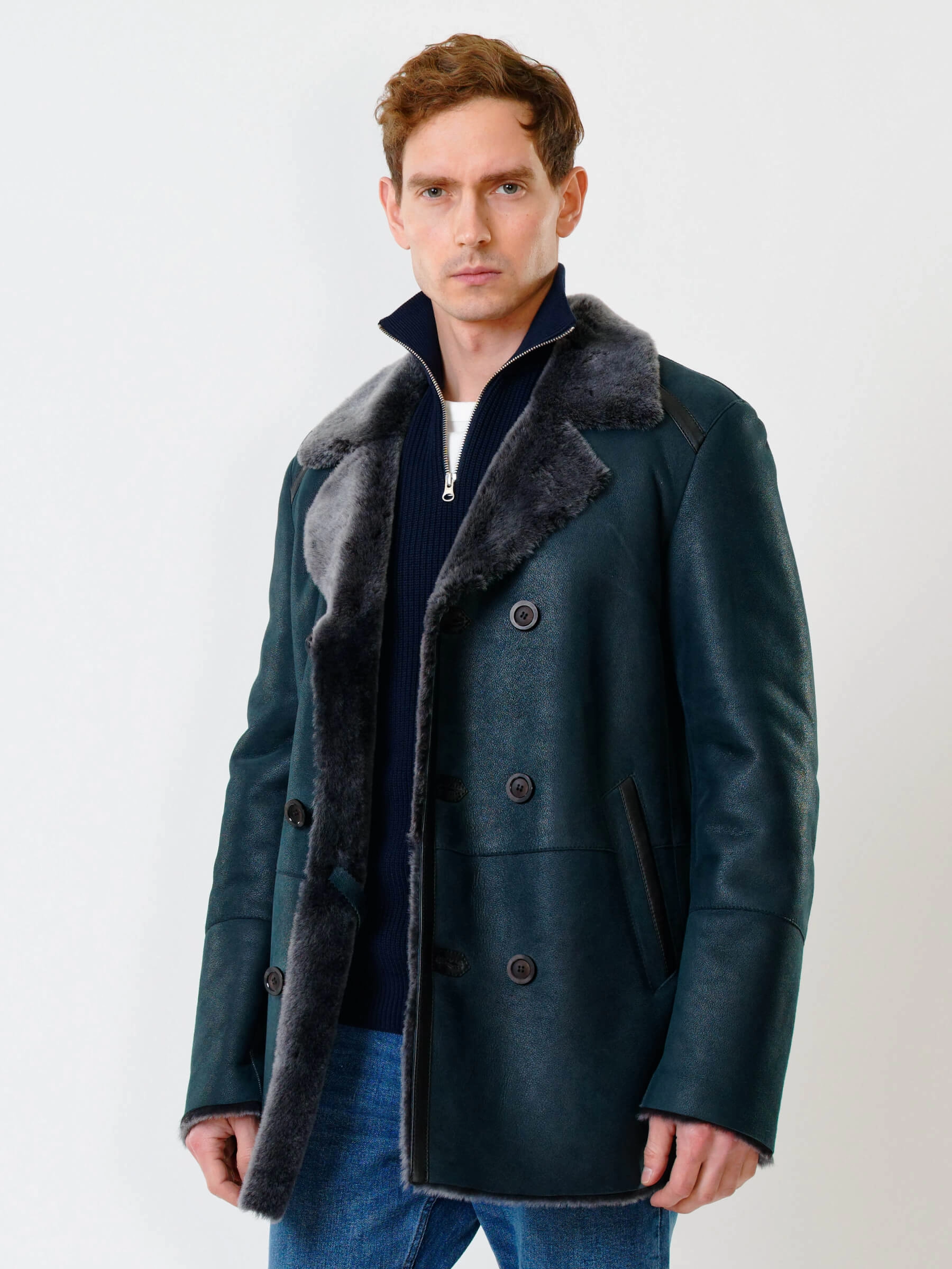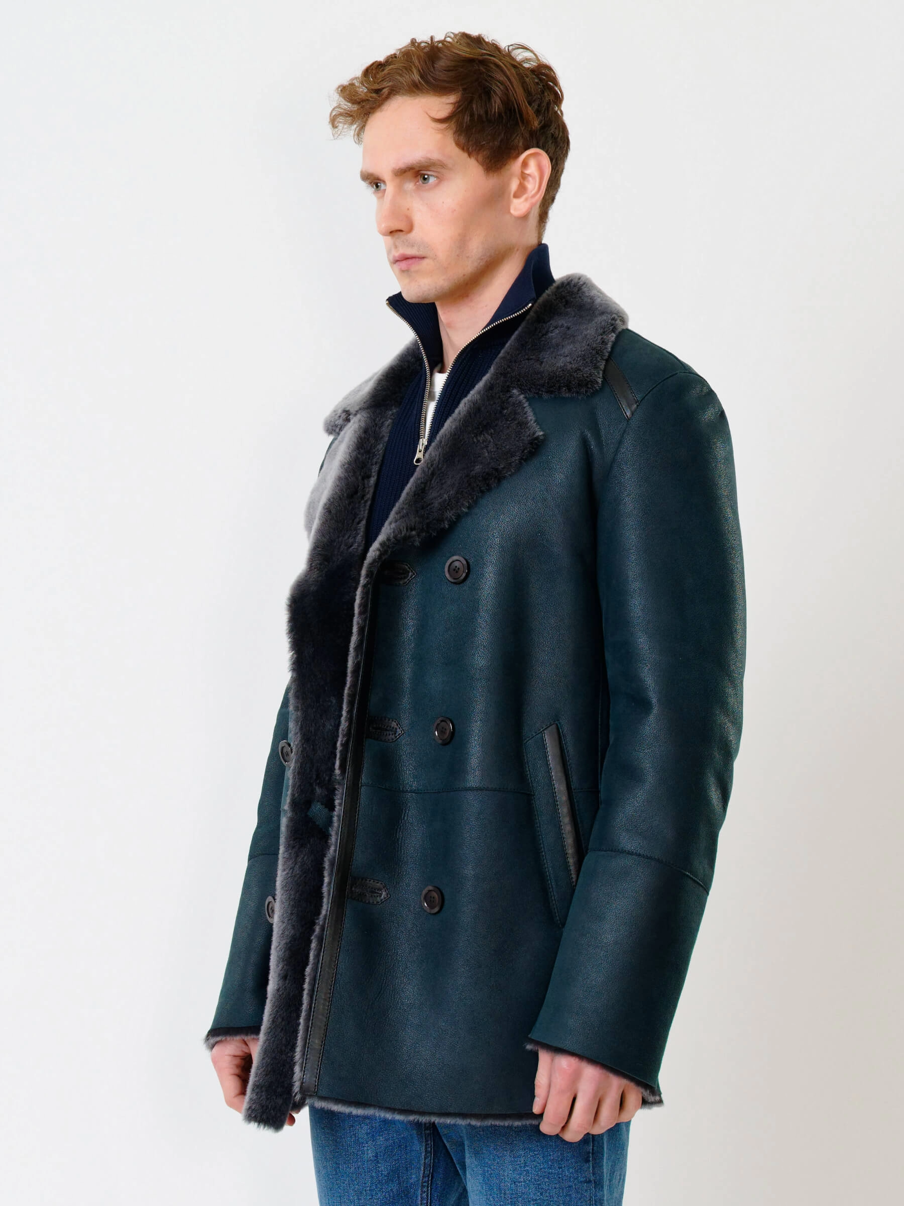 Дубленка двубортная классическая мужская 422, синяя, размер 60, артикул 70301