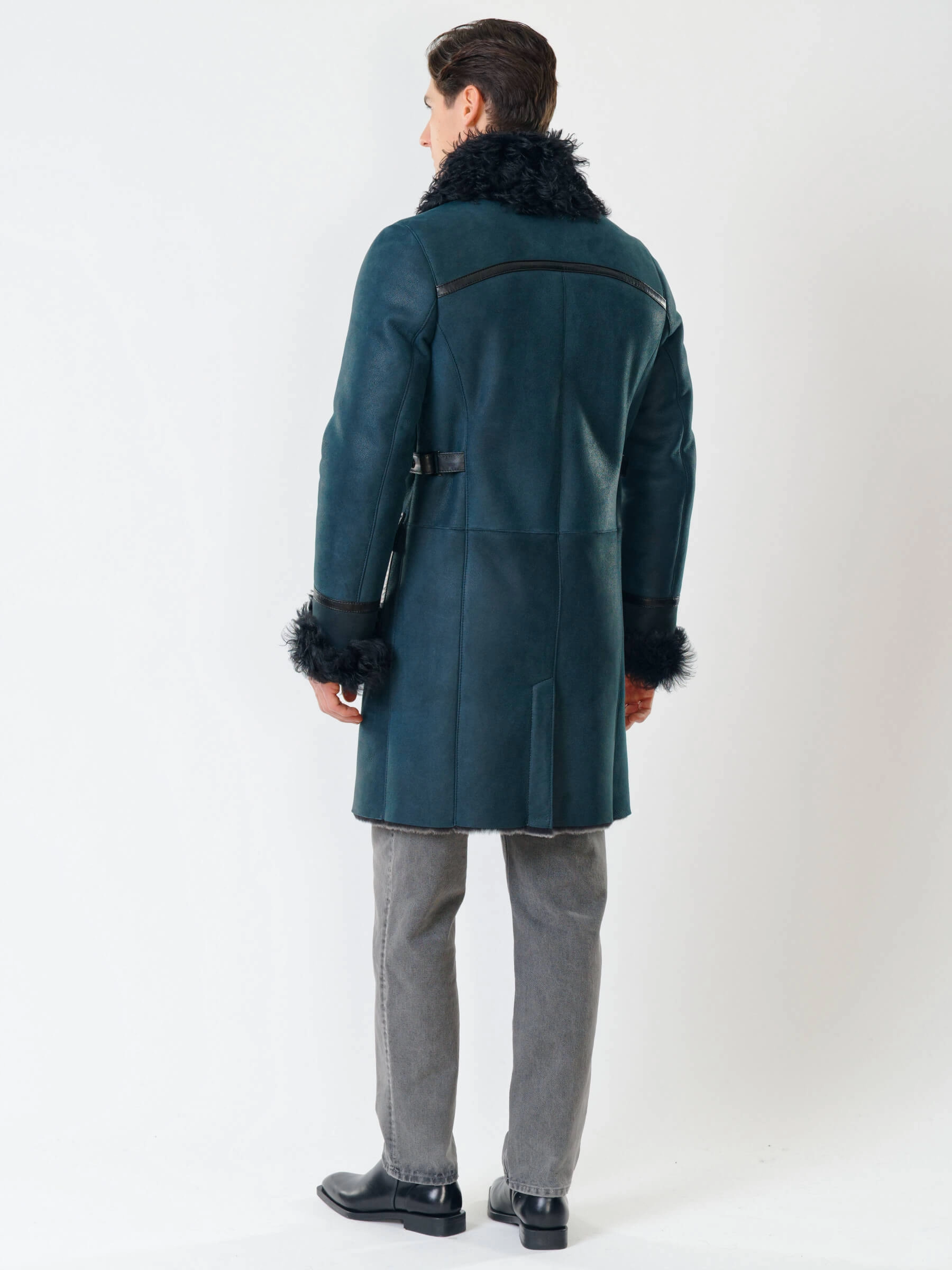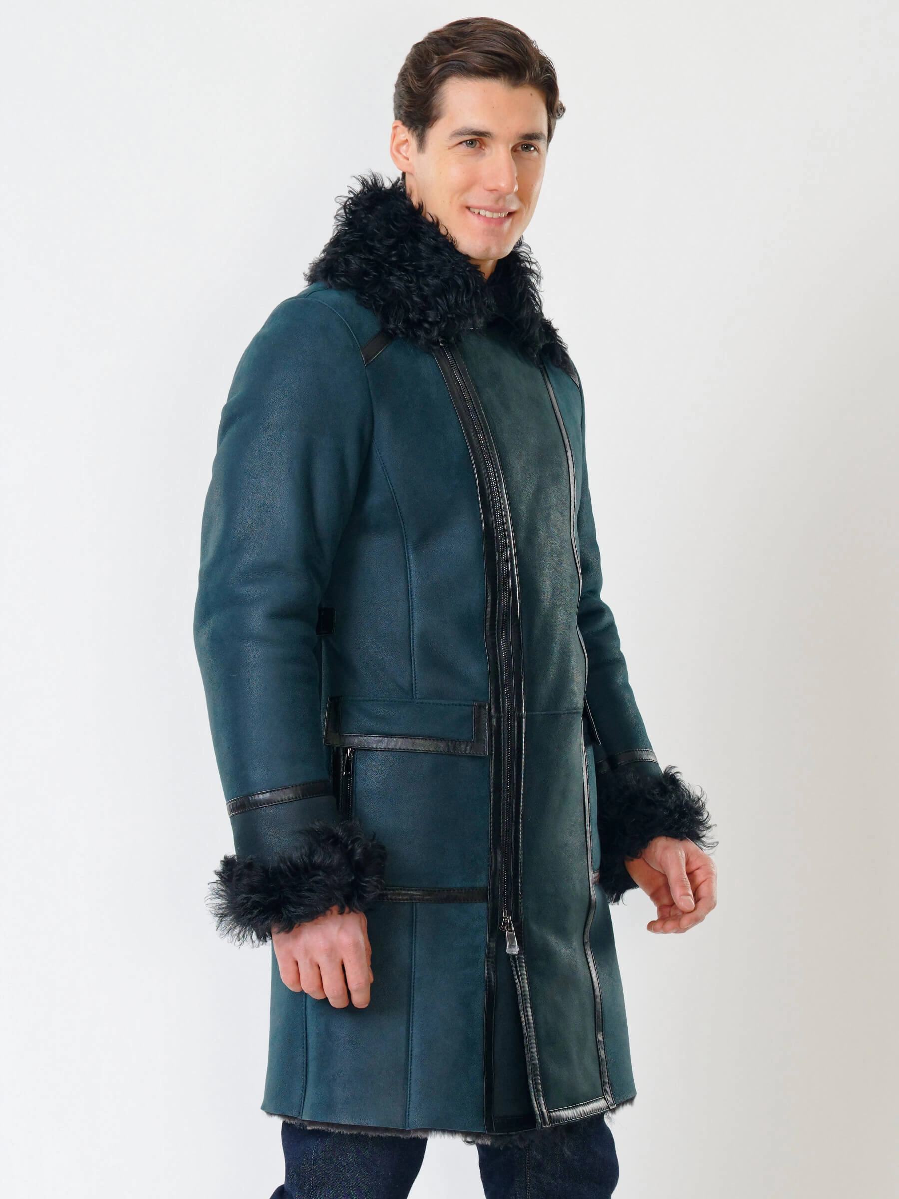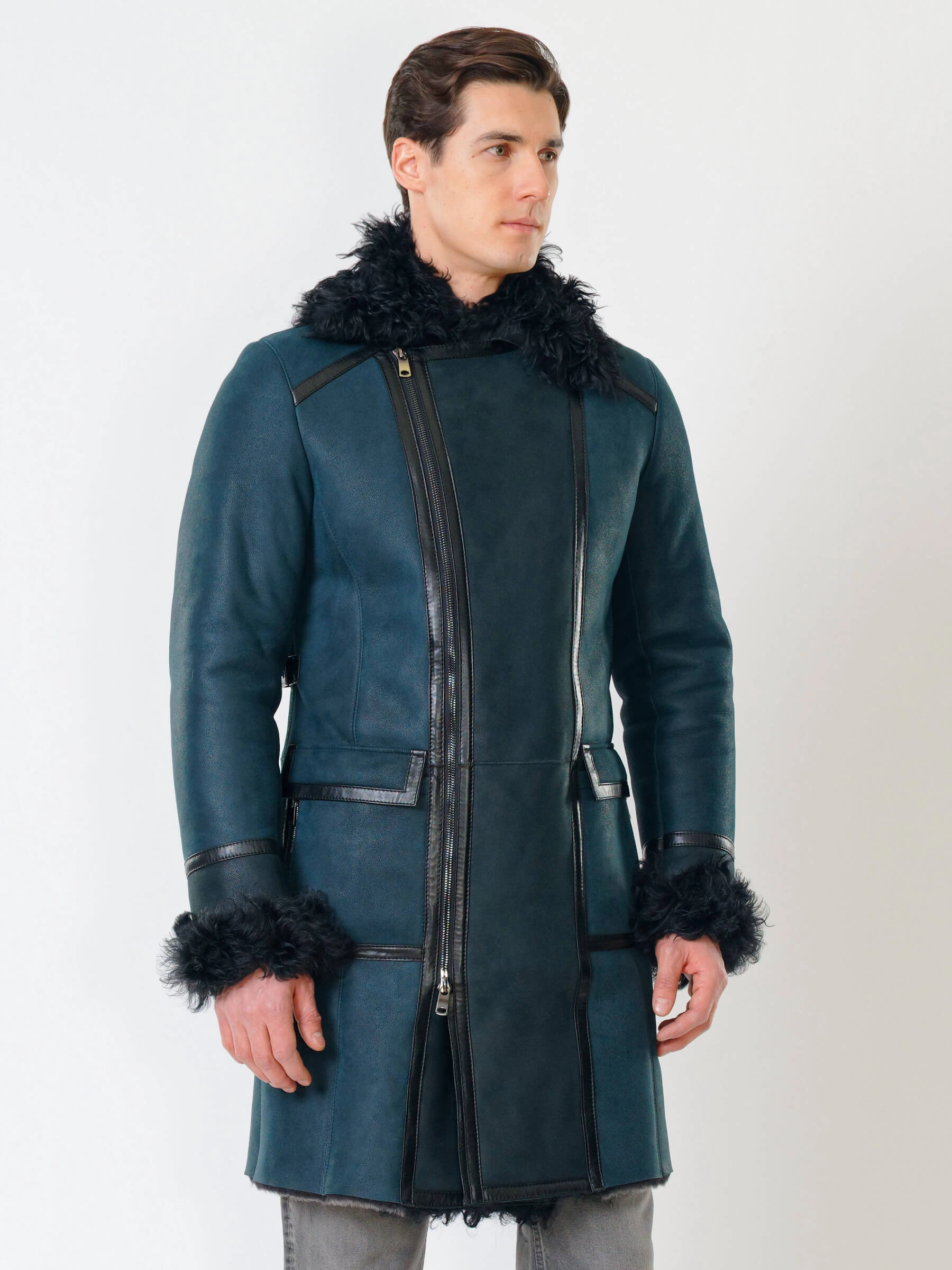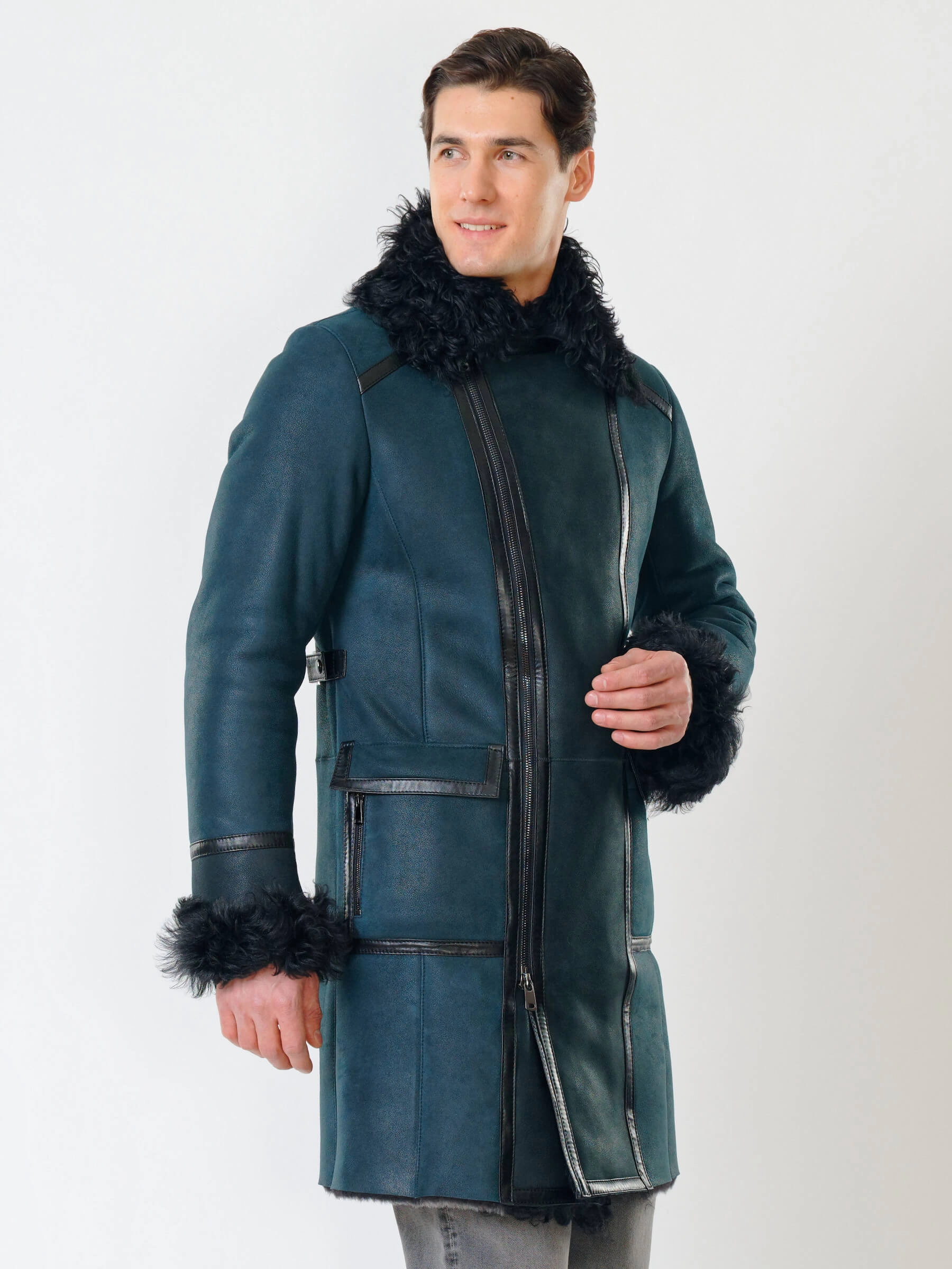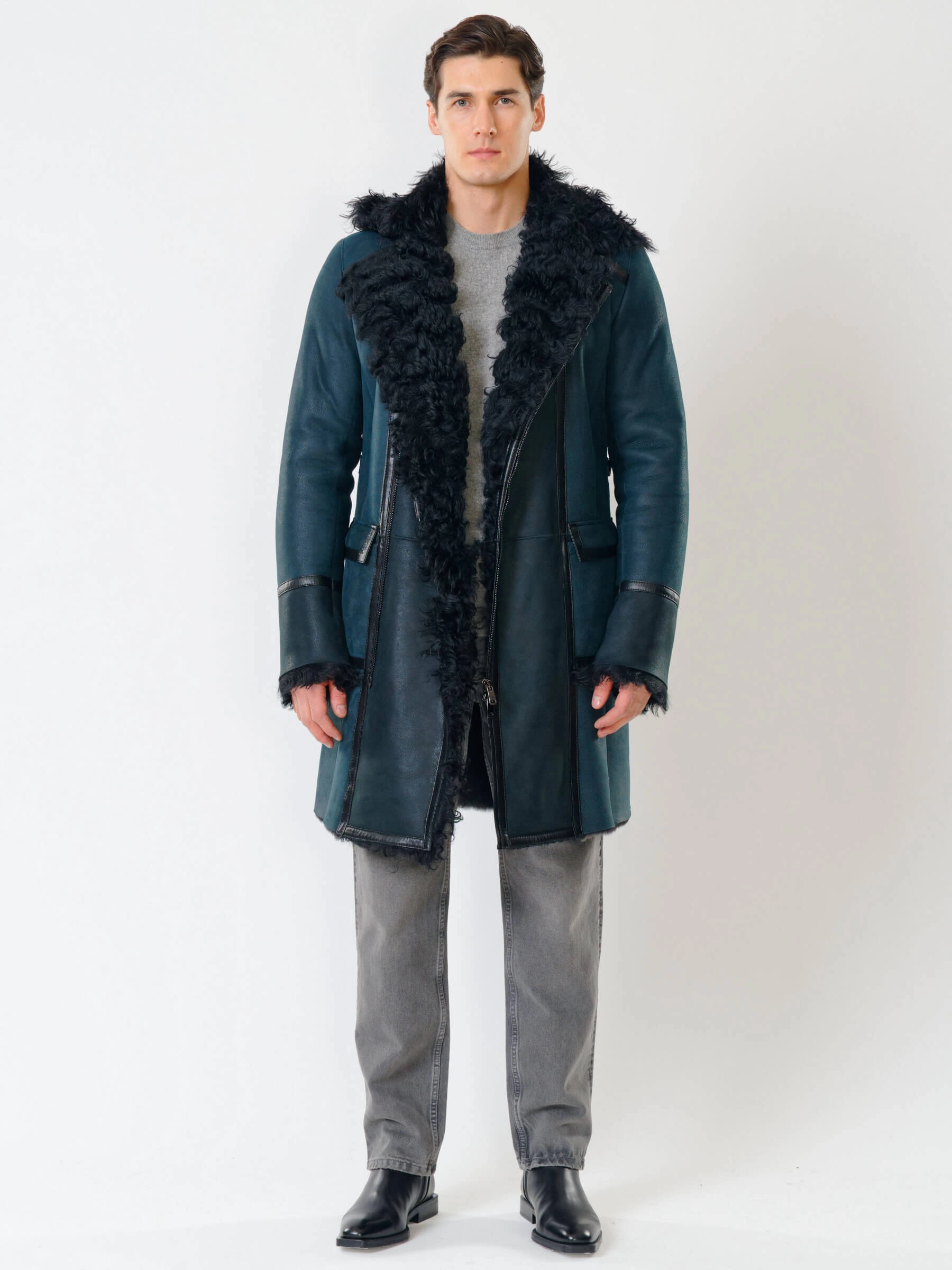 Товар длинная мужская дубленка с мехом тиградо премиум класса 424, синяя, размер 52, артикул 70511 выполнен из овчина "мерино" с застежкой молния. Рассчитан на сезон: осень-зима. Длина изделия 107 см, силуэт полуприлегающий.
