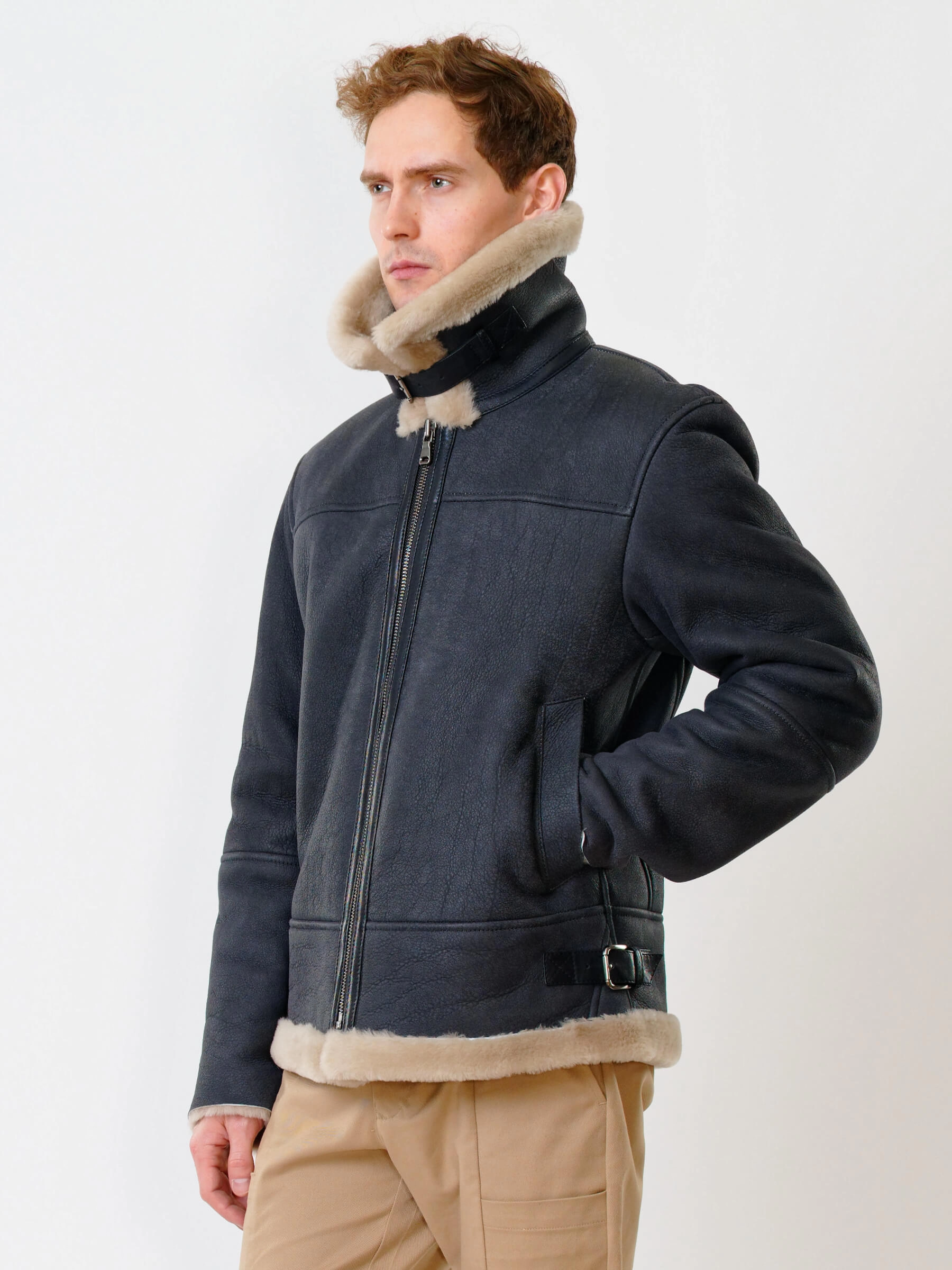 Дублёнка-авиатор. Специальная технология стирки овчины придает поверхности дублёнки повышенную износостойкость. Максимально густой мех. Минимальный вес. Предусмотрены внутренние карманы для документов. Безупречная работа наших портных. Комфортная посадка по фигуре. Великолепная свобода движений.