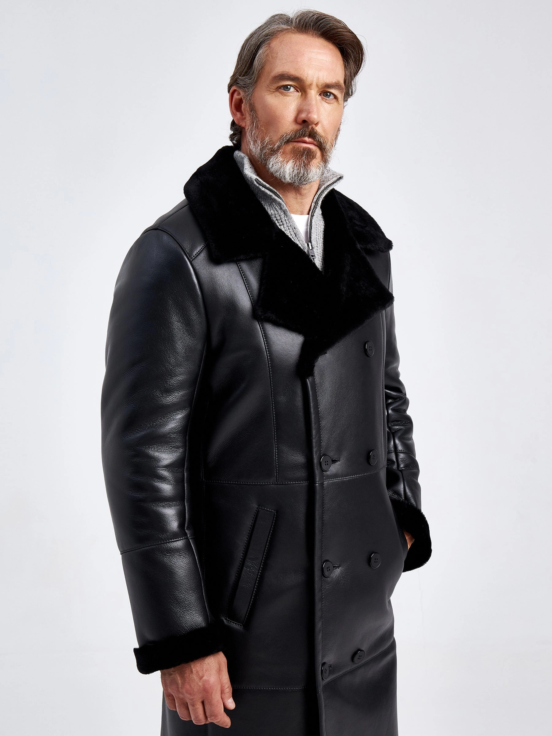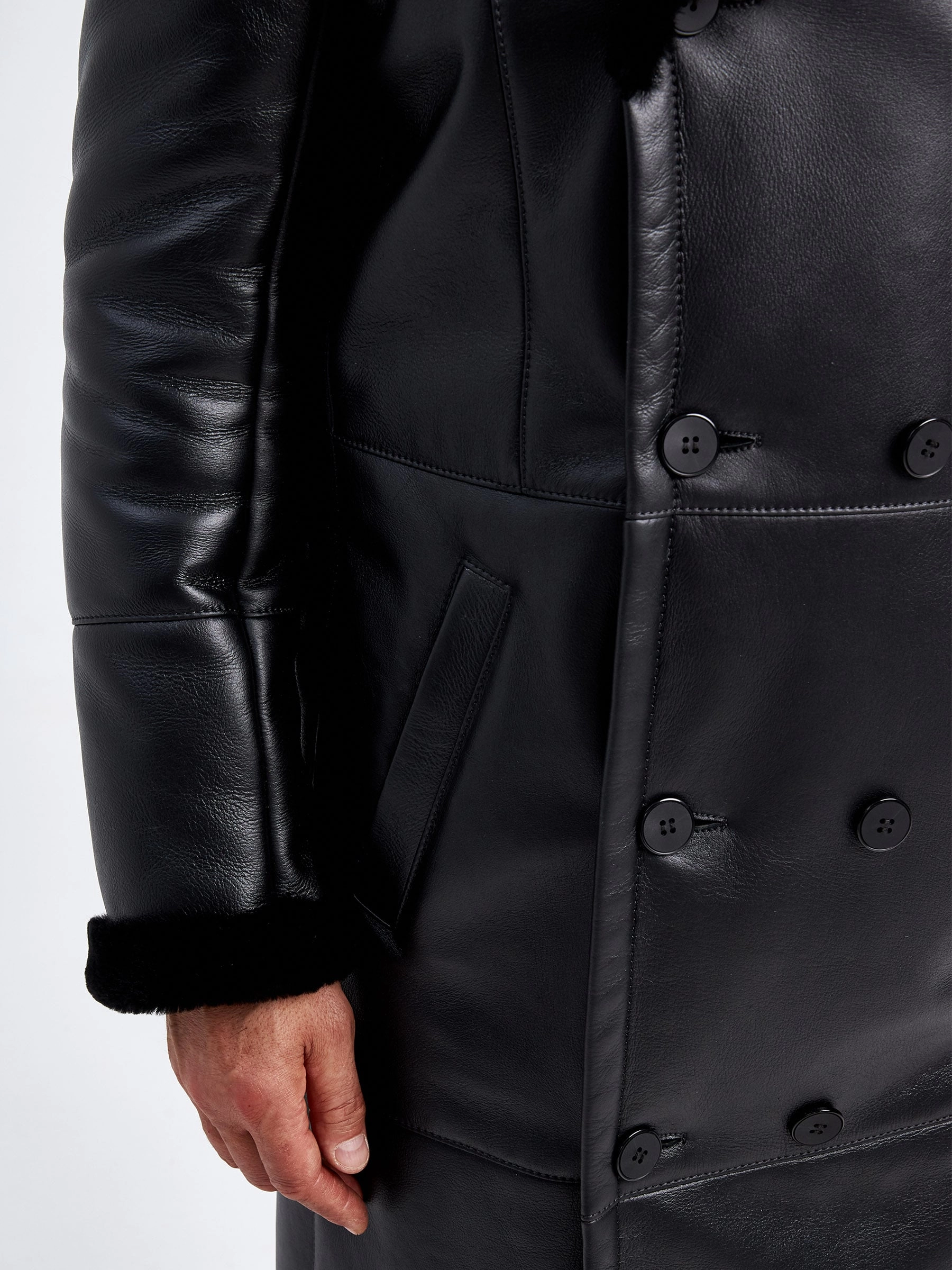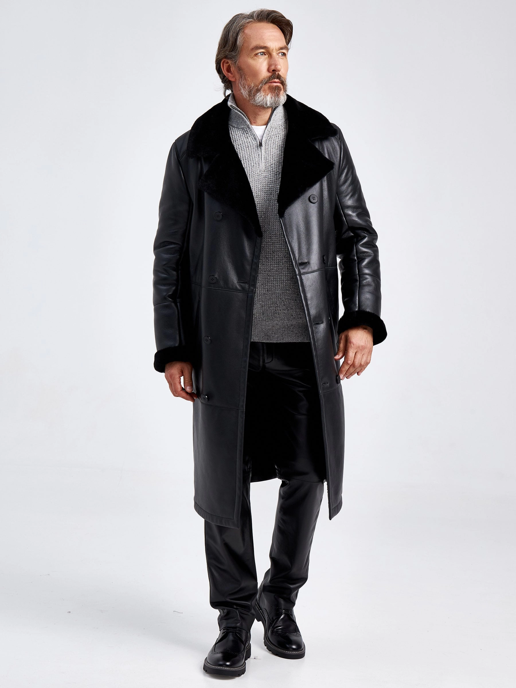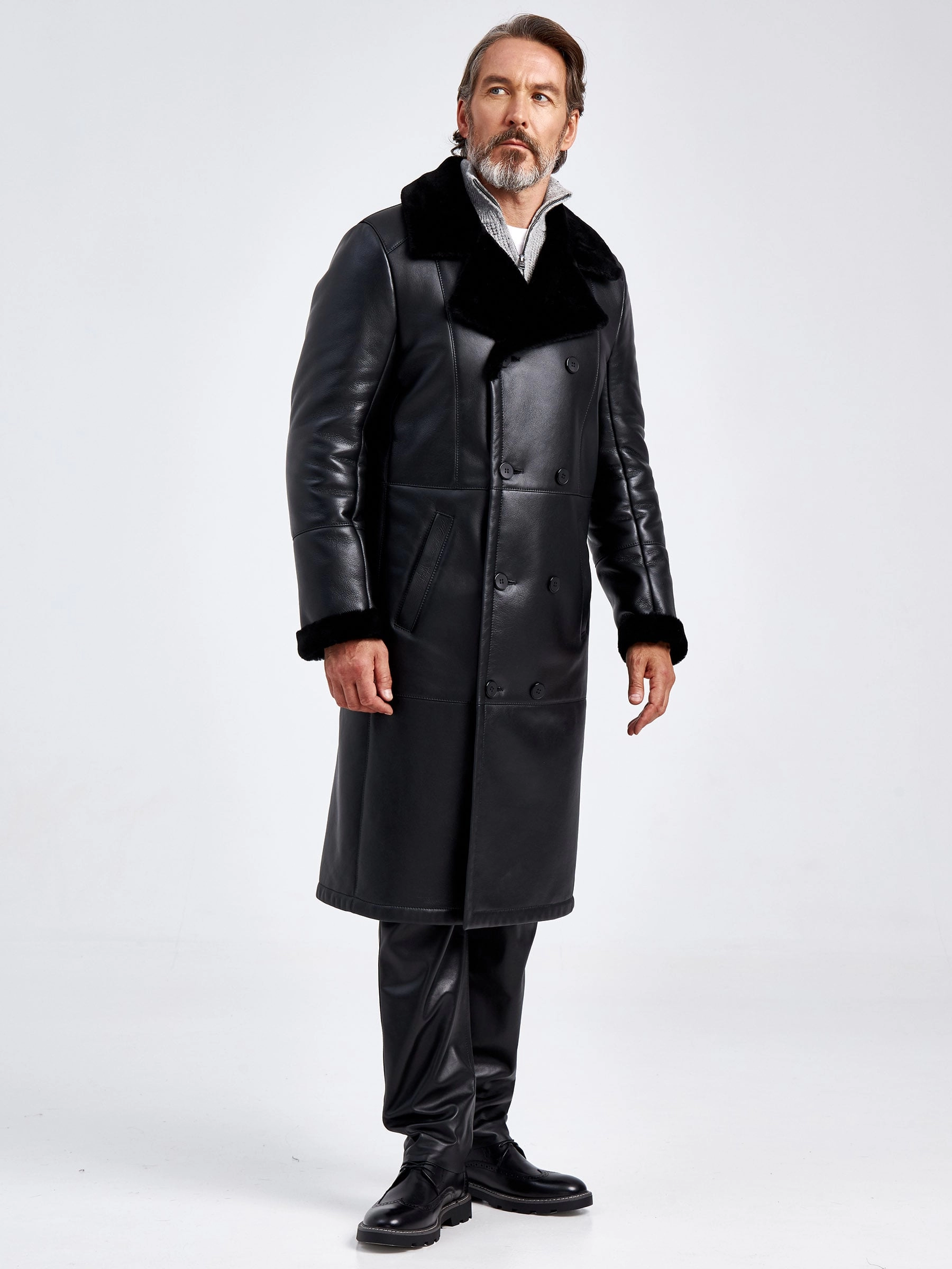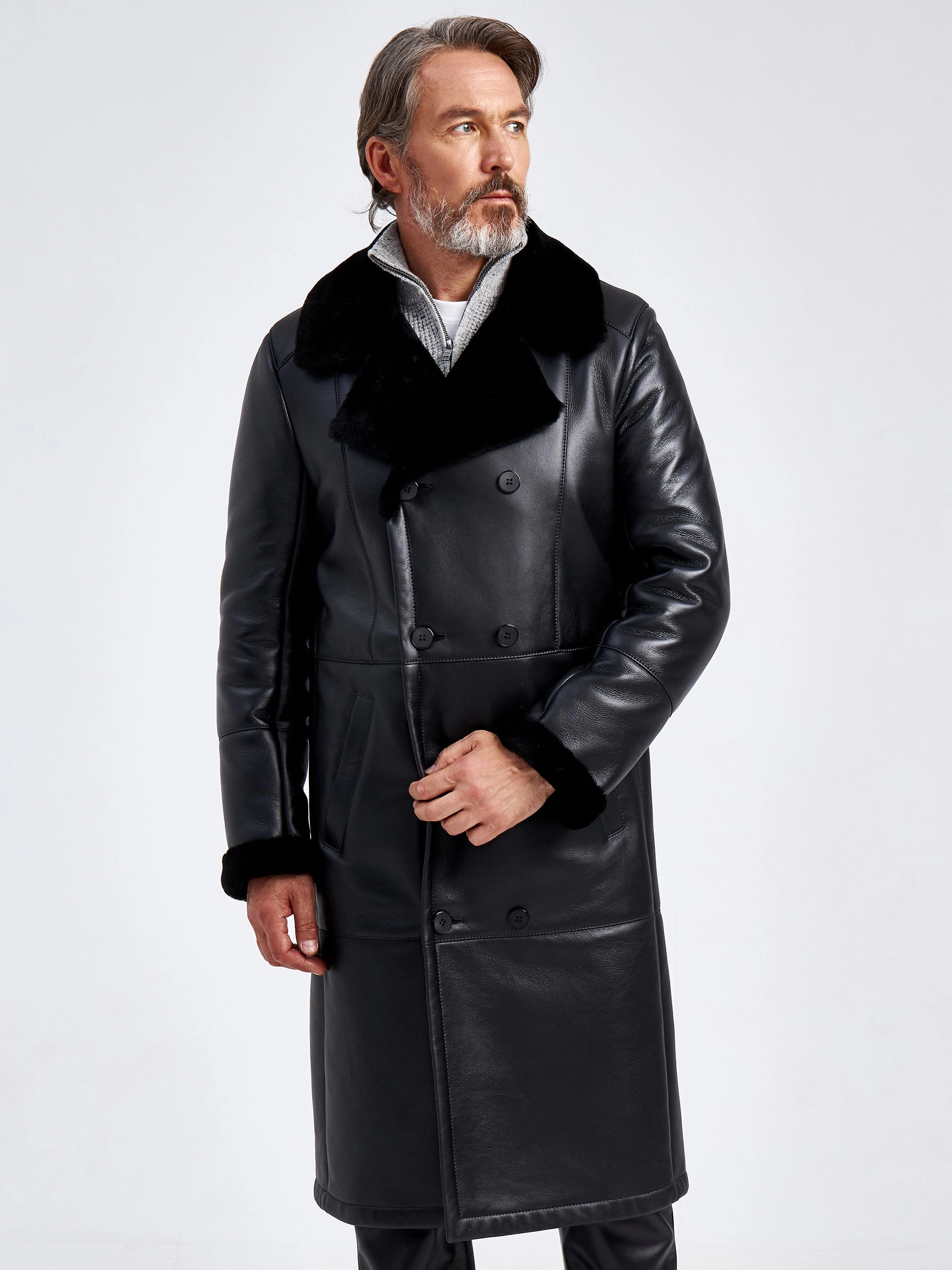 Премиальное качество двубортной мужской дубленки. Идеальное сочетание как с классическим деловым костюмом, кожаными джинсами, так и с повседневными брюками. Изделие сшито из овчины мериносной породы с максимально густым шелковистым волосом. Верхняя застёжка закрывает горловину. Рельефы полочек создают эффект приталенности. Предусмотрен внутренний карман для документов. Сзади выполнена шлица. Идеальные швы, продуманные и удобные элементы. Удобная посадка по фигуре. Абсолютный комфорт.