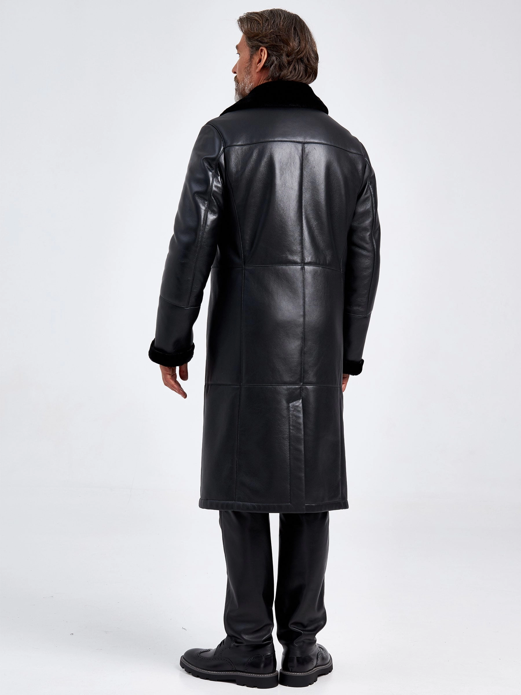 Длинная двубортная мужская дубленка премиум класса 432, черная, размер 50, артикул 70630