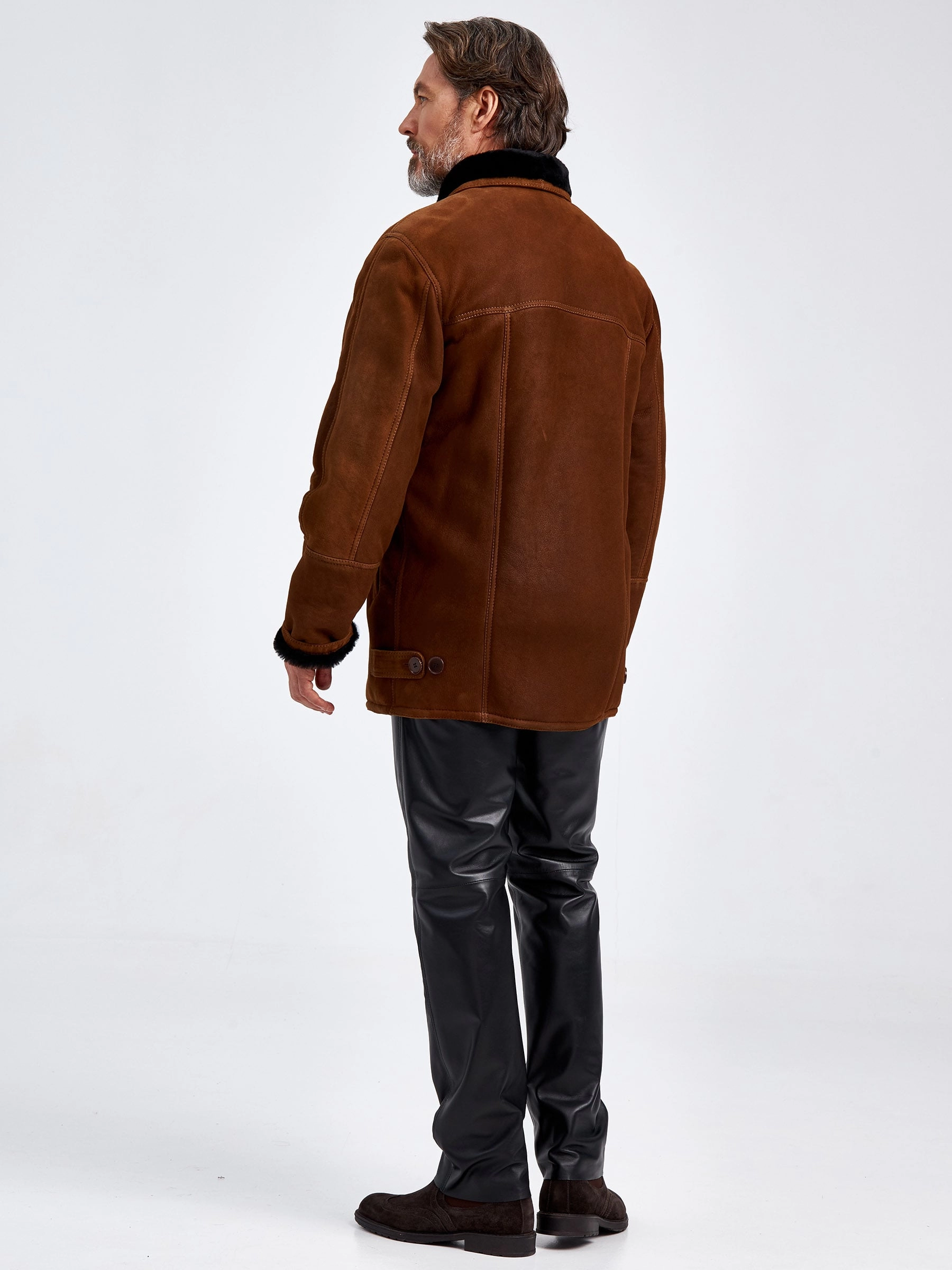 Дубленка замшевая мужская 86152, коричневая, размер 46, артикул 70780