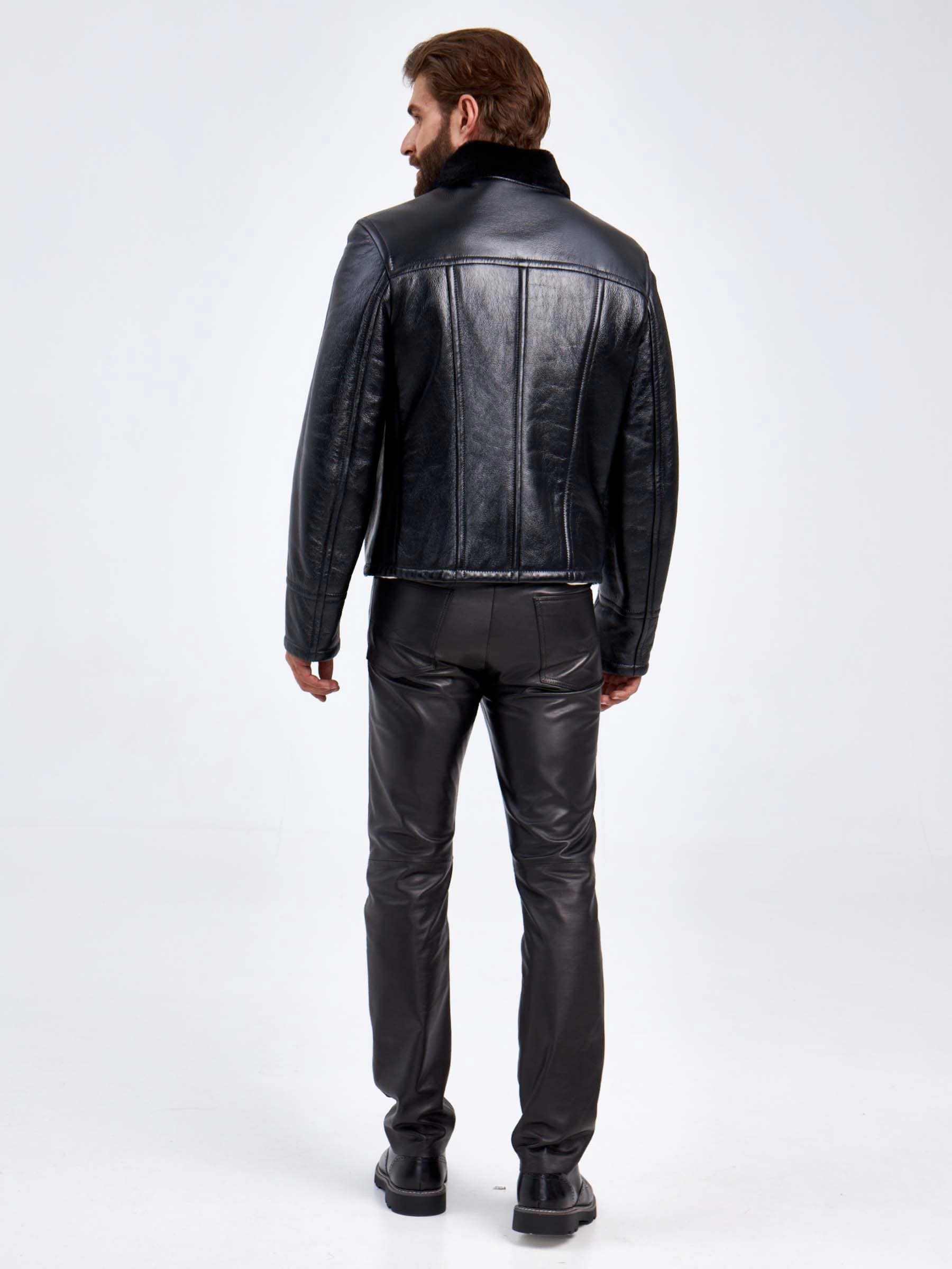 Товар двубортная мужская дубленка габер, черная, размер 50, артикул 70850 выполнен из овчина "мерино" с застежкой пуговицы. Рассчитан на сезон: осень-зима. Длина изделия 51-74 см, силуэт полуприлегающий.