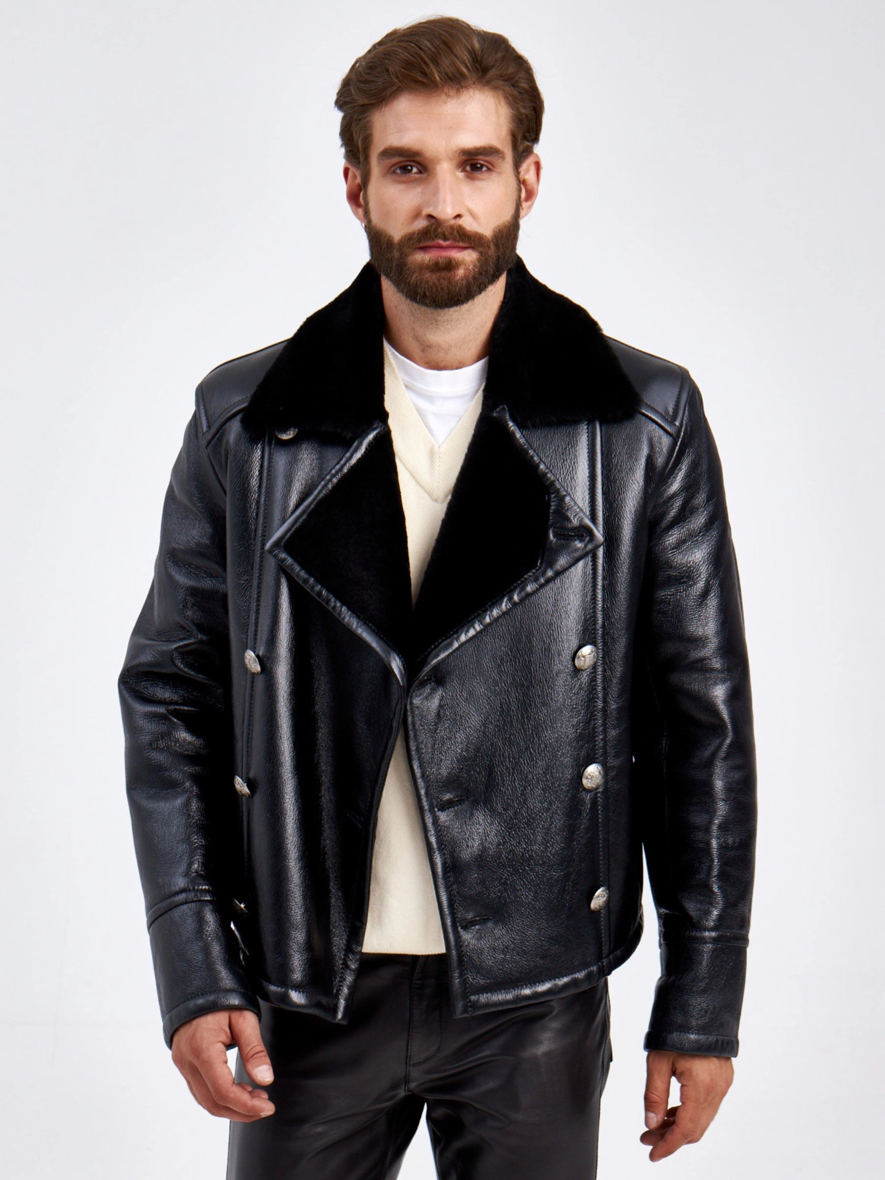 Двубортная мужская дубленка Габер, черная, размер 50, артикул 70850