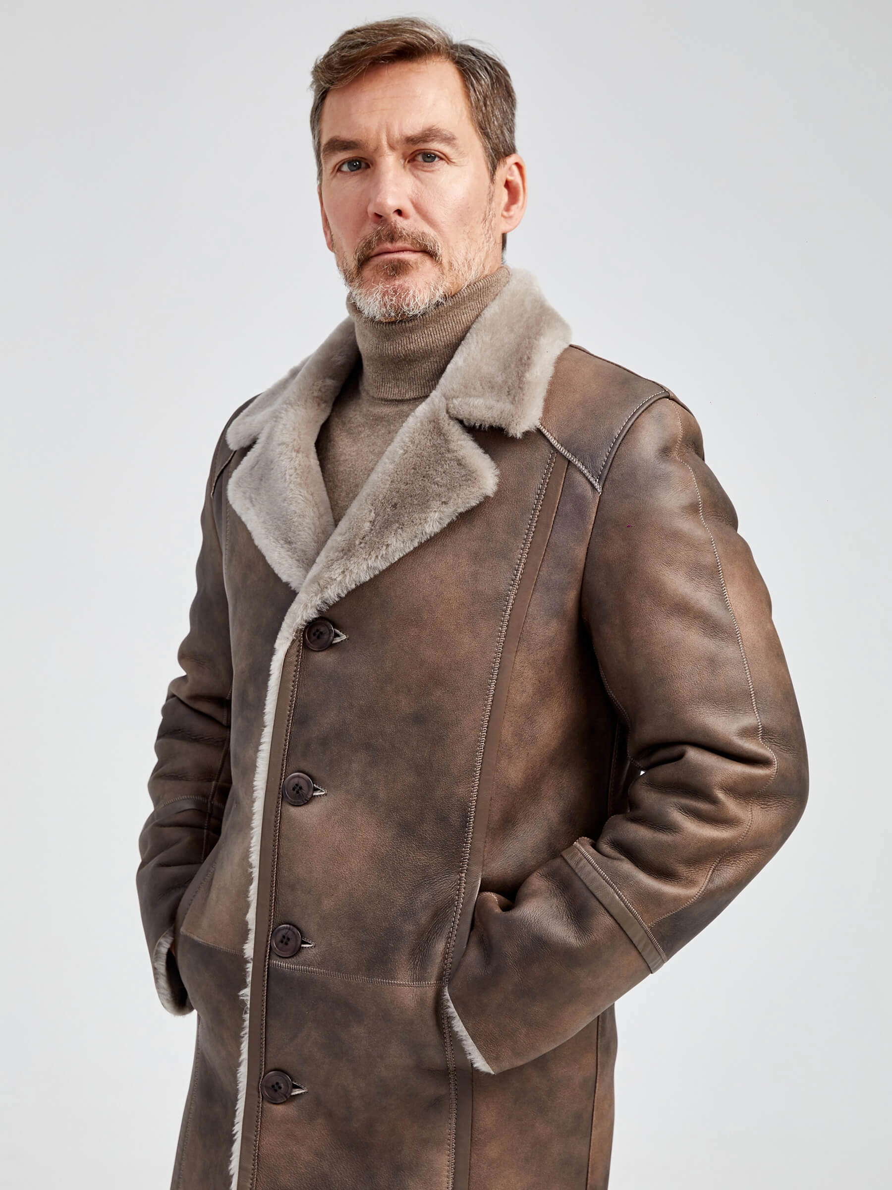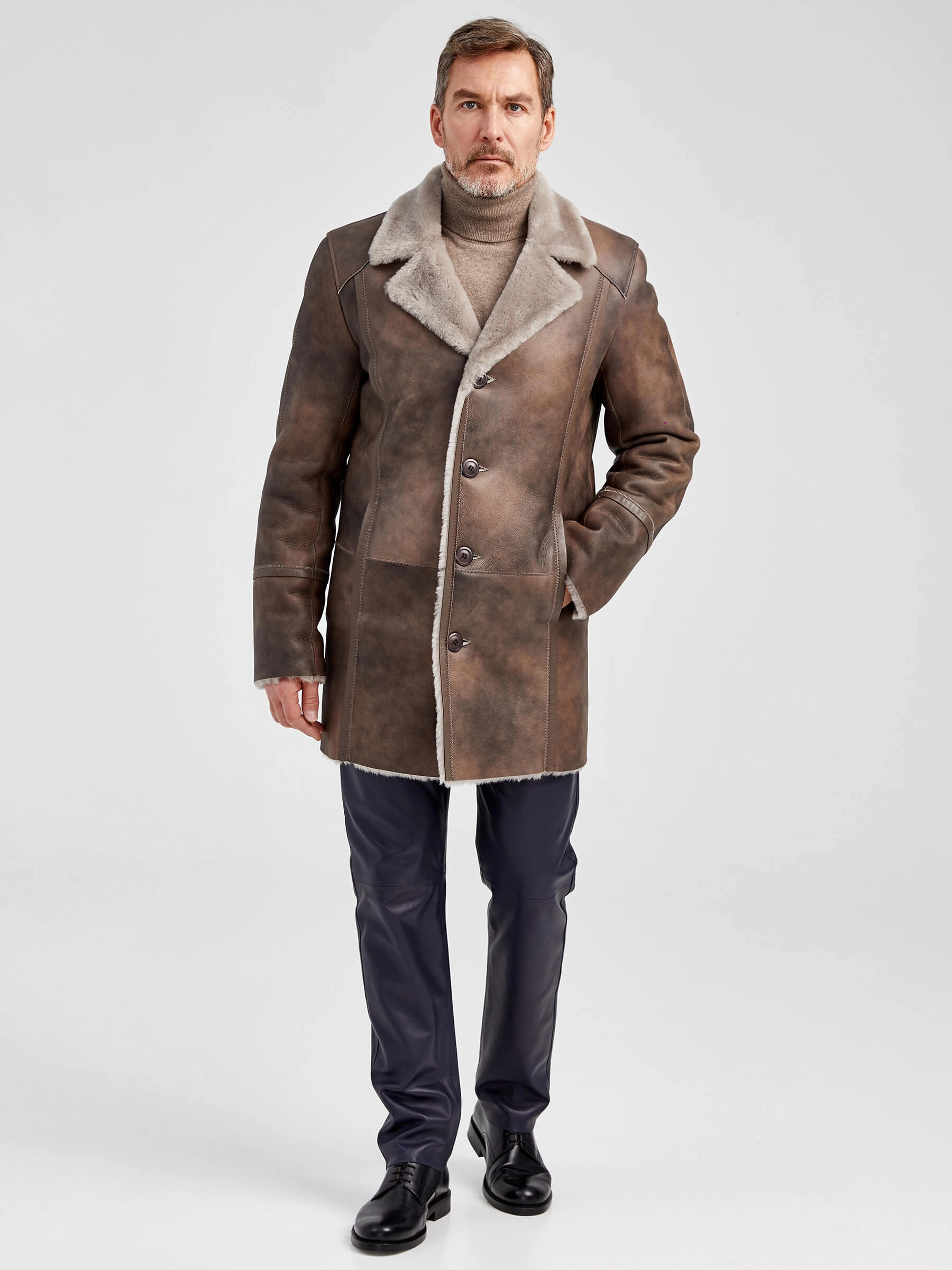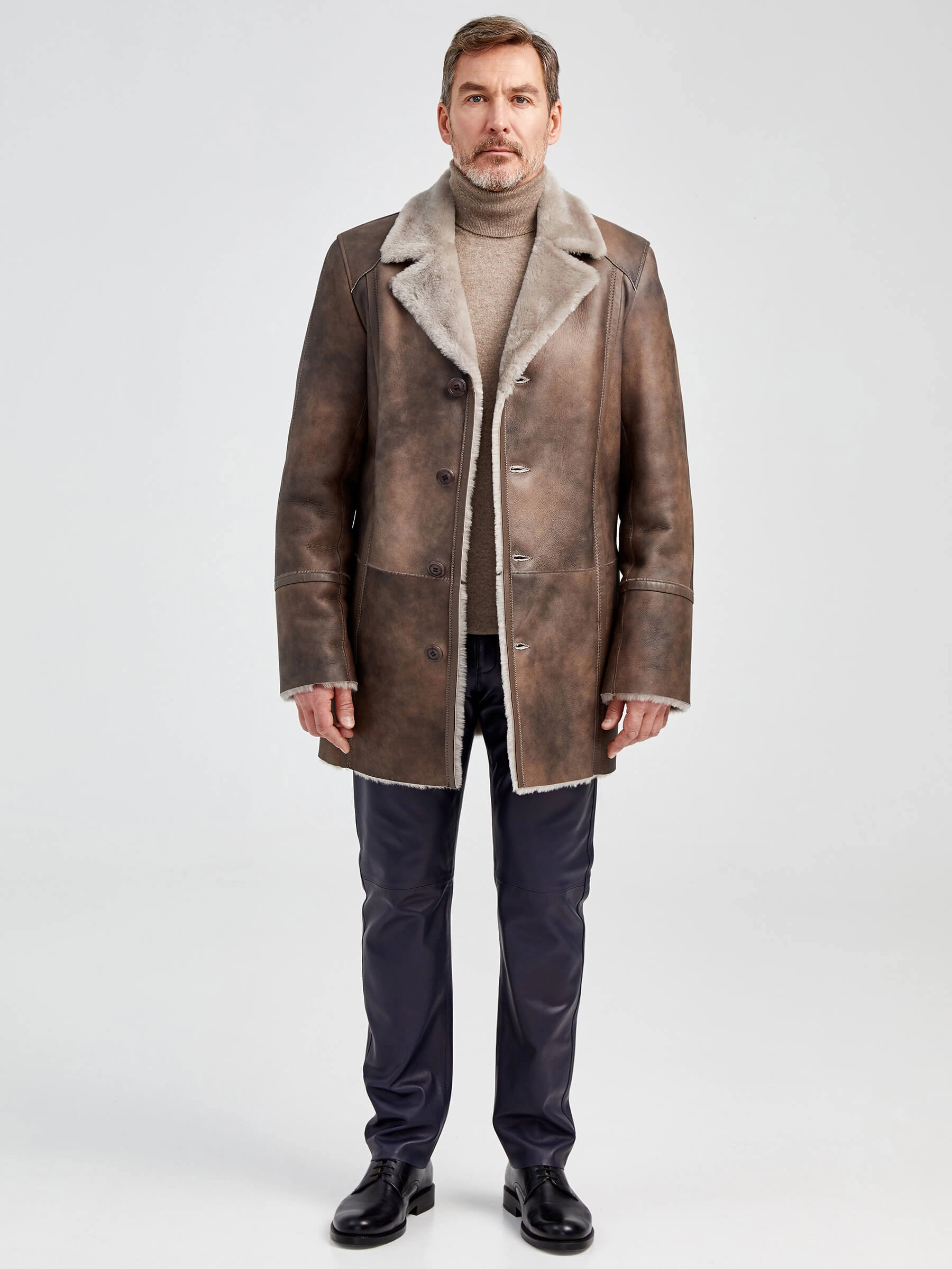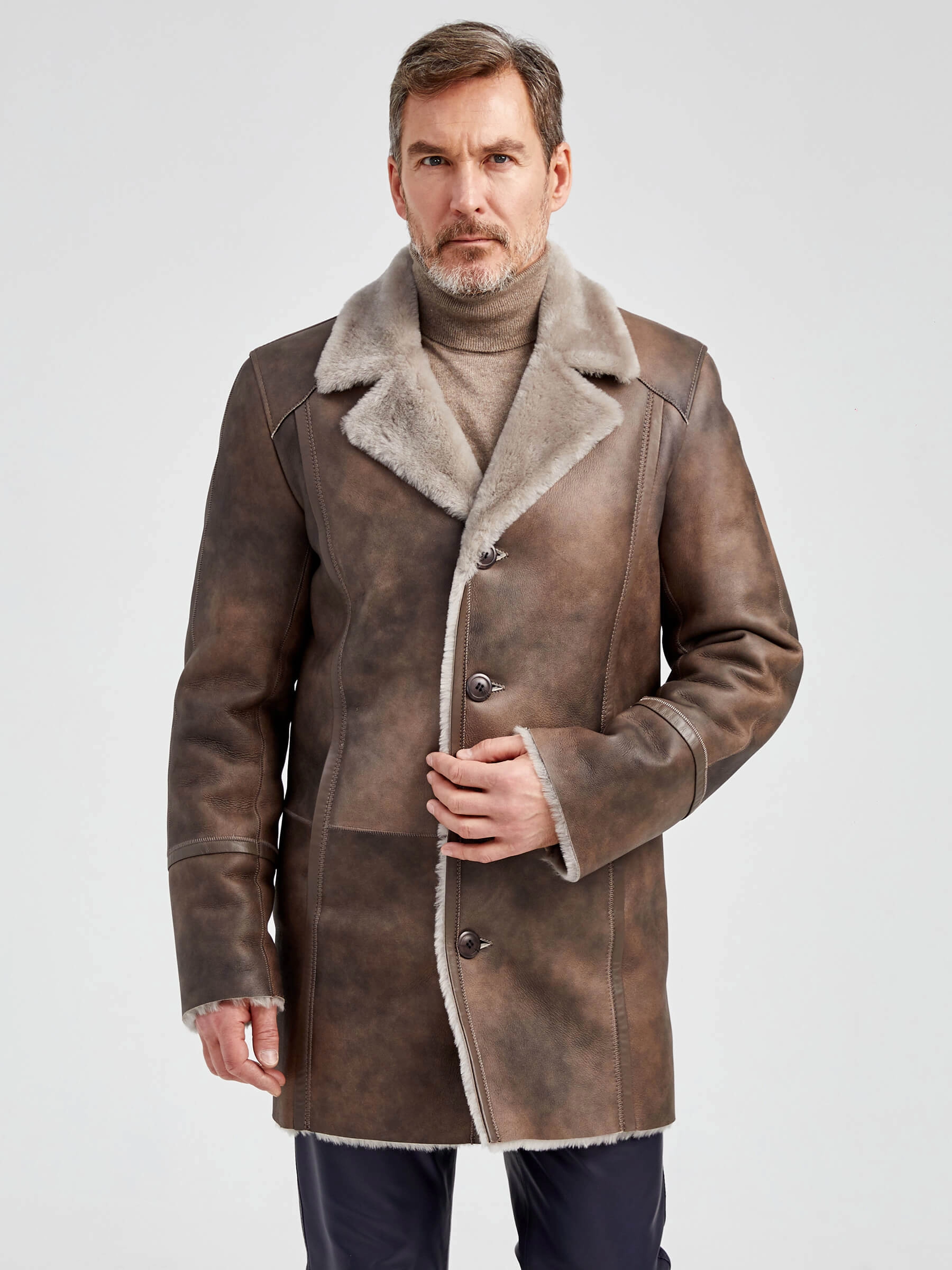 Товар дубленка классическая мужская леон, серо-коричневая, размер 46, артикул 70811 выполнен из овчина "мерино" с застежкой пуговицы. Рассчитан на сезон: осень-зима. Длина изделия 88 см, силуэт прямой.