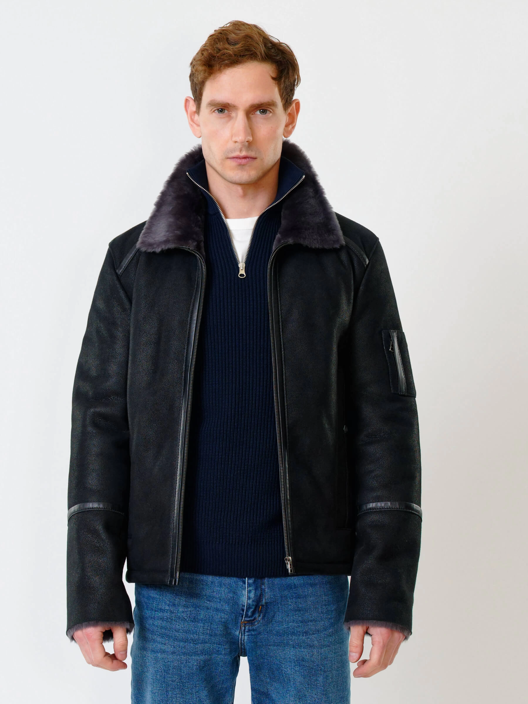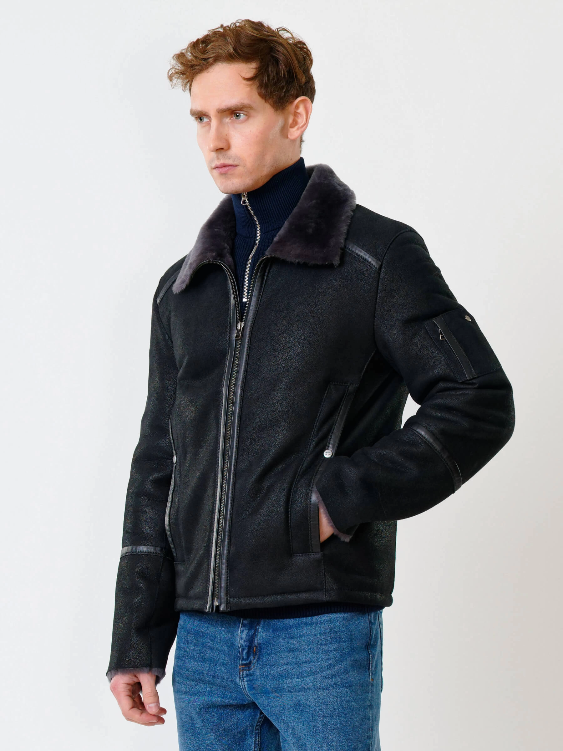 Короткая мужская дубленка Мюнхен, черная, размер 44, артикул 70270