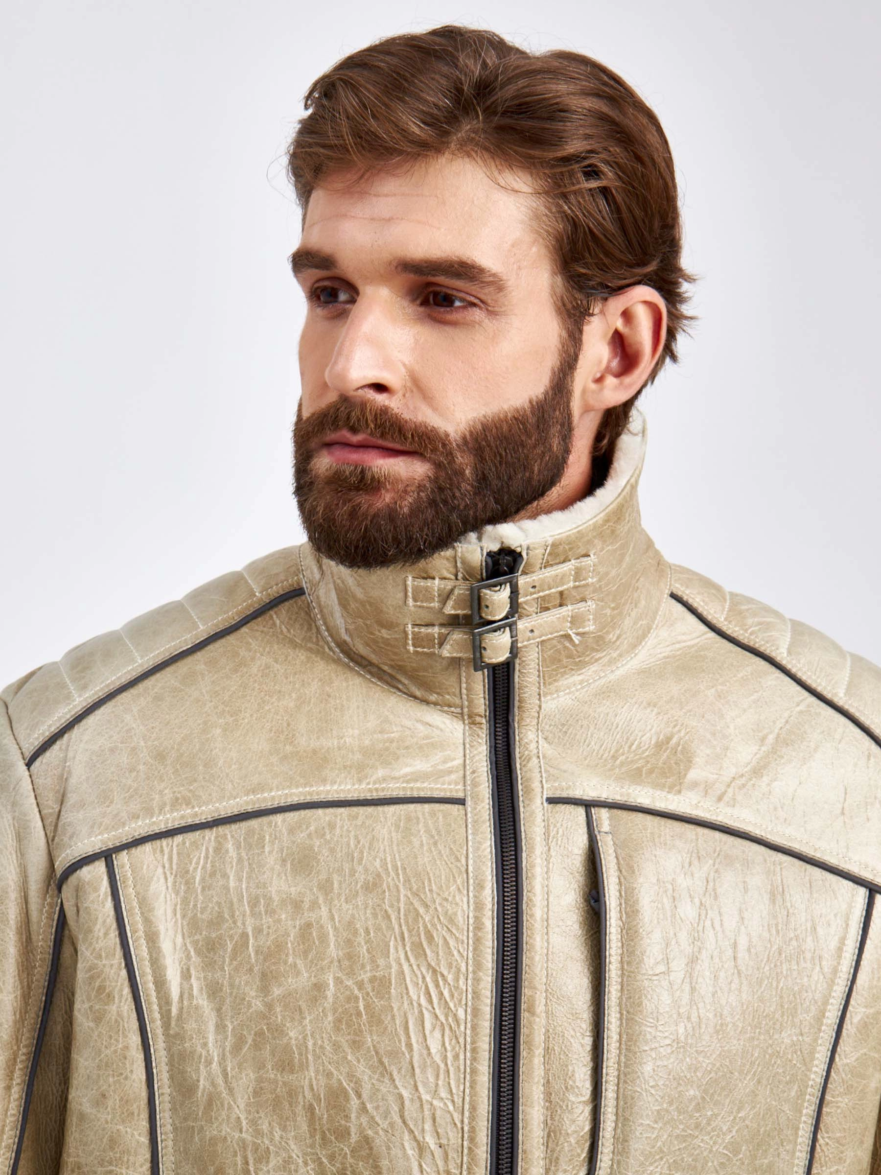Спортивная короткая мужская дубленка СК-2, бежевая, размер 52, артикул 70860