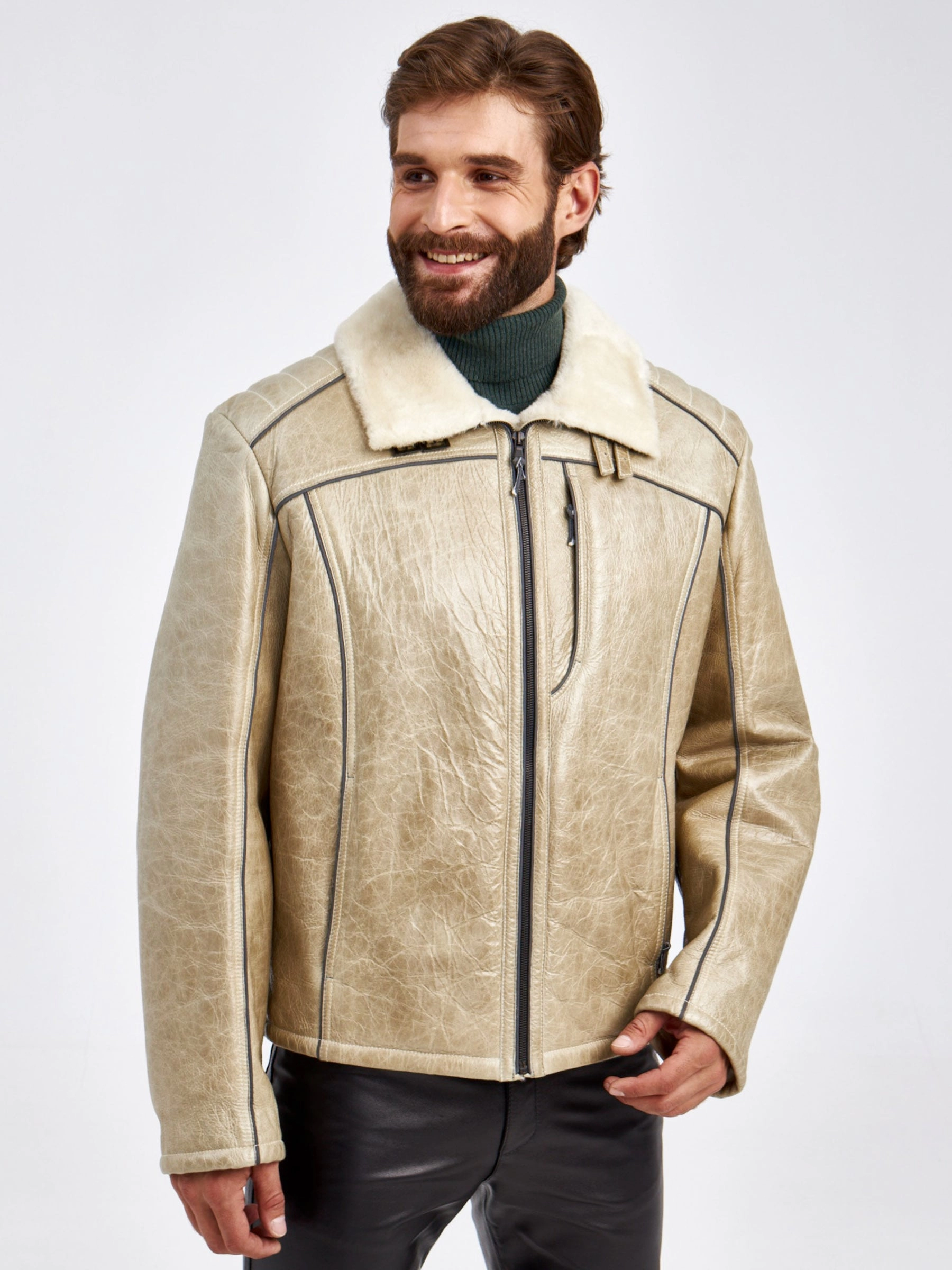 Товар спортивная короткая мужская дубленка ск-2, бежевая, размер 52, артикул 70860 выполнен из овчина "мерино" с застежкой молния. Рассчитан на сезон: осень-зима. Длина изделия 51-74 см, силуэт свободный.