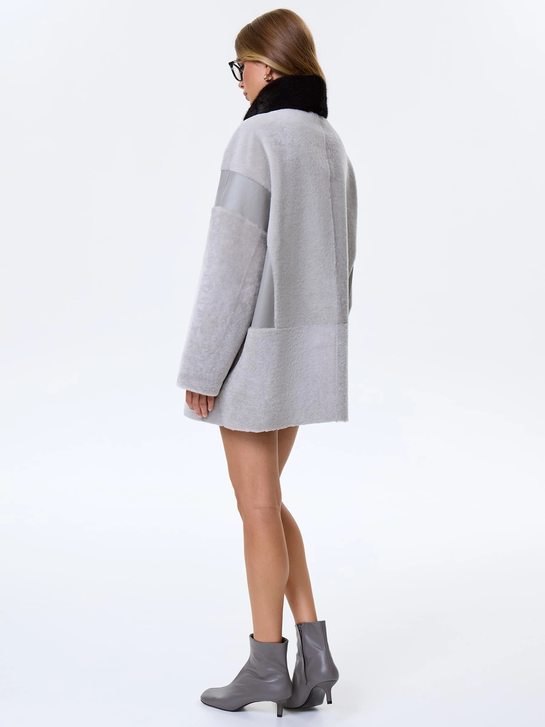 Дубленка на молнии с норковым воротником для женщин премиум класса 2057, серая, размер 44, артикул 64480