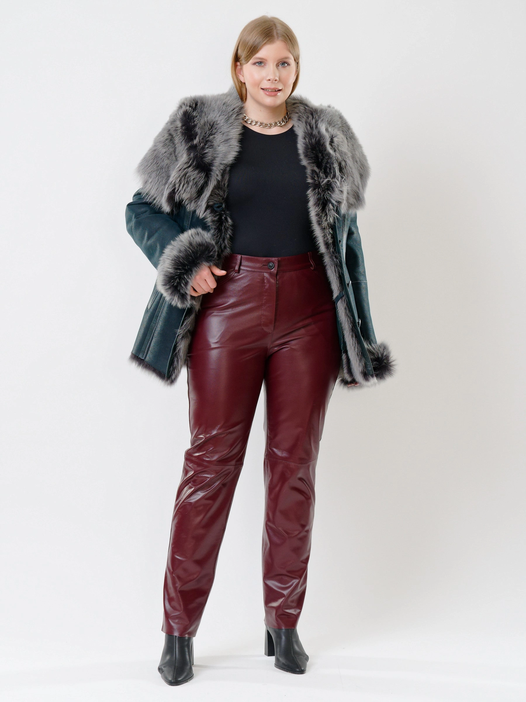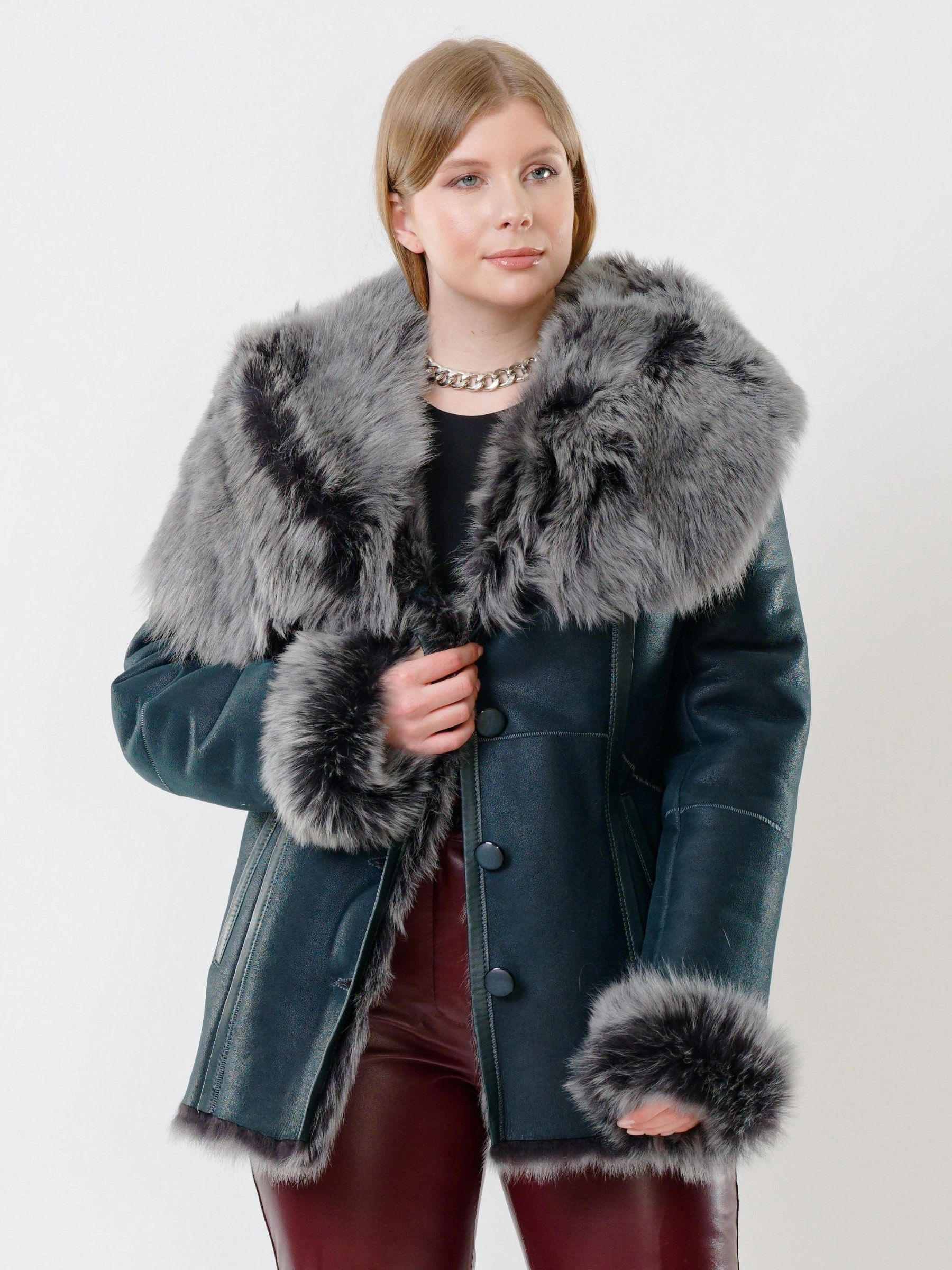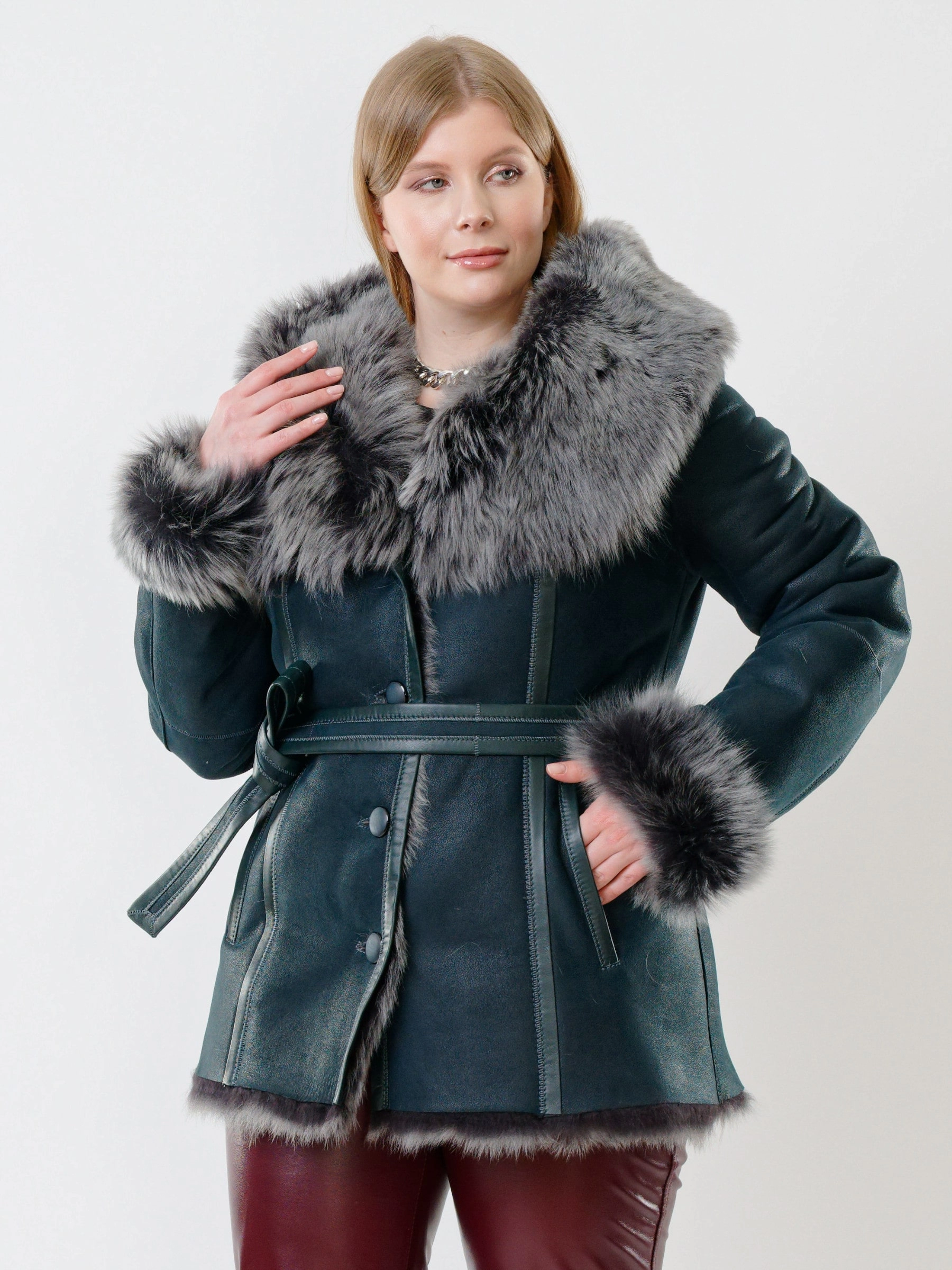 Идеальная полуприлегающая модель премиум-класса: невероятно густой мех тосканской овчины согреет в лютый мороз, а глубокий капюшон-трансформер эффектно завернёт вас в уют или элегантно ляжет шалью на плечи. Защитное покрытие убережёт от царапин, кожаная отделка карманов и борта добавит статусности, а регулируемые манжеты и боковые карманы обеспечат комфорт. Идеальная посадка по фигуре, продуманные швы и длинный пояс подчеркнут силуэт — сочетайте с джинсами, объёмными свитерами или тёмными платьями для дерзкого зимнего образа! Преимущество: короткая длина, полуприлегающий крой - это мобильность для города и элегантность для вечера.