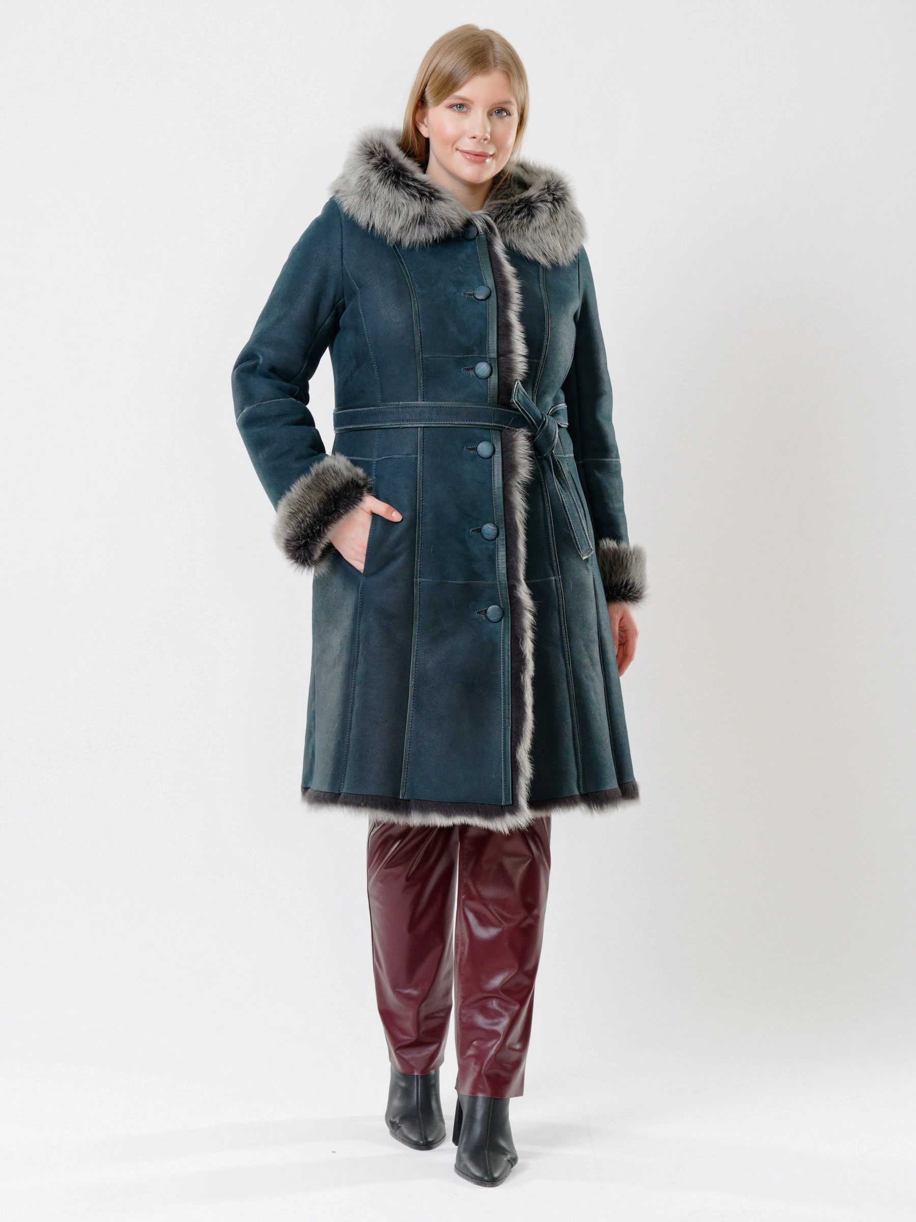 Товар зимний комплект женский: дубленка 123нк + брюки 02, синий/бордовый, р. 42, арт. 111248.