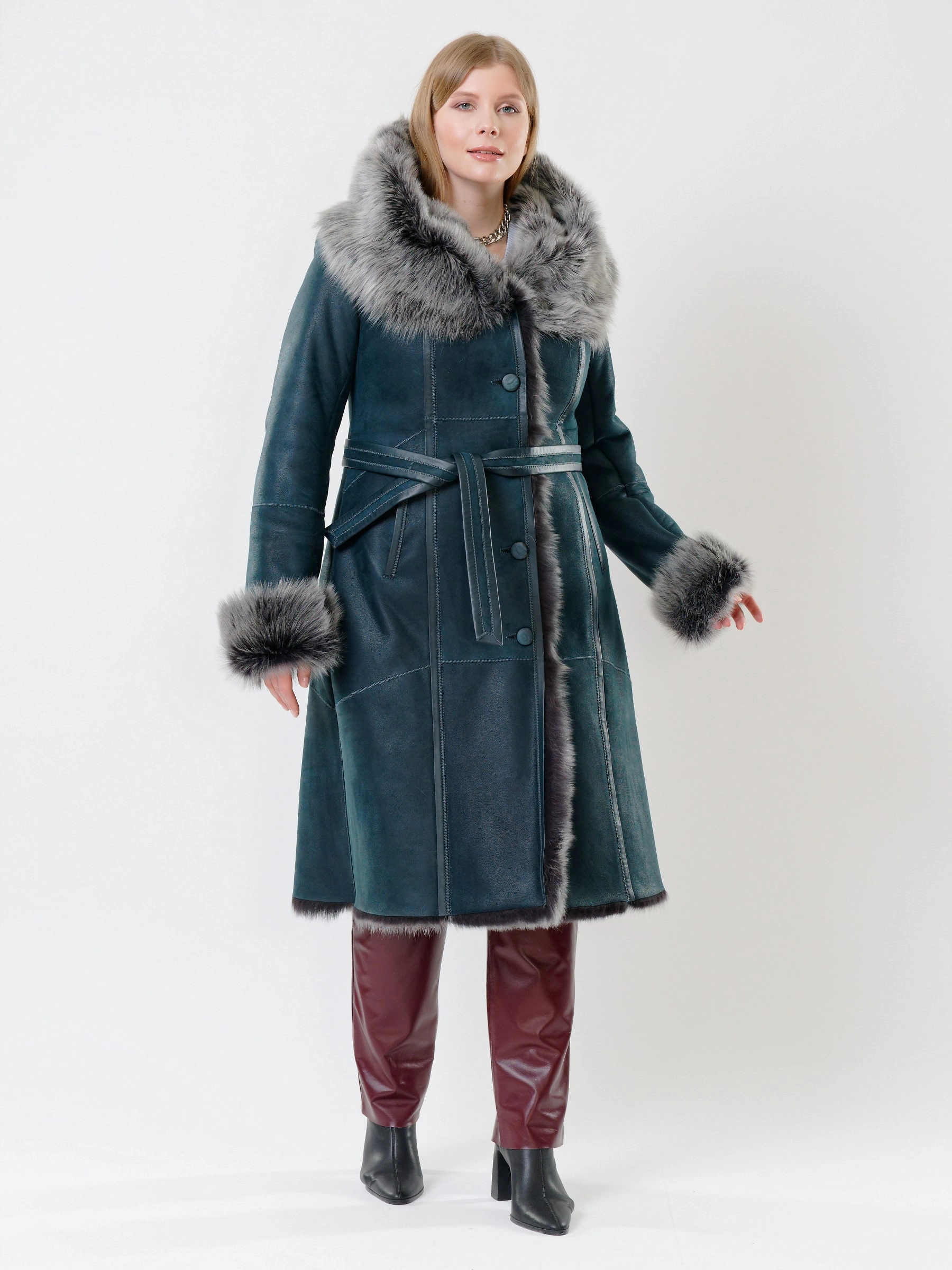 Товар длинная дубленка из тосканы с капюшоном для женщин 132, синяя, размер 44, артикул 62110 выполнен из овчина "тоскана" с застежкой пуговицы. Рассчитан на сезон: осень-зима. Длина изделия 110 см, силуэт полуприлегающий.