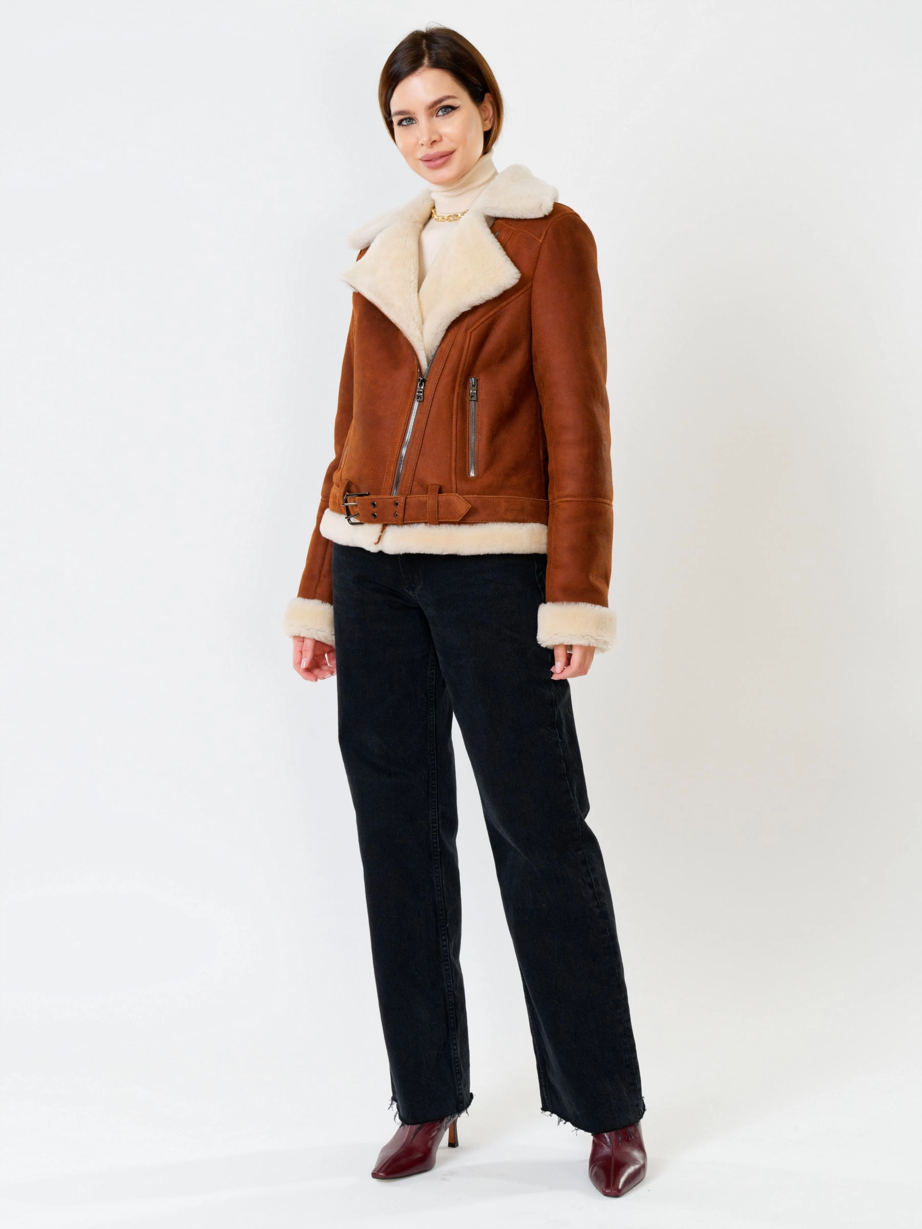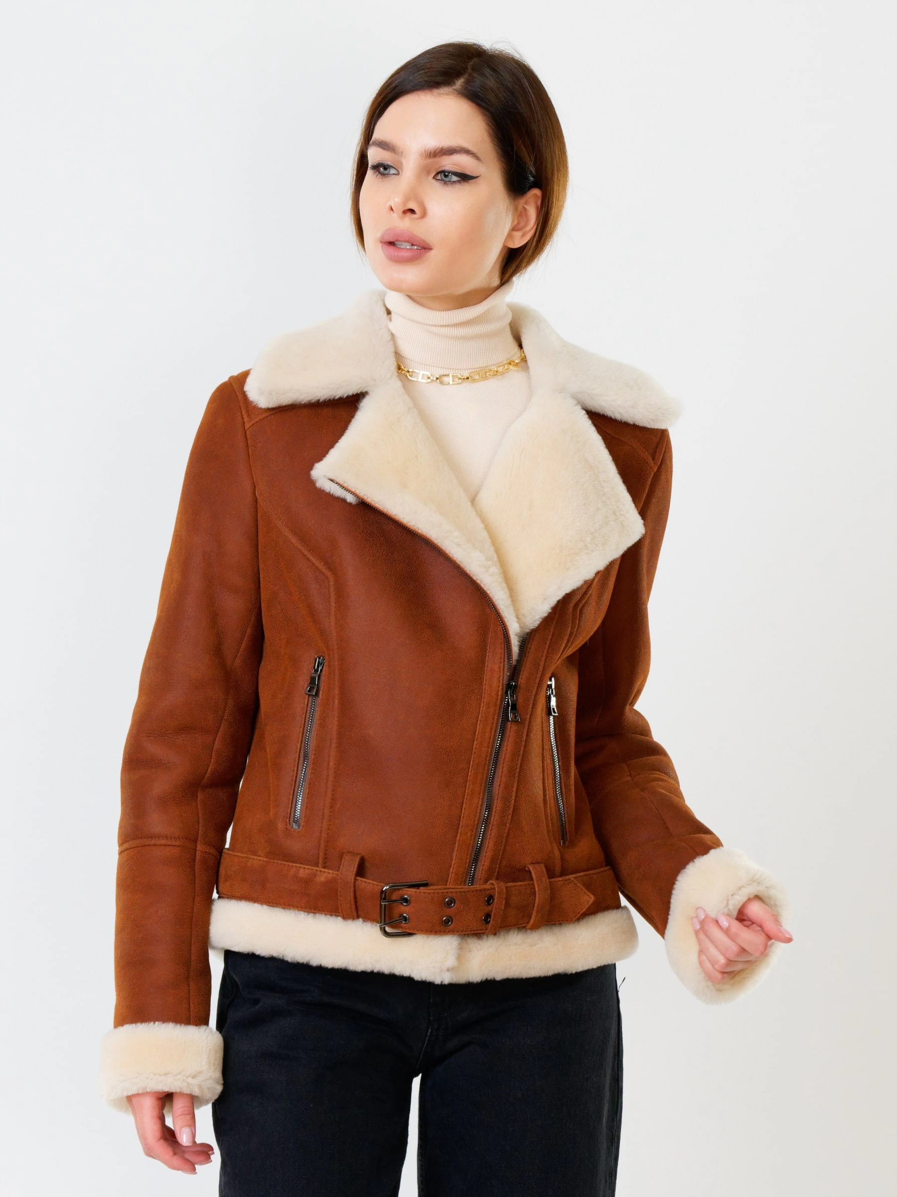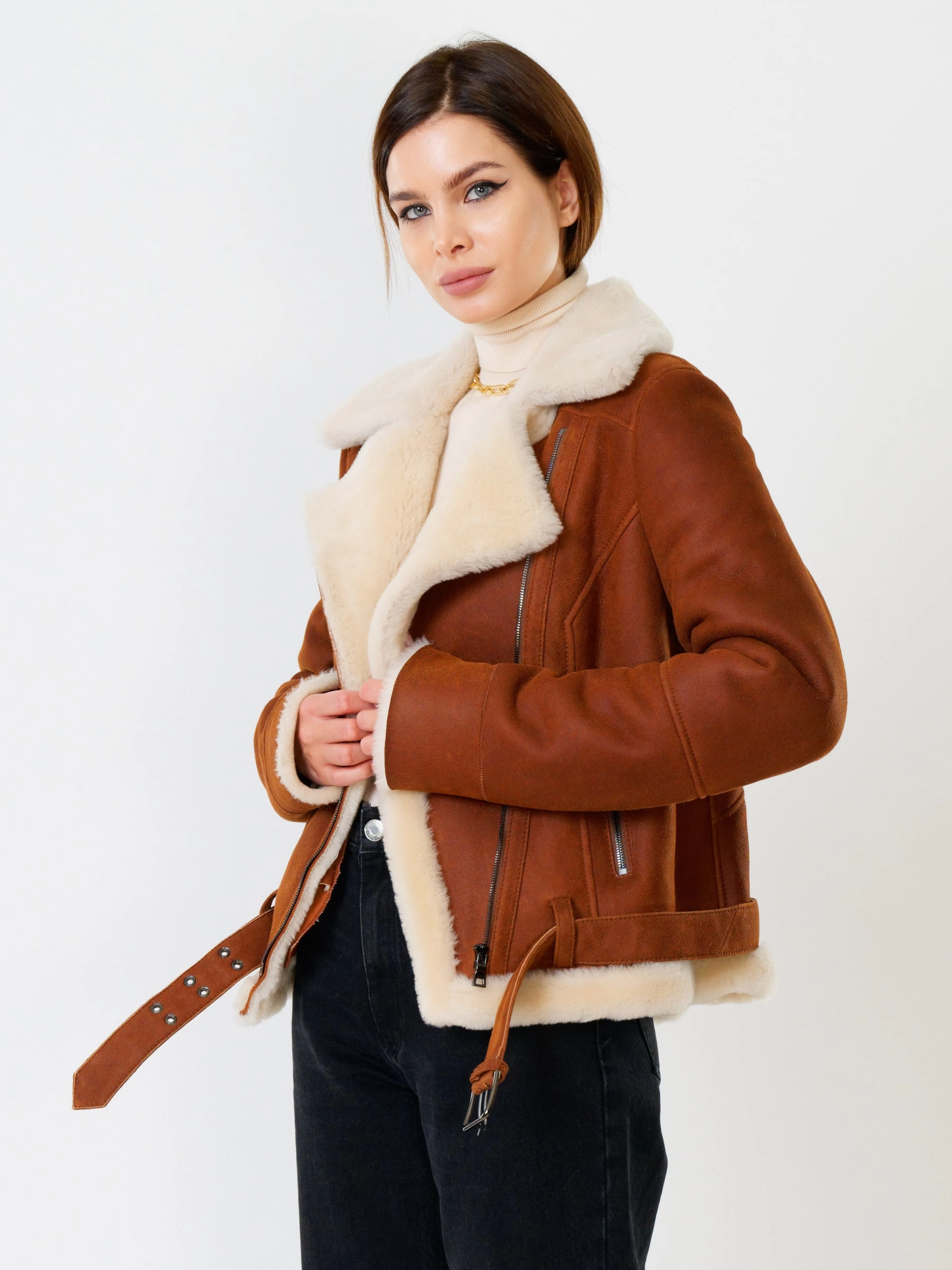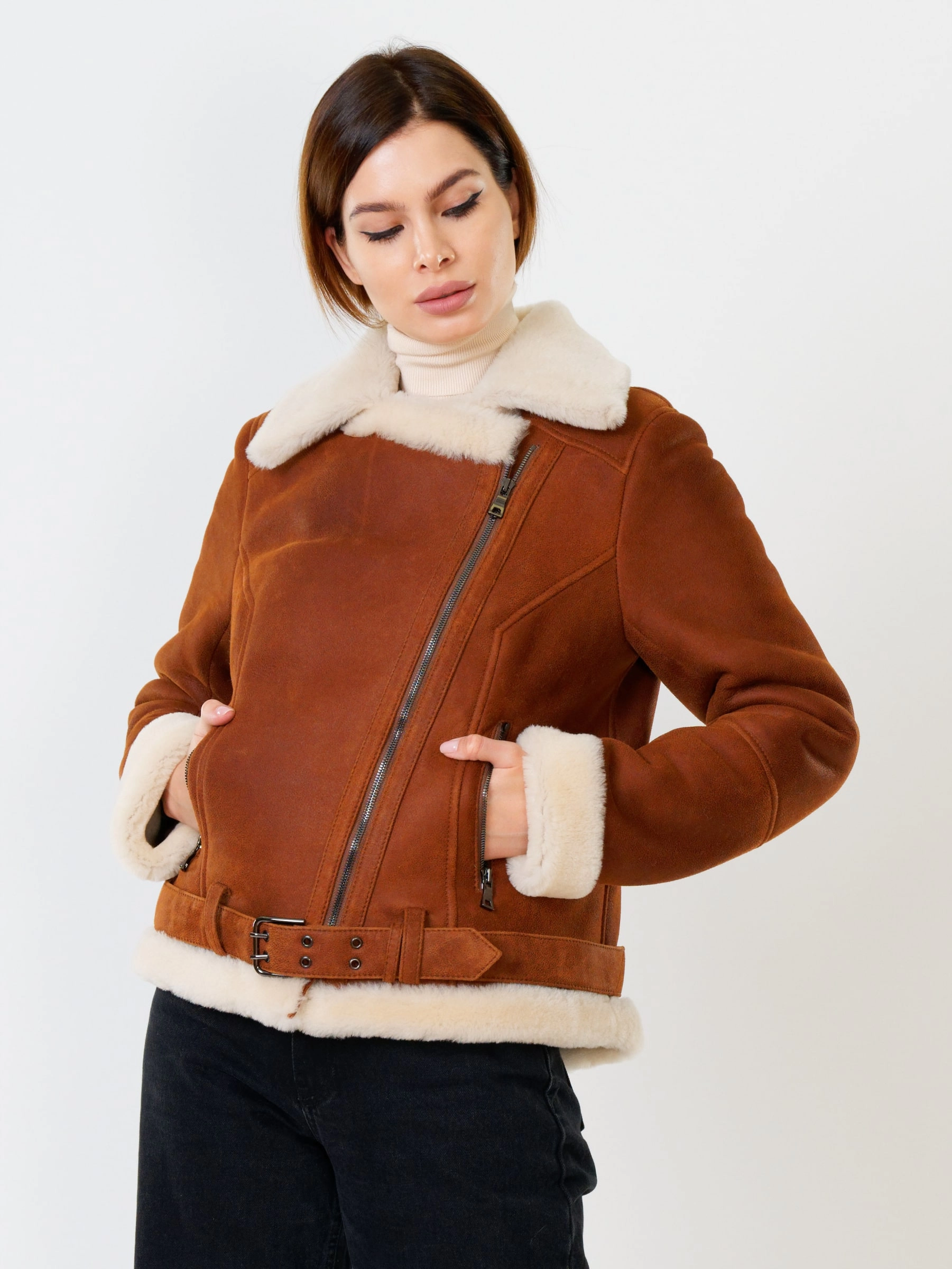 В насыщенном синем цвете, эта дерзкая короткая женская дубленка-косуха из роскошной кудрявой овчины "керли" на молнии, со свободным силуэтом, английским воротником, регулируемыми меховыми манжетами, двумя боковыми карманами на молниях и ремнём в шлёвках по низу , дарит премиальное тепло, комфорт и свободу движений; сочетайте ее с рваными джинсами и худи, кожаными леггинсами и футболкой с принтом, объемным свитером и грубыми ботинками или поверх платья, дополняя объемным шарфом и стильной сумкой-кроссбоди.