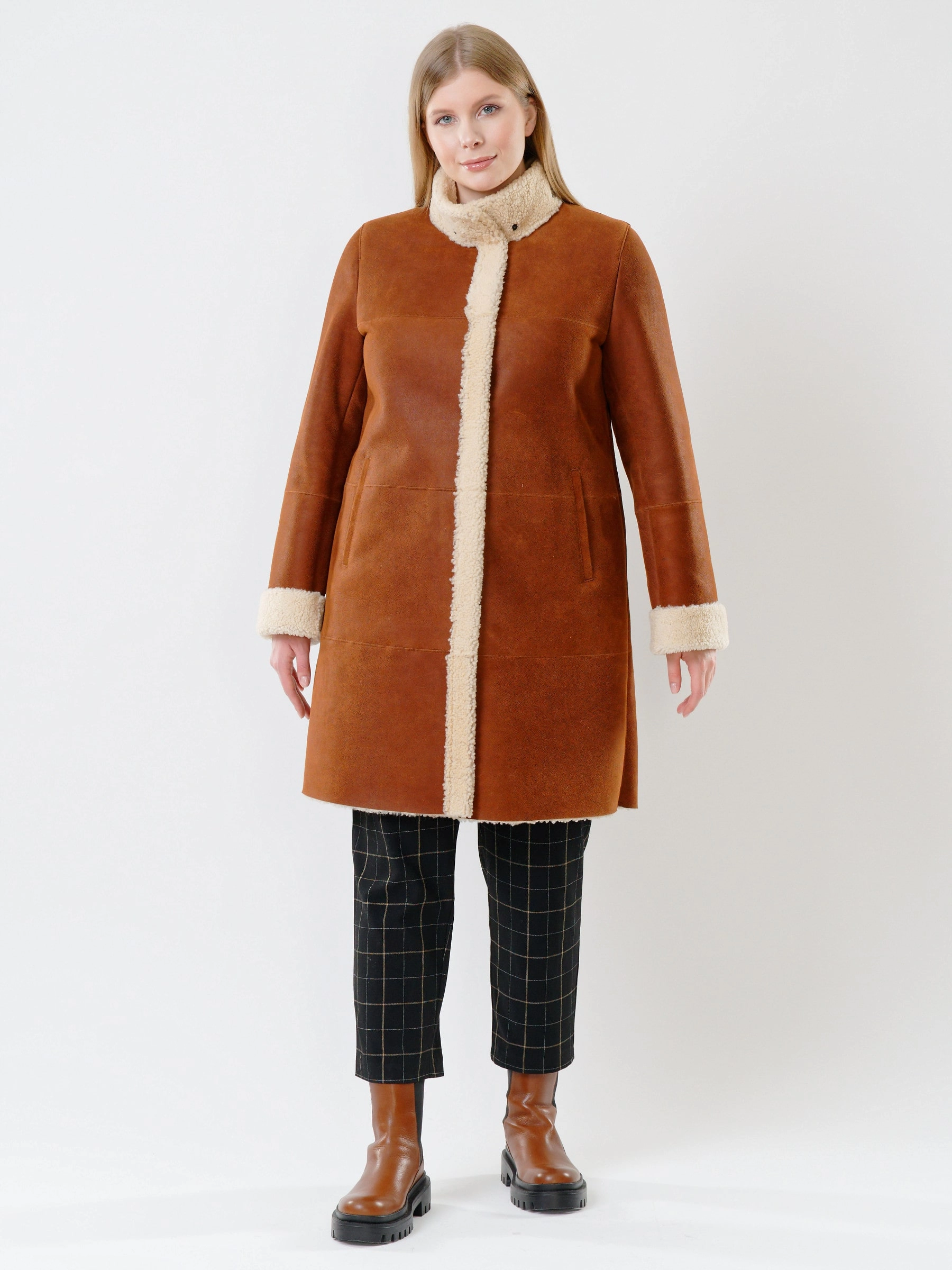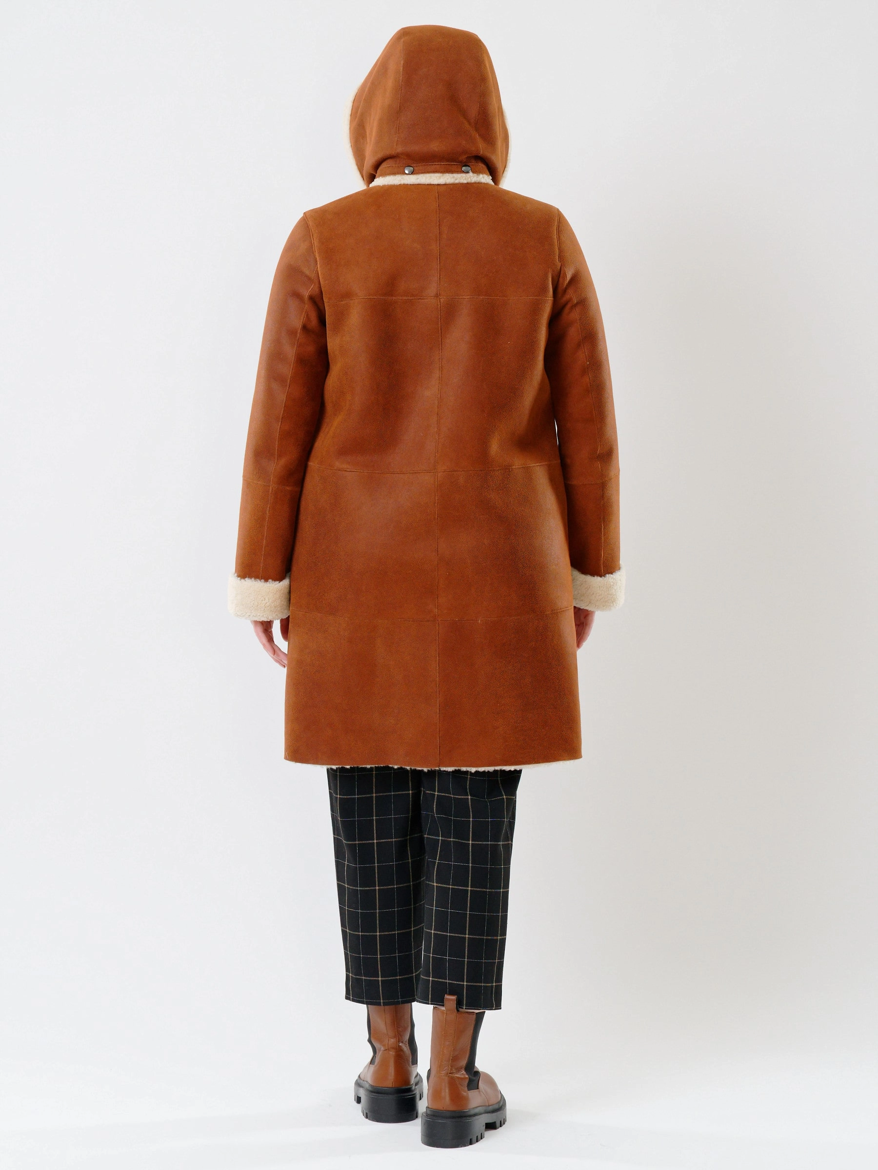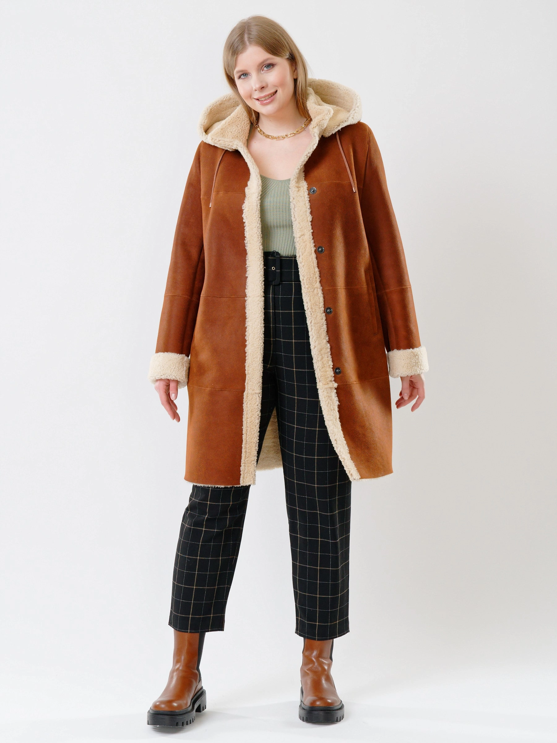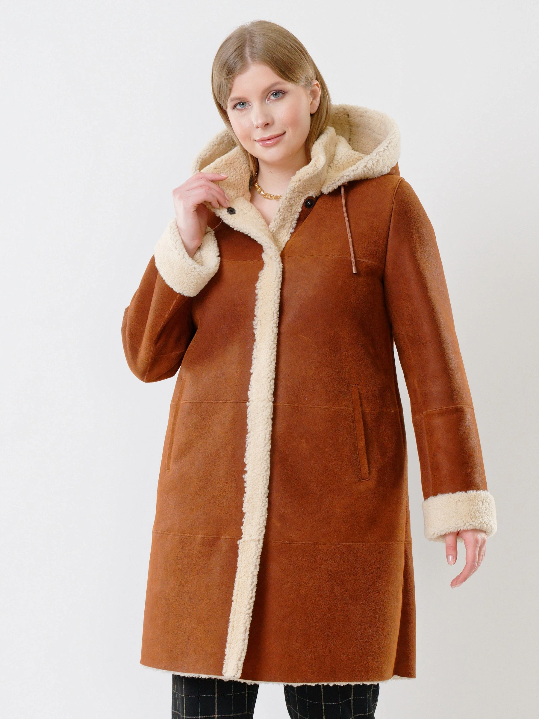 Женская дубленка из керли с капюшоном 202, табачно-рыжая, размер 46, артикул 62141