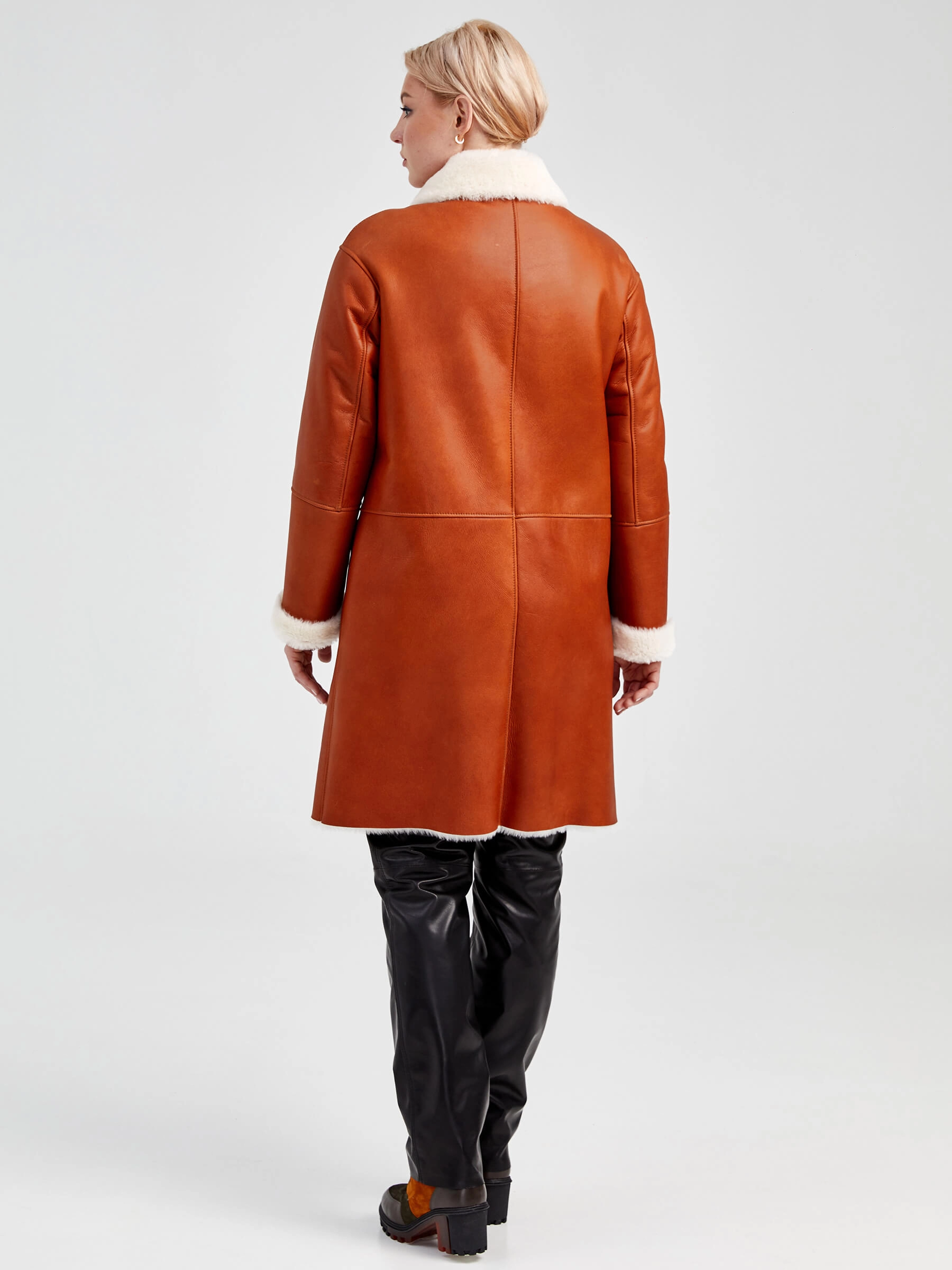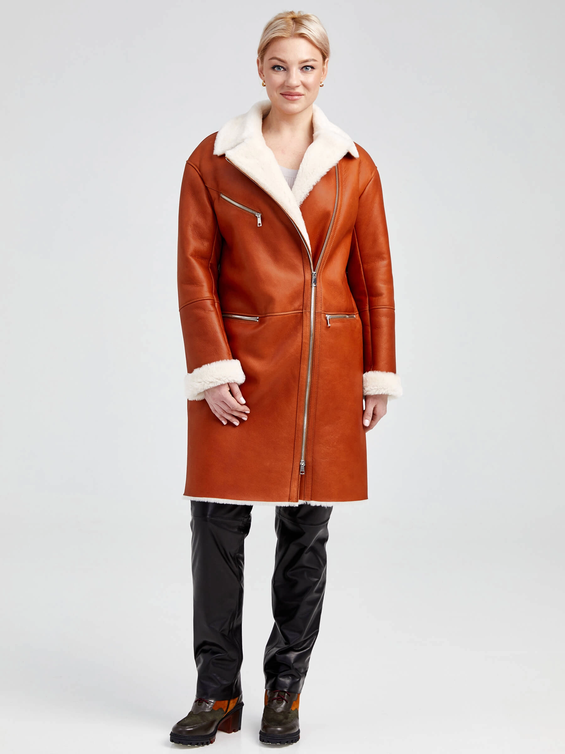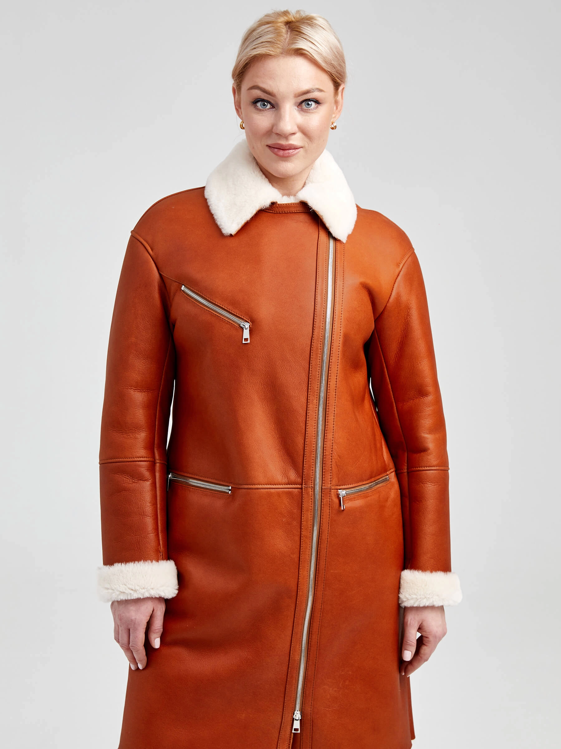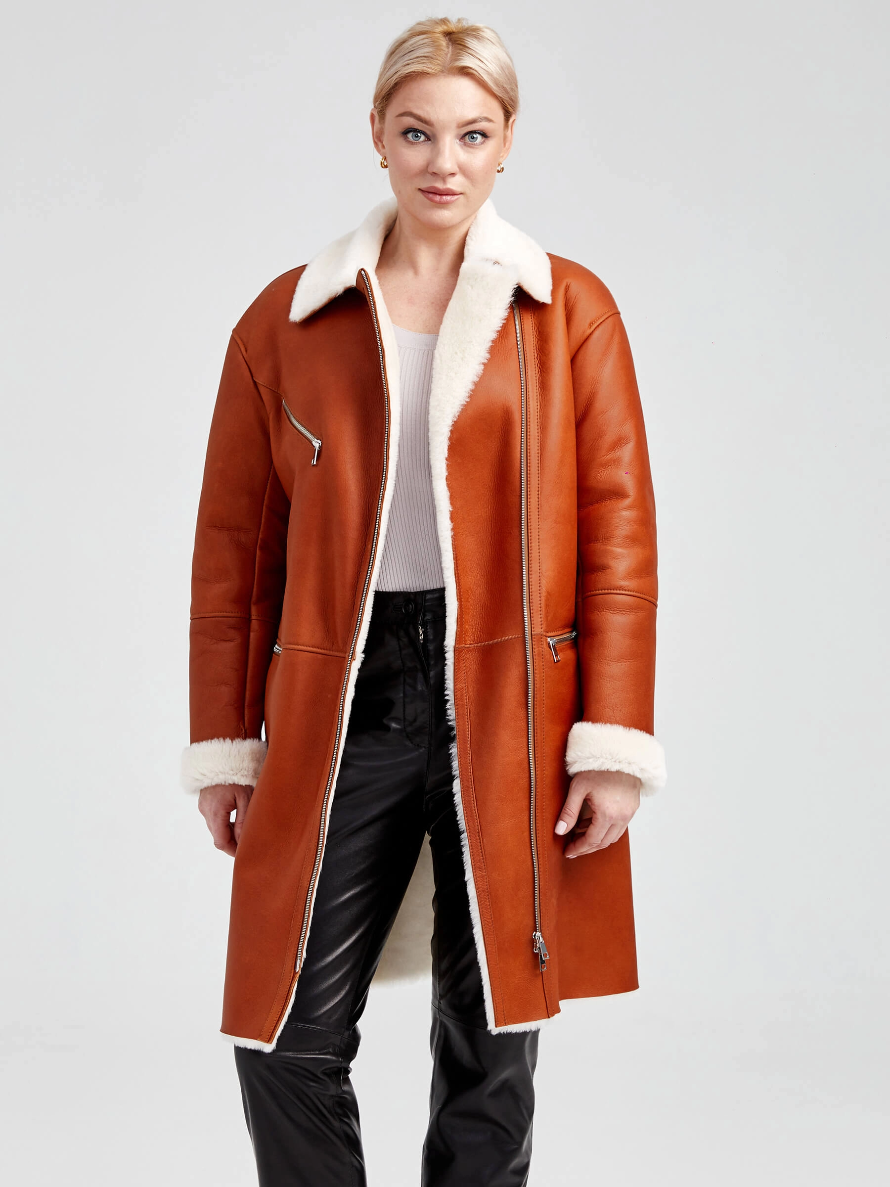 Роскошная длинная дублёнка-косуха из невероятно мягкой натуральной овчины «мерино» цвета тёплого виски станет ключевой вещью сезона. Прямой силуэт с отложным воротником, практичной застёжкой-молнией и тремя карманами, включая два боковых и один асимметричный на груди, идеален для повседневных образов, а благородный приглушённый блеск кожи подчёркивает глубину насыщенного оттенка. Совет стилиста: сочетайте с объёмным свитером, прямыми джинсами и ботинками для непринуждённо-элегантного вида — эта косуха создана, чтобы согревать и восхищать!