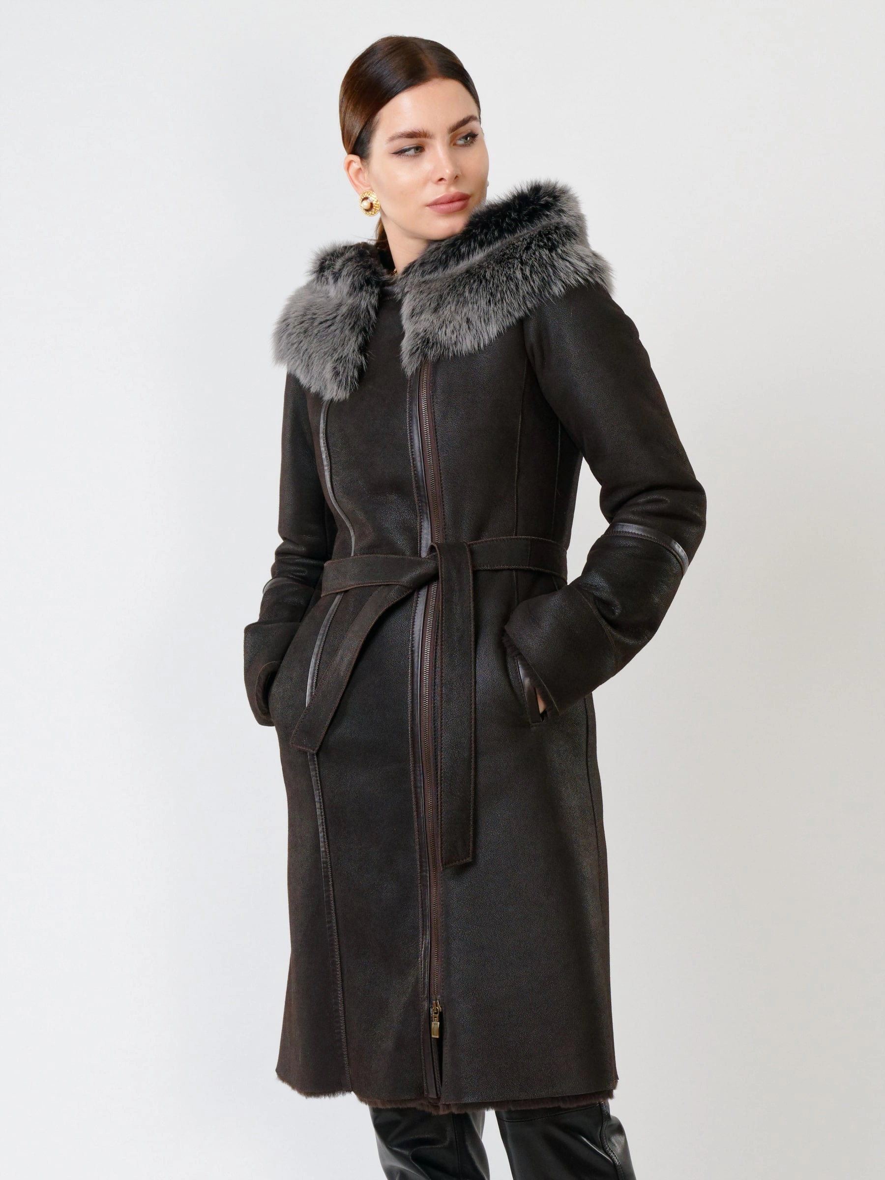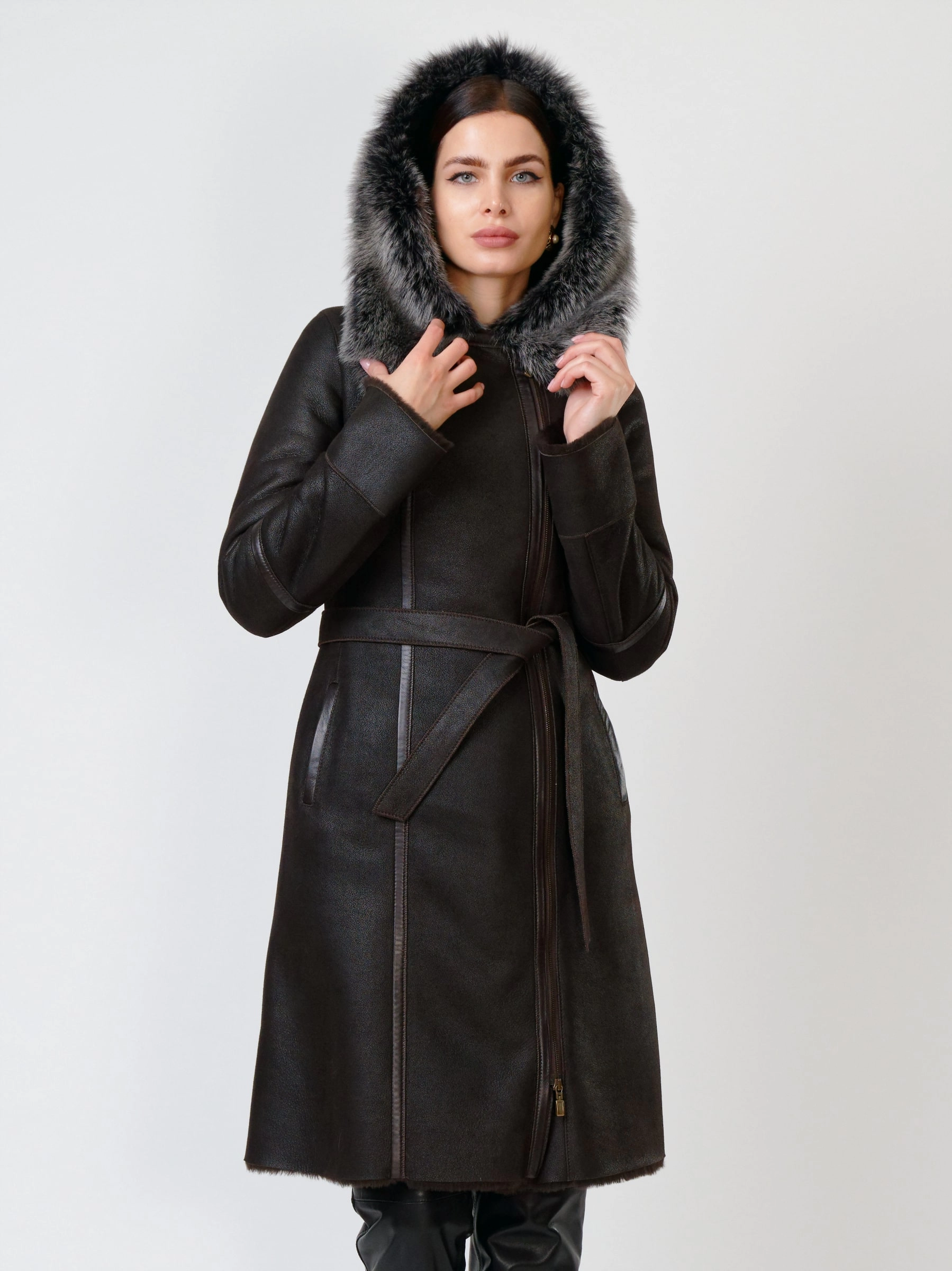 Роскошная длинная дублёнка из натуральной овчины «мерино» с удобной застёжкой-молнией и глубоким несъёмным капюшоном с опушью из тосканской овчины. Полуприлегающий силуэт с втачными рукавами обеспечивает чёткую и комфортную посадку — результат безупречной работы портных. Длинный пояс подчеркнёт талию, а невероятно мягкий густой мех надёжно защитит от холода. Идеальна с облегающими джинсами и свитером для повседневного образа или с платьем и сапогами для выхода — премиальное качество во всём.