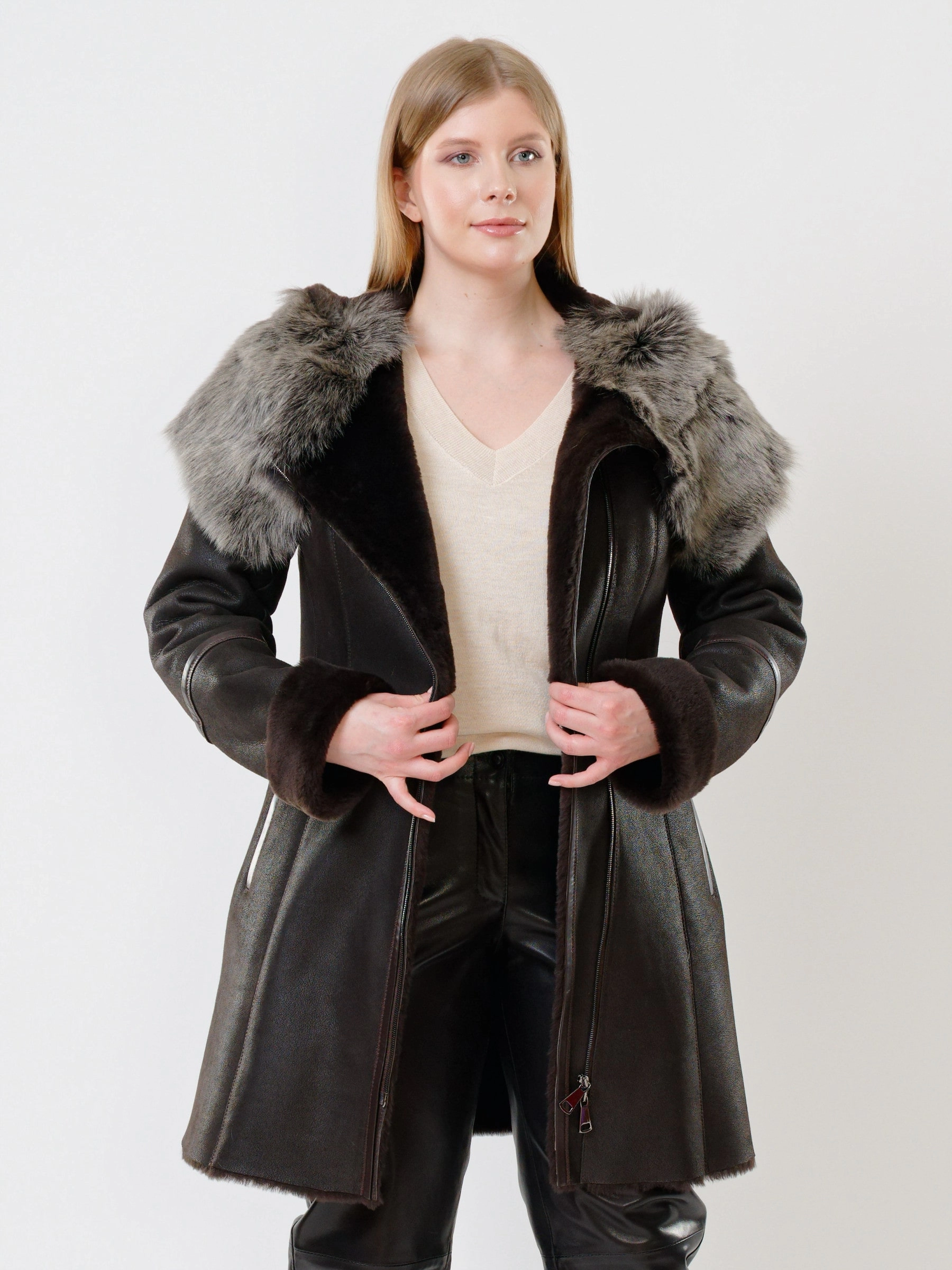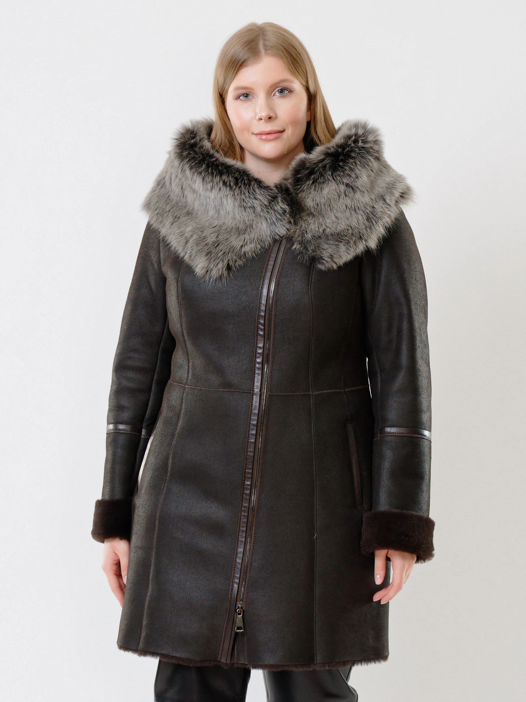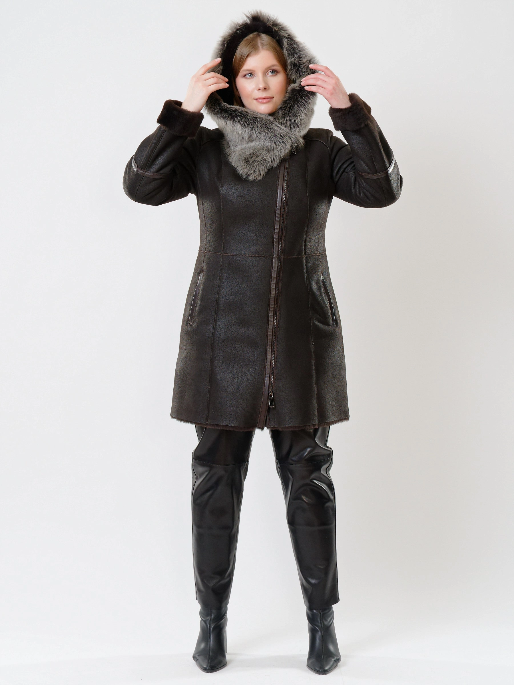 Женская дубленка косуха с капюшоном из тосканы 283, коричневая, размер 44, артикул 13490
