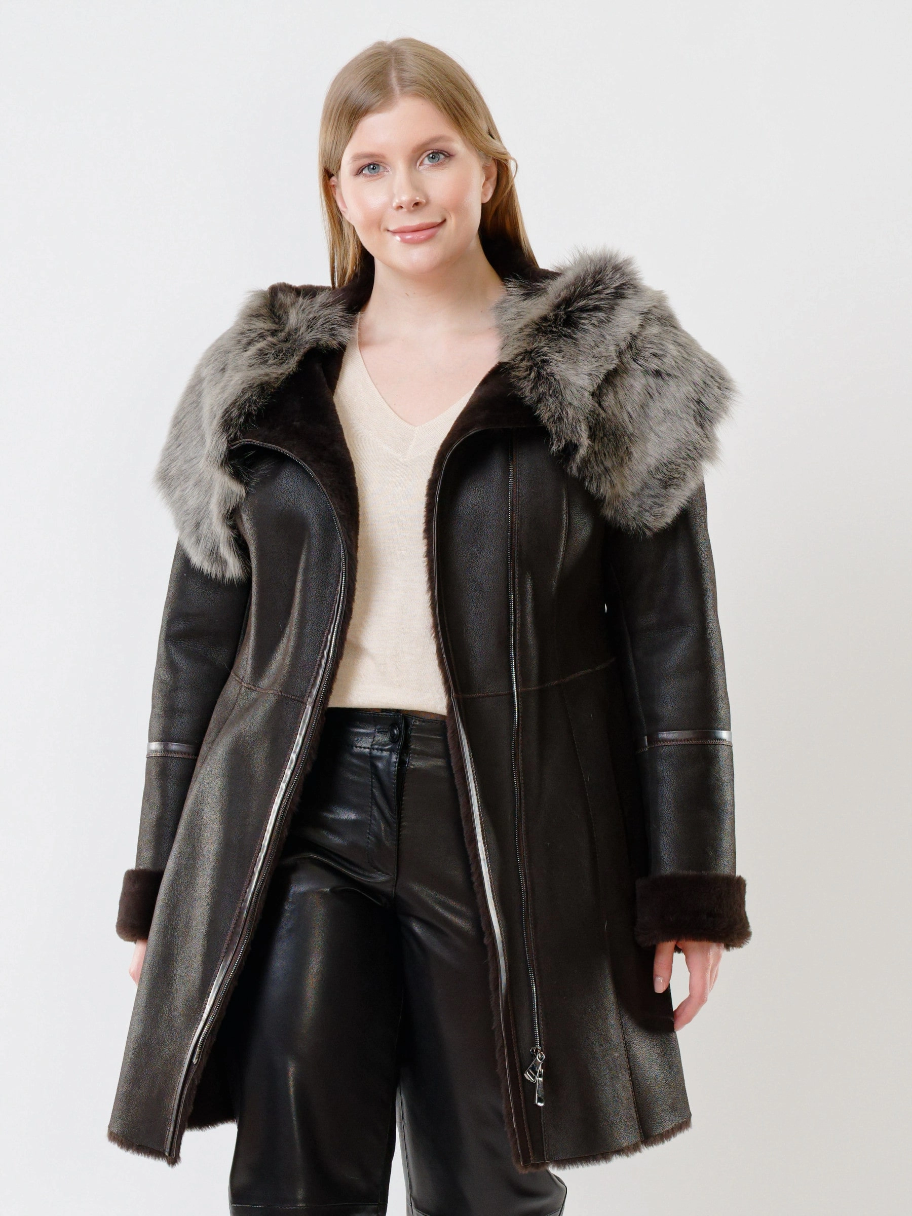 Товар женская дубленка косуха с капюшоном из тосканы 283, коричневая, размер 44, артикул 13490 выполнен из овчина "мерино" с застежкой молния. Рассчитан на сезон: осень-зима. Длина изделия 90 см, силуэт полуприлегающий.